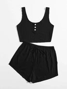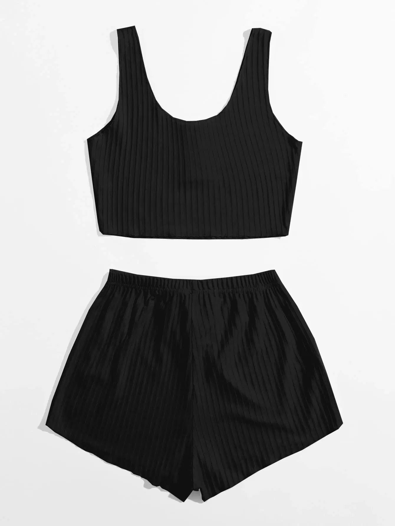 Rib Knit Crop Tank Top & Shorts Lounge Set