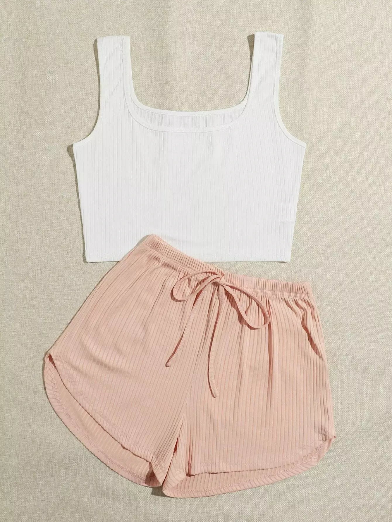 Rib-knit Knot Front Lounge Set