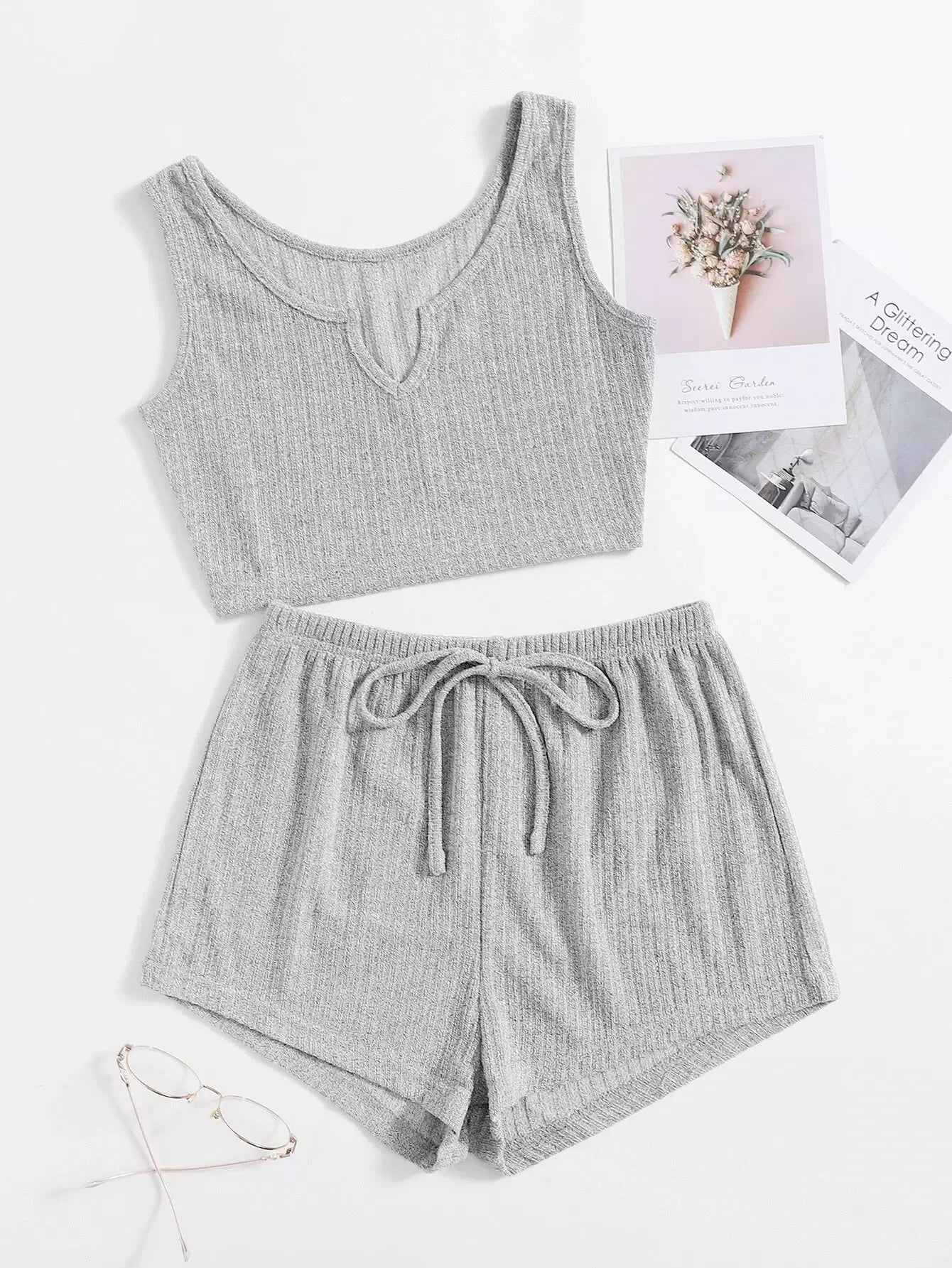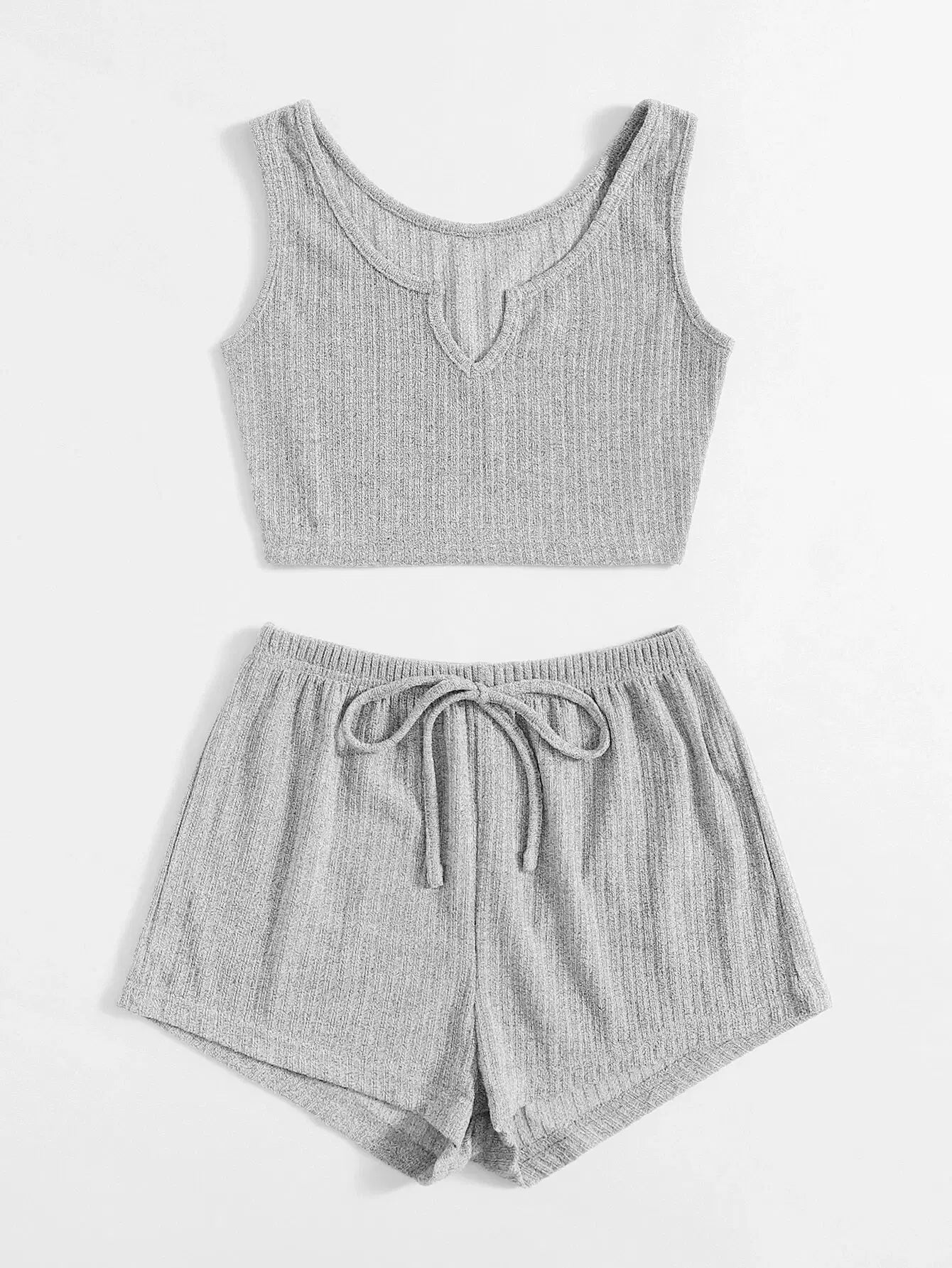 Rib-knit Notched Drawstring Lounge Set