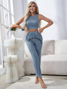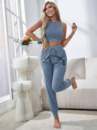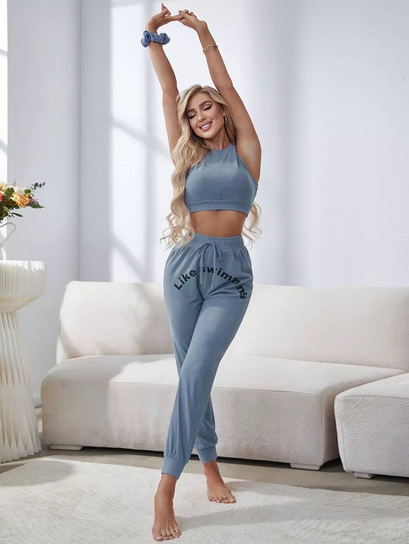 Slogan Graphic Tie Front PJ Set With Scrunchie