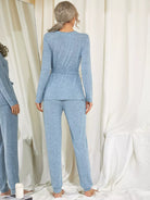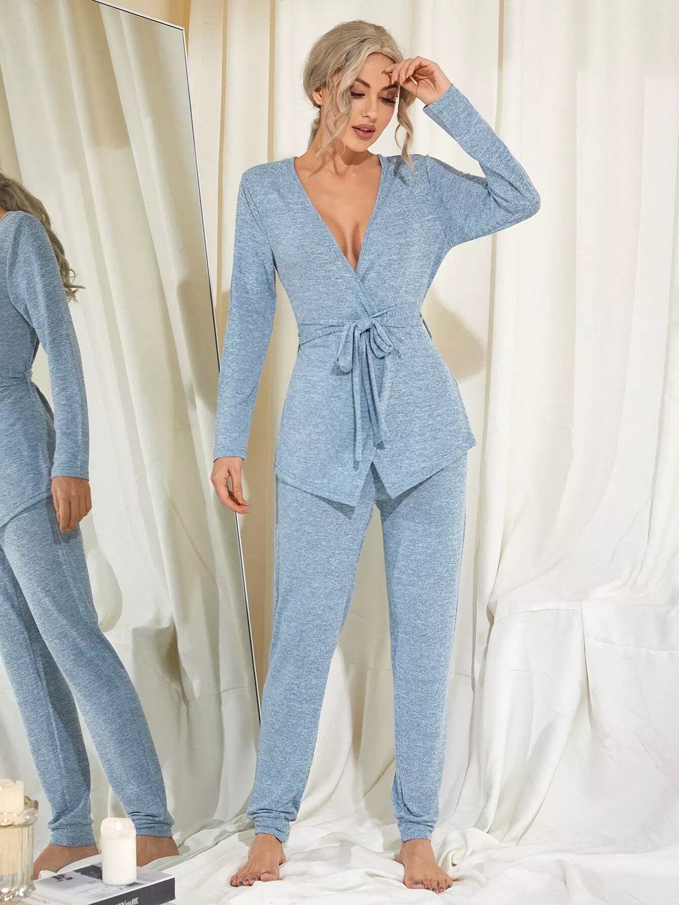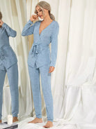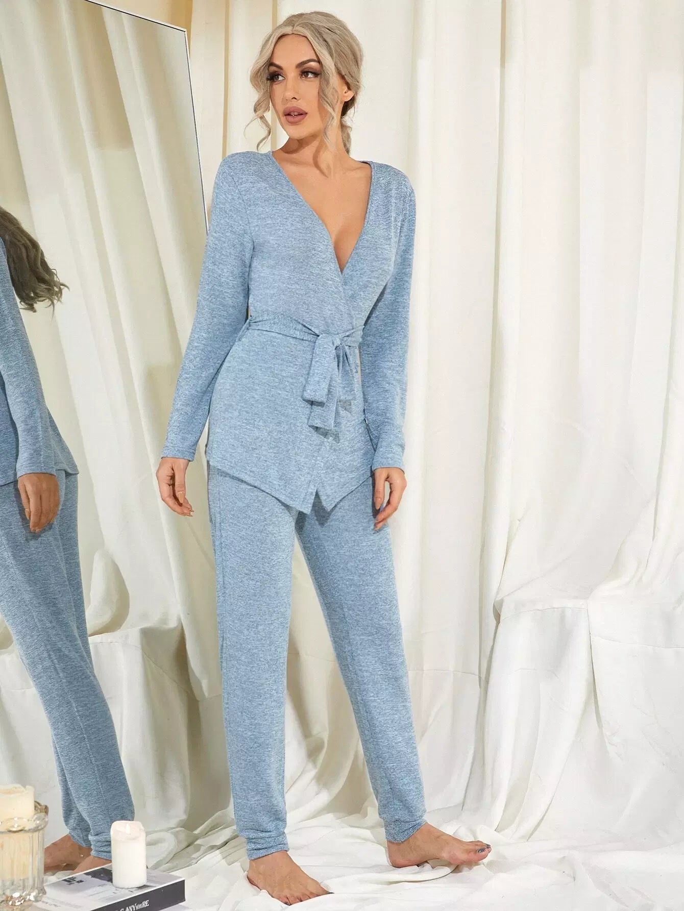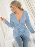 Solid Wrap Top & Pants Lounge Set Without Belt