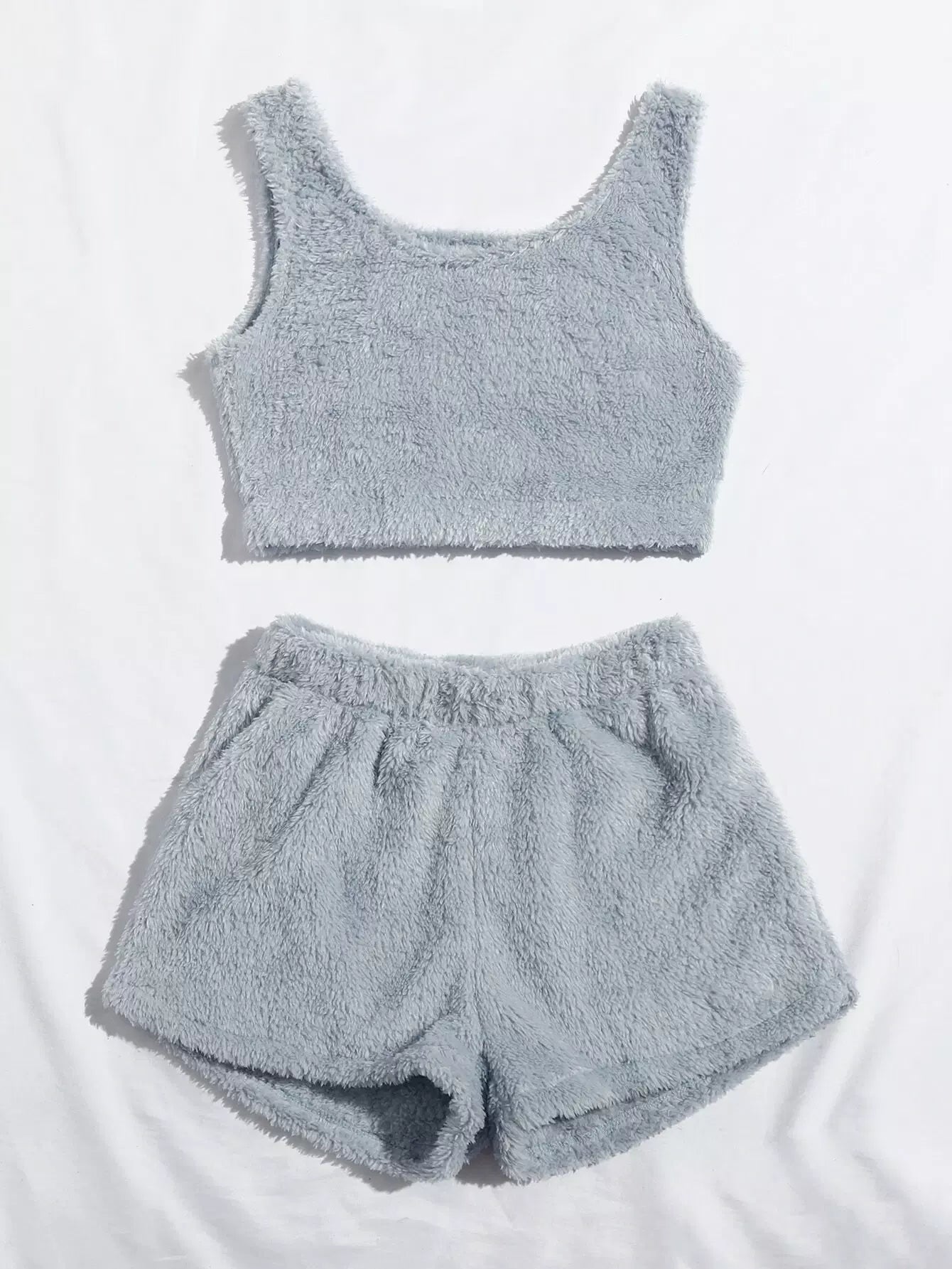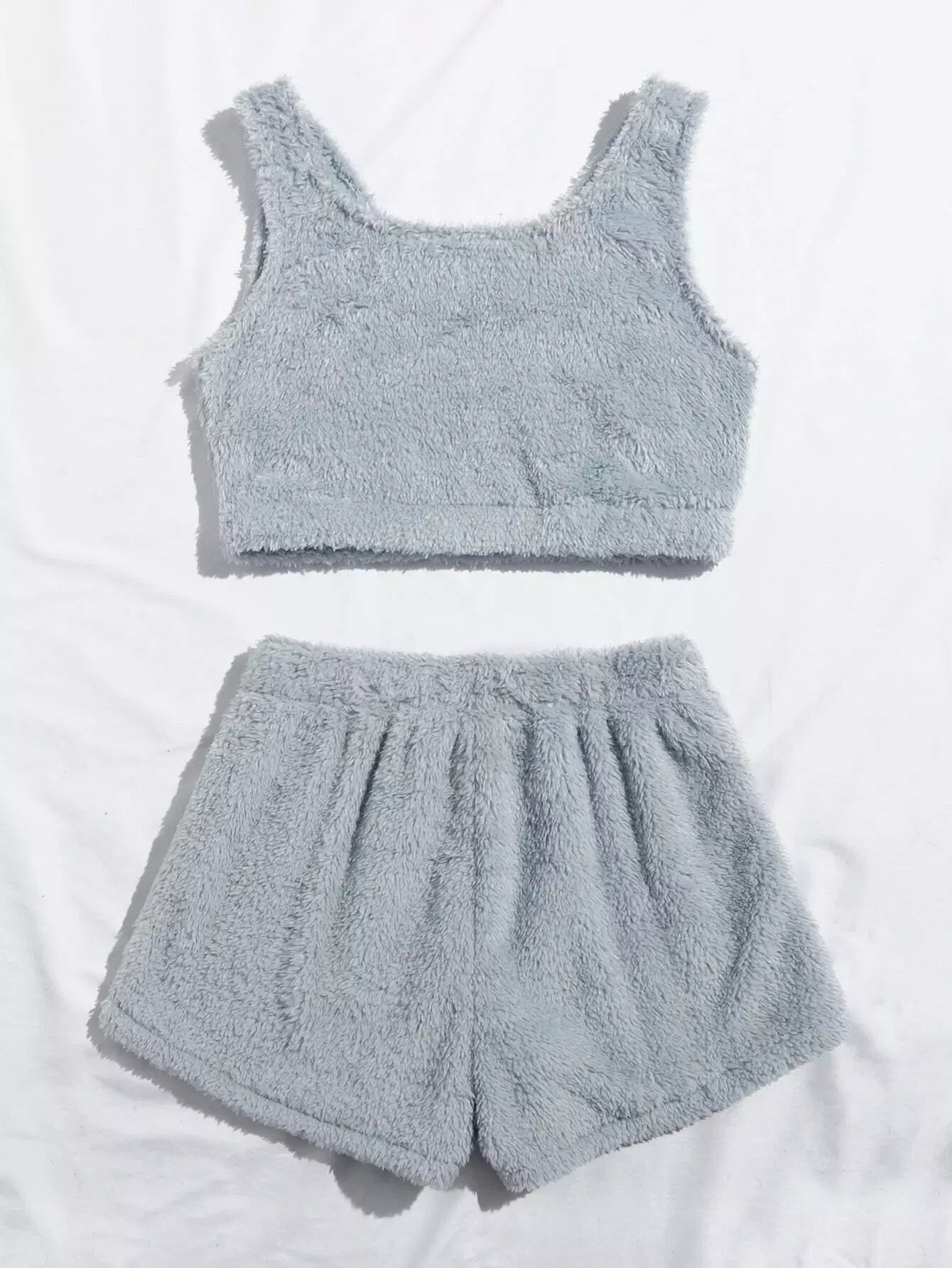 Solid Flannel Tank Top With Shorts Lounge Set