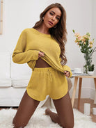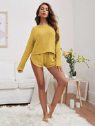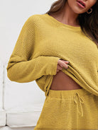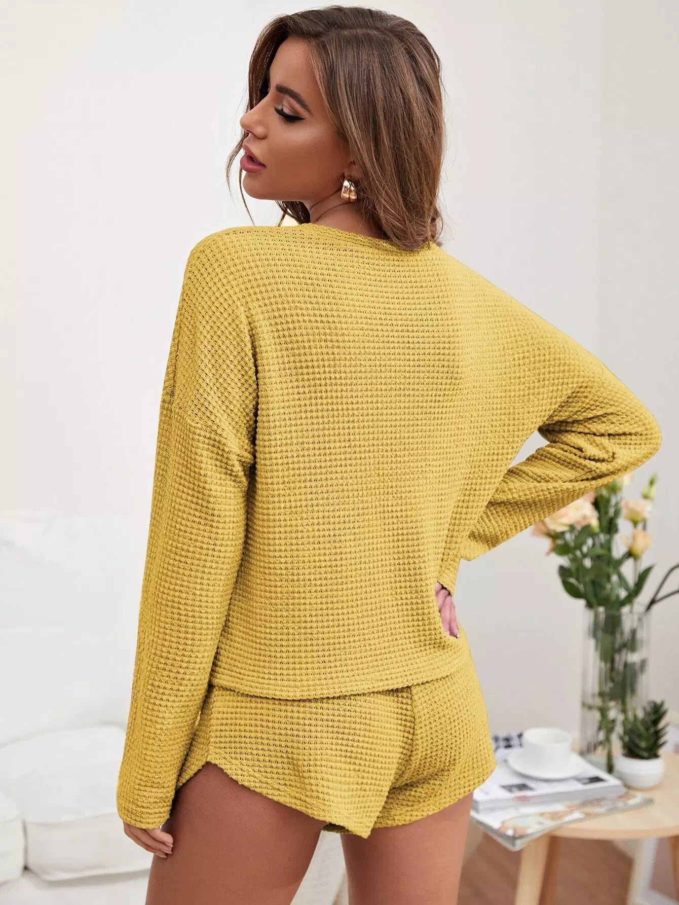 1pc Waffle Knit Drop Shoulder Sleep Top