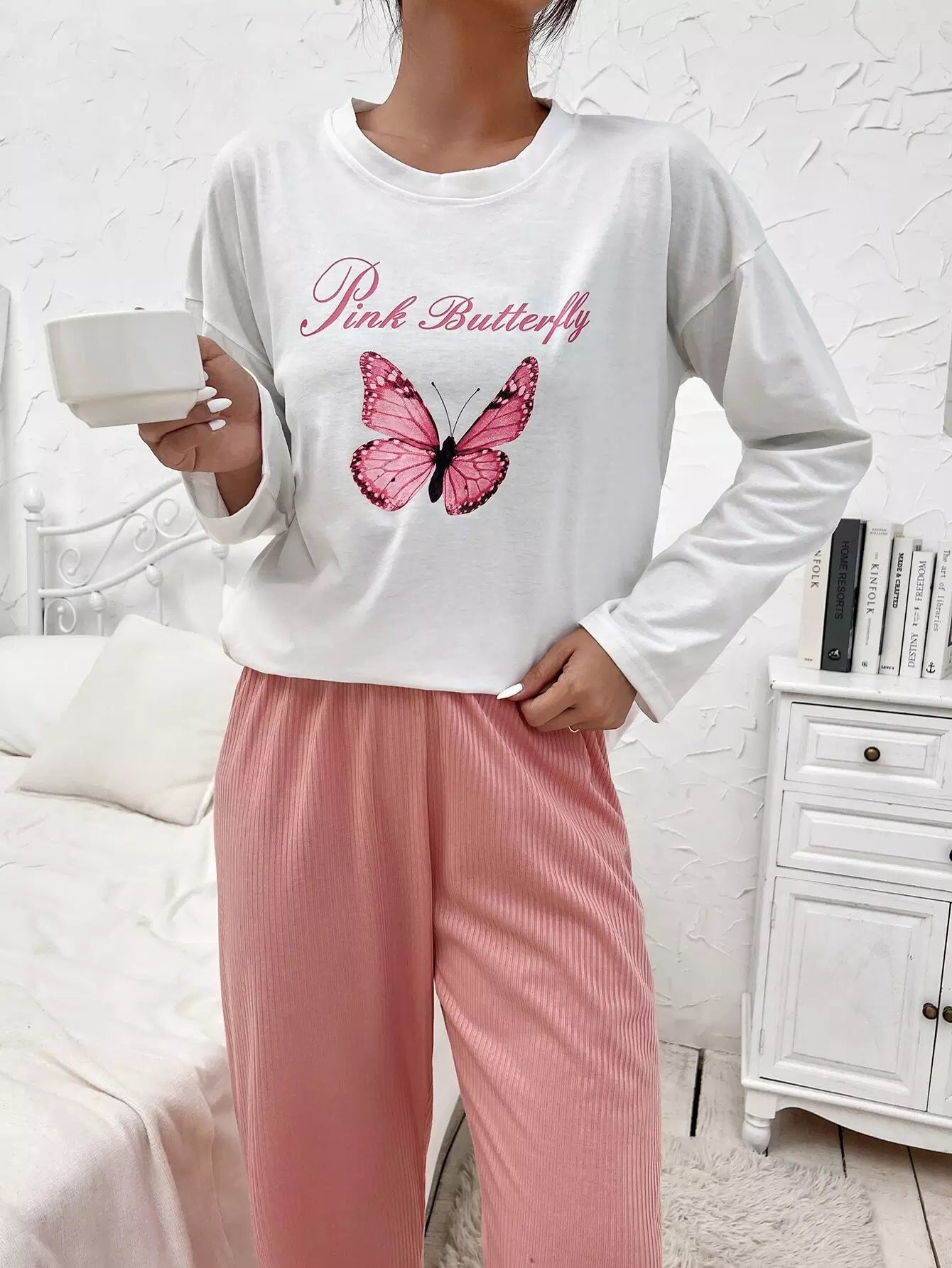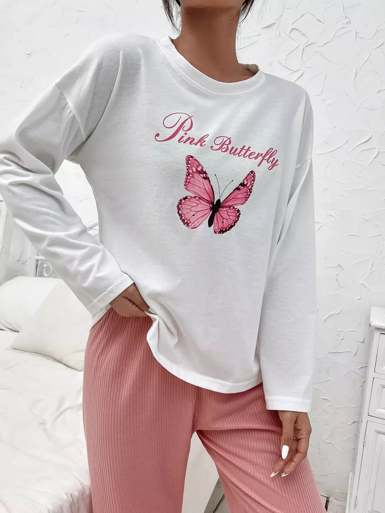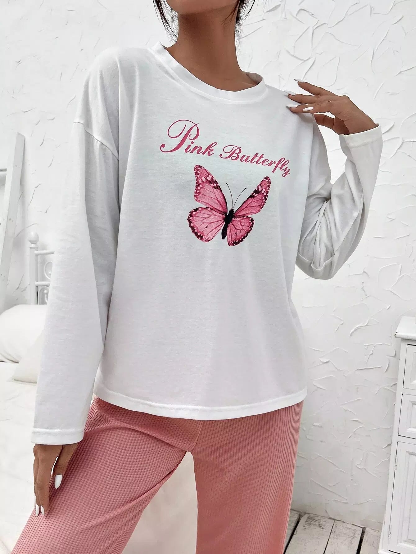 Letter And Butterfly Print Drop Shoulder Sleep Tee