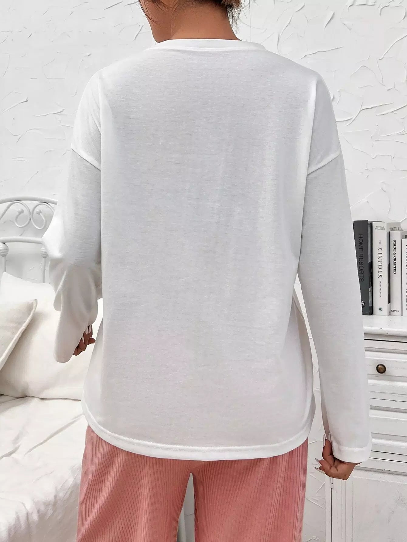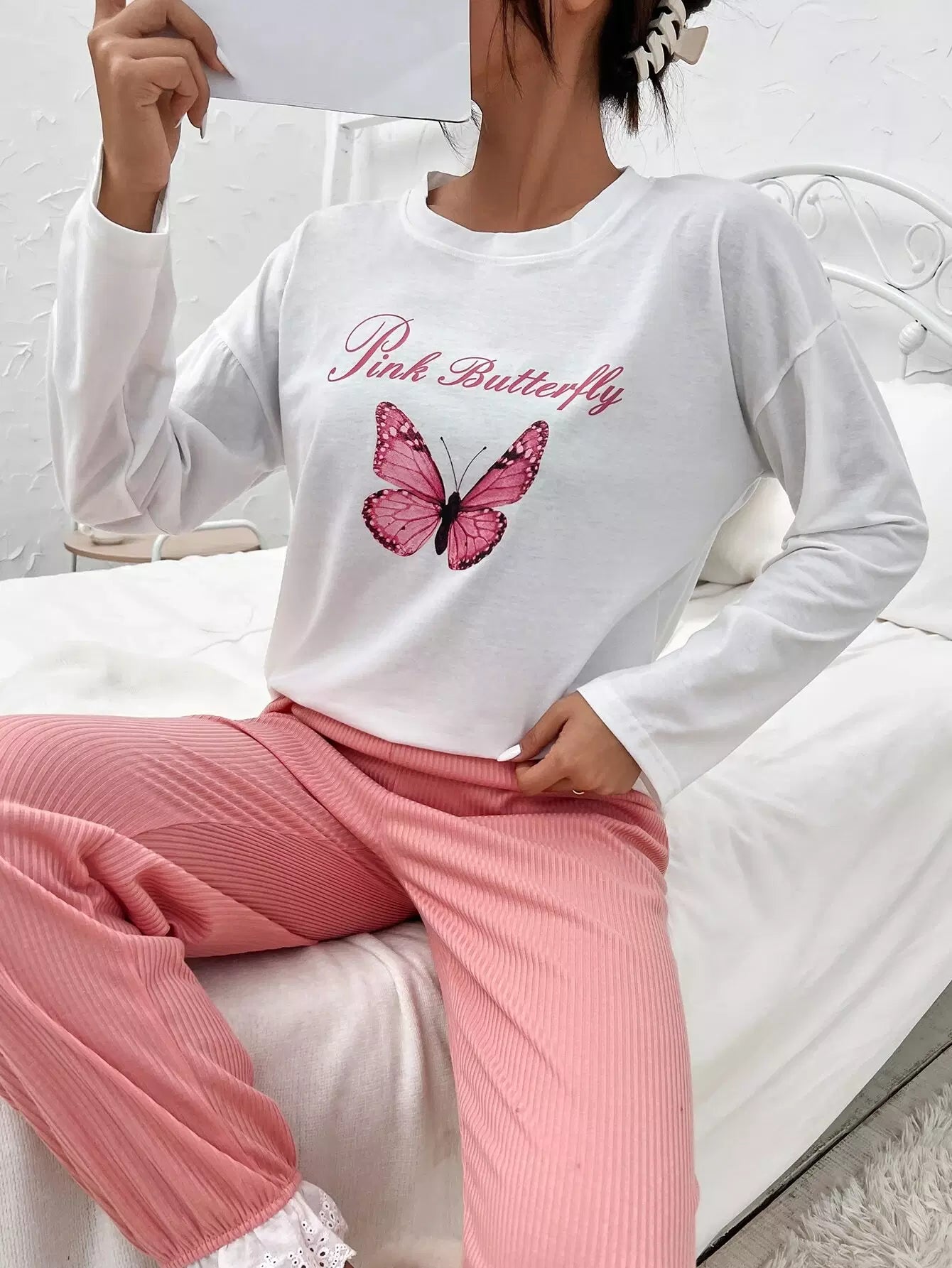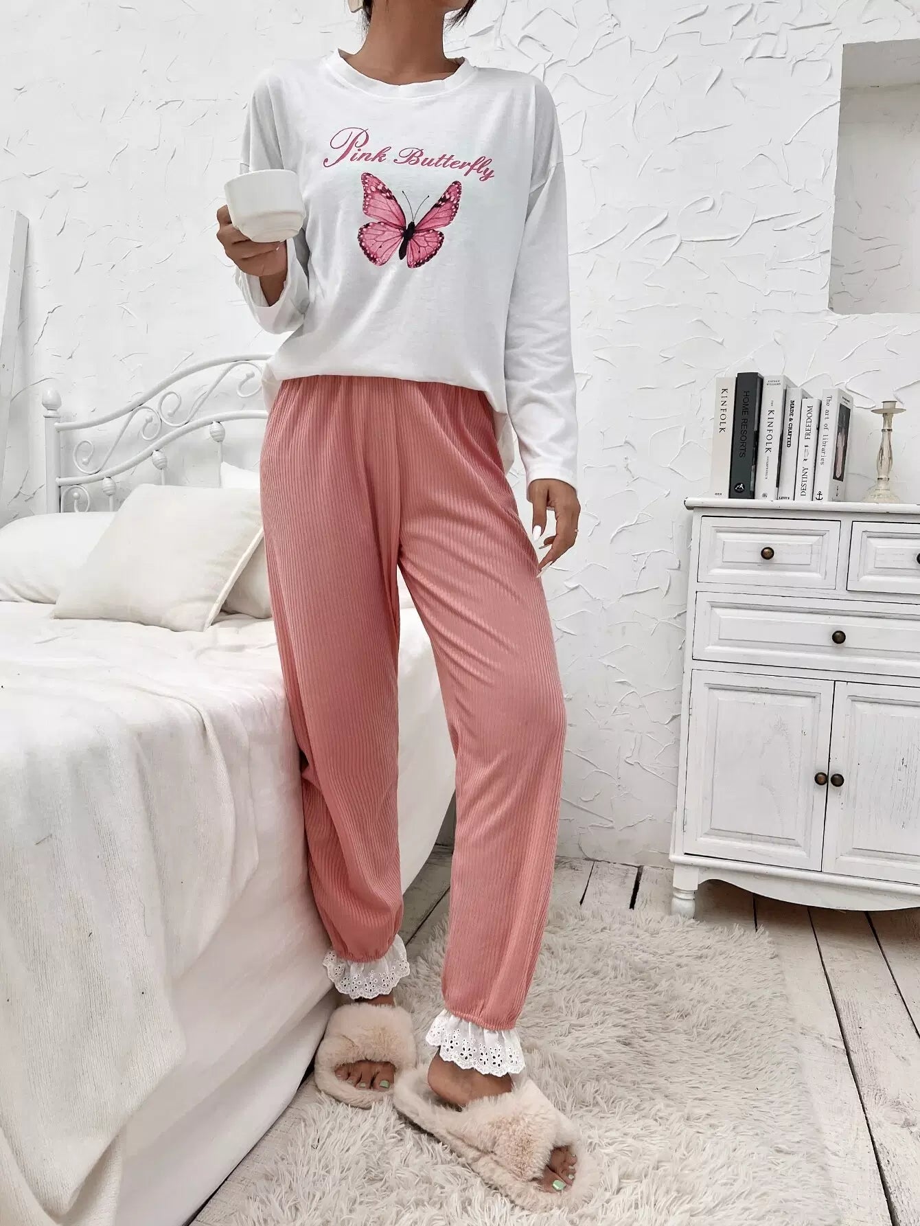 Letter And Butterfly Print Drop Shoulder Sleep Tee