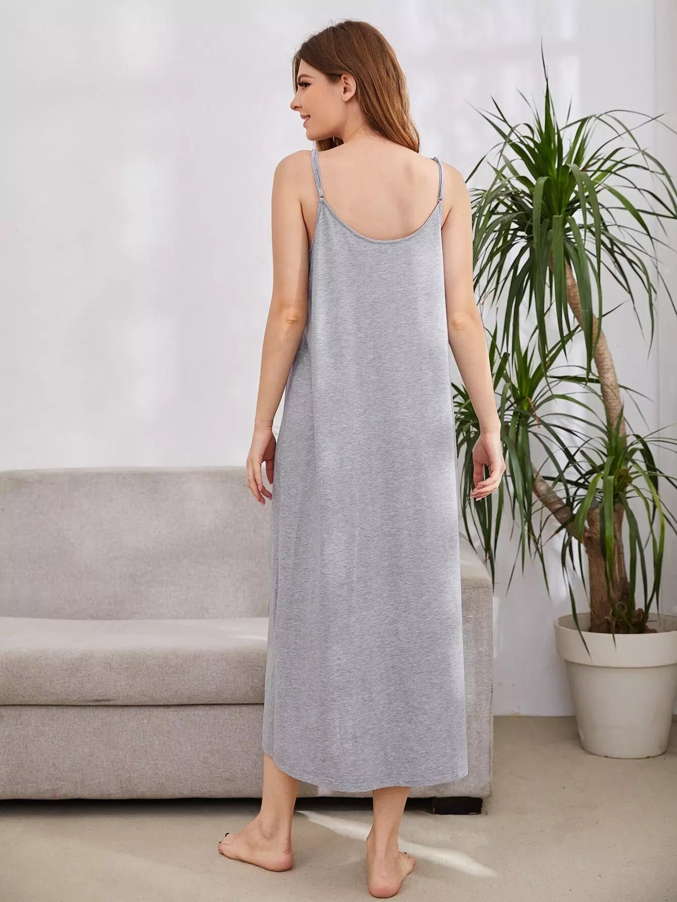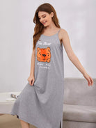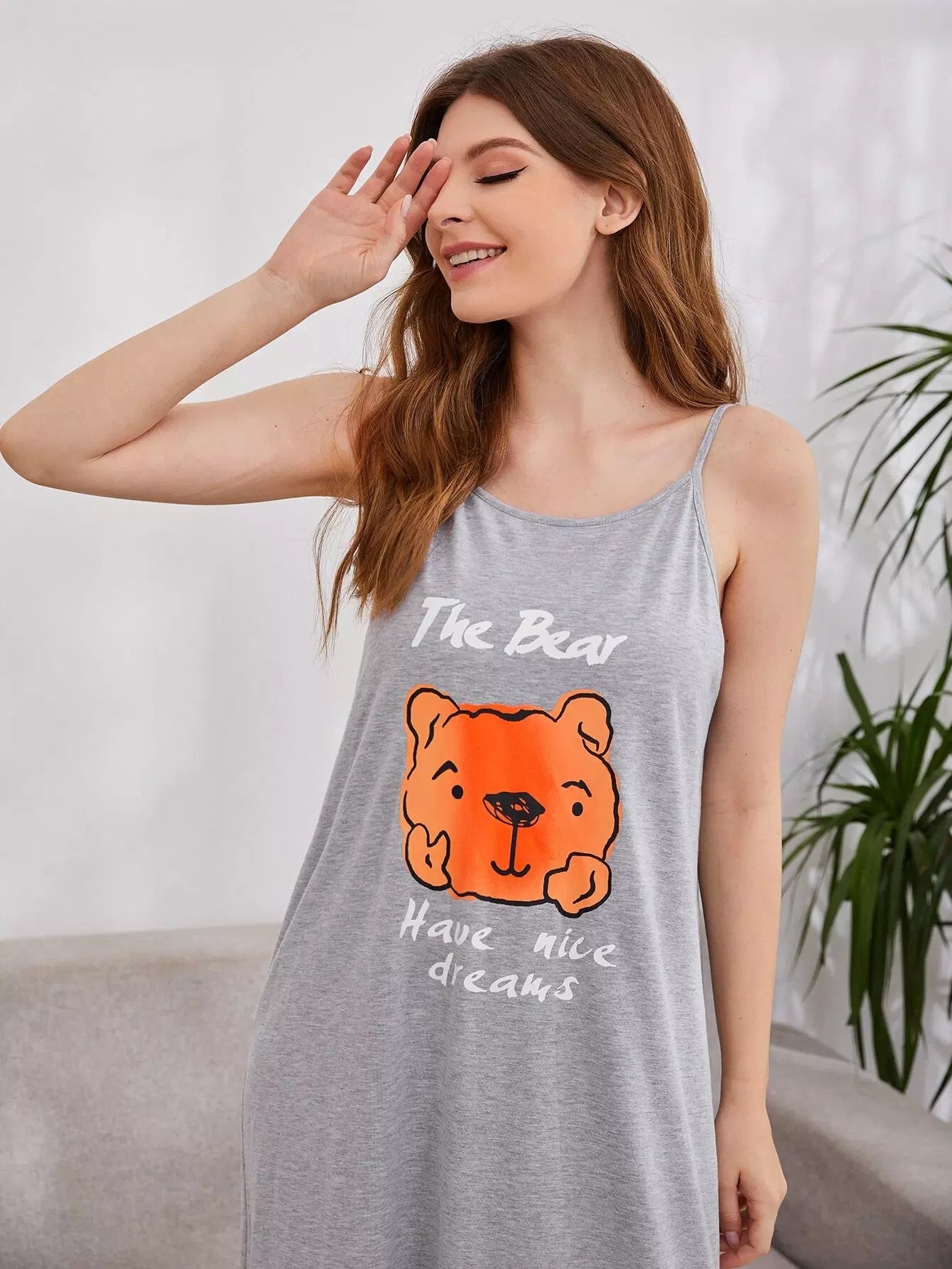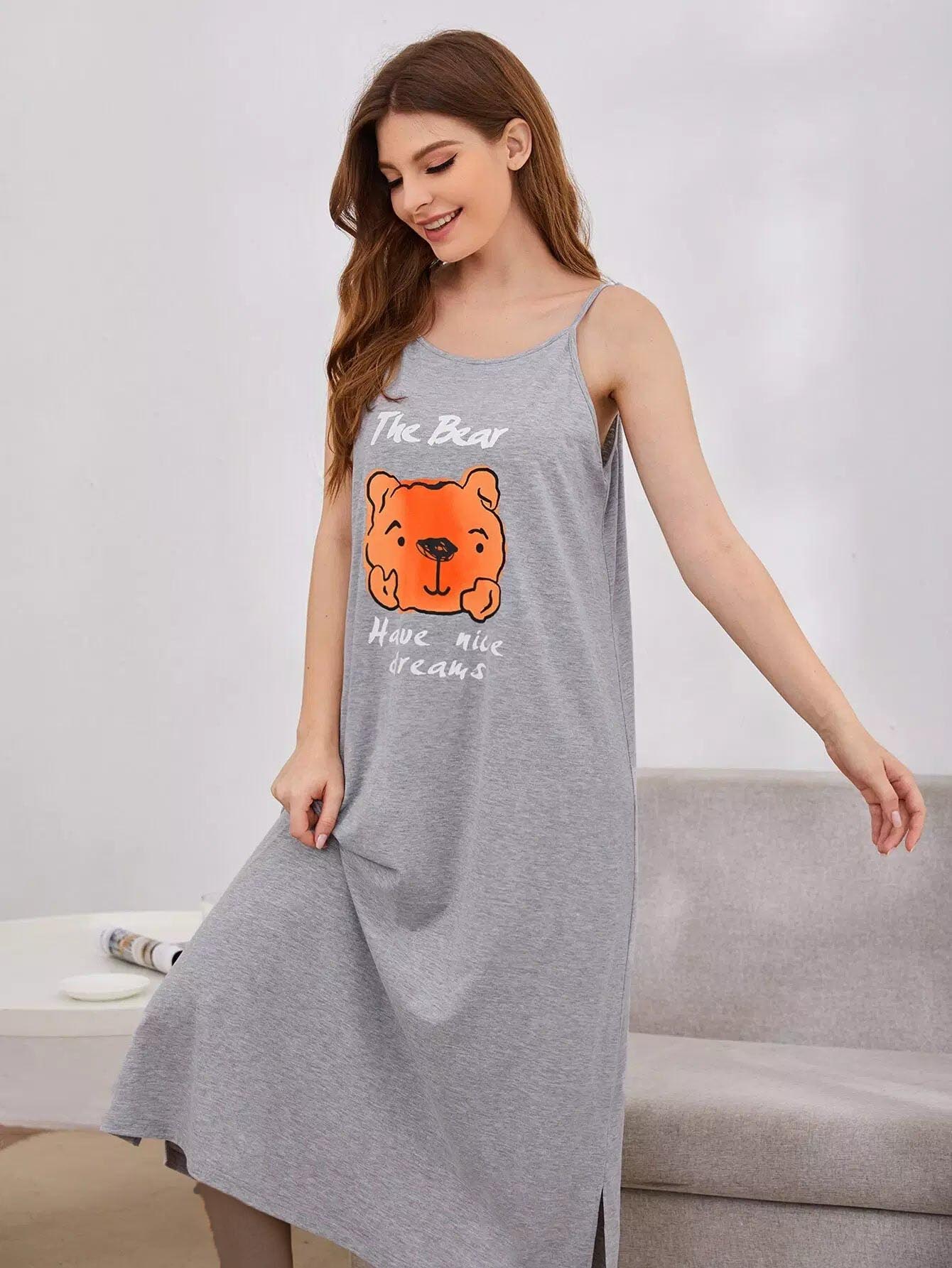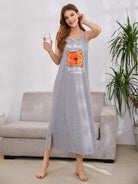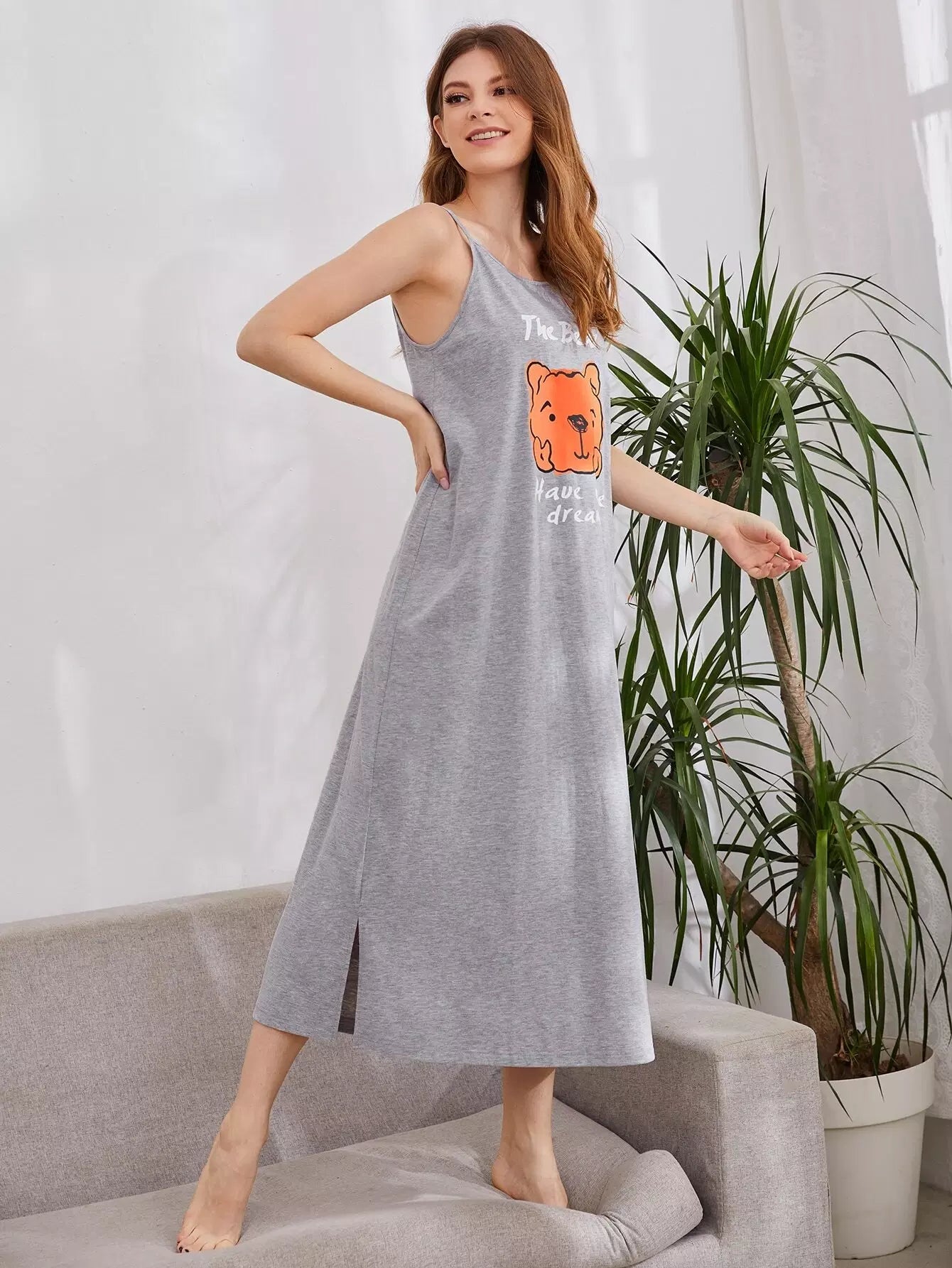 Cartoon & Slogan Graphic Split Hem Cami Night Dress