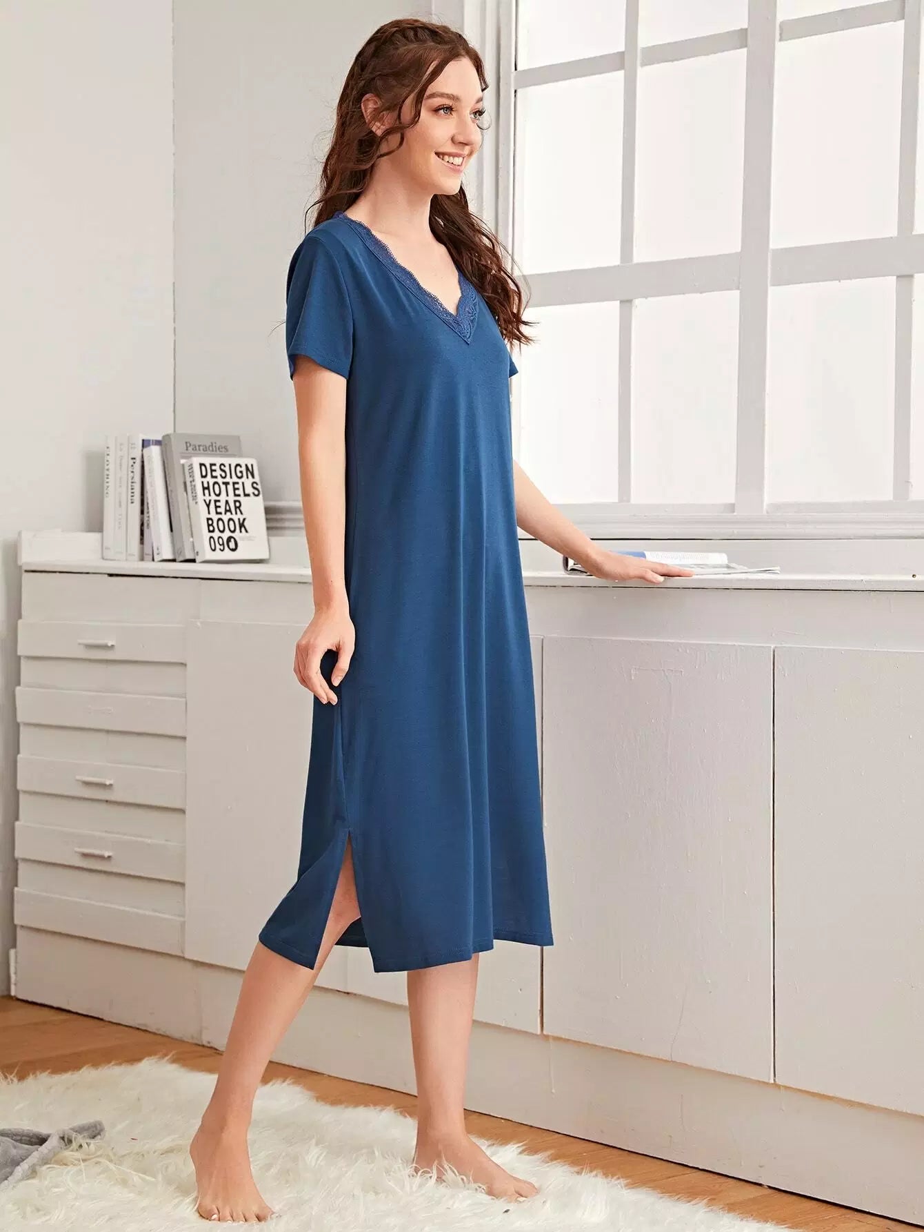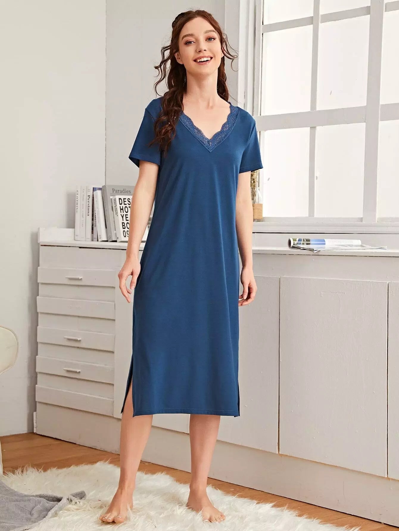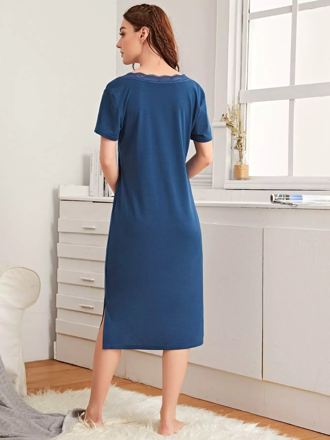 Women - Contrast Lace Split Hem Dress