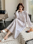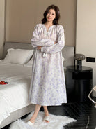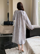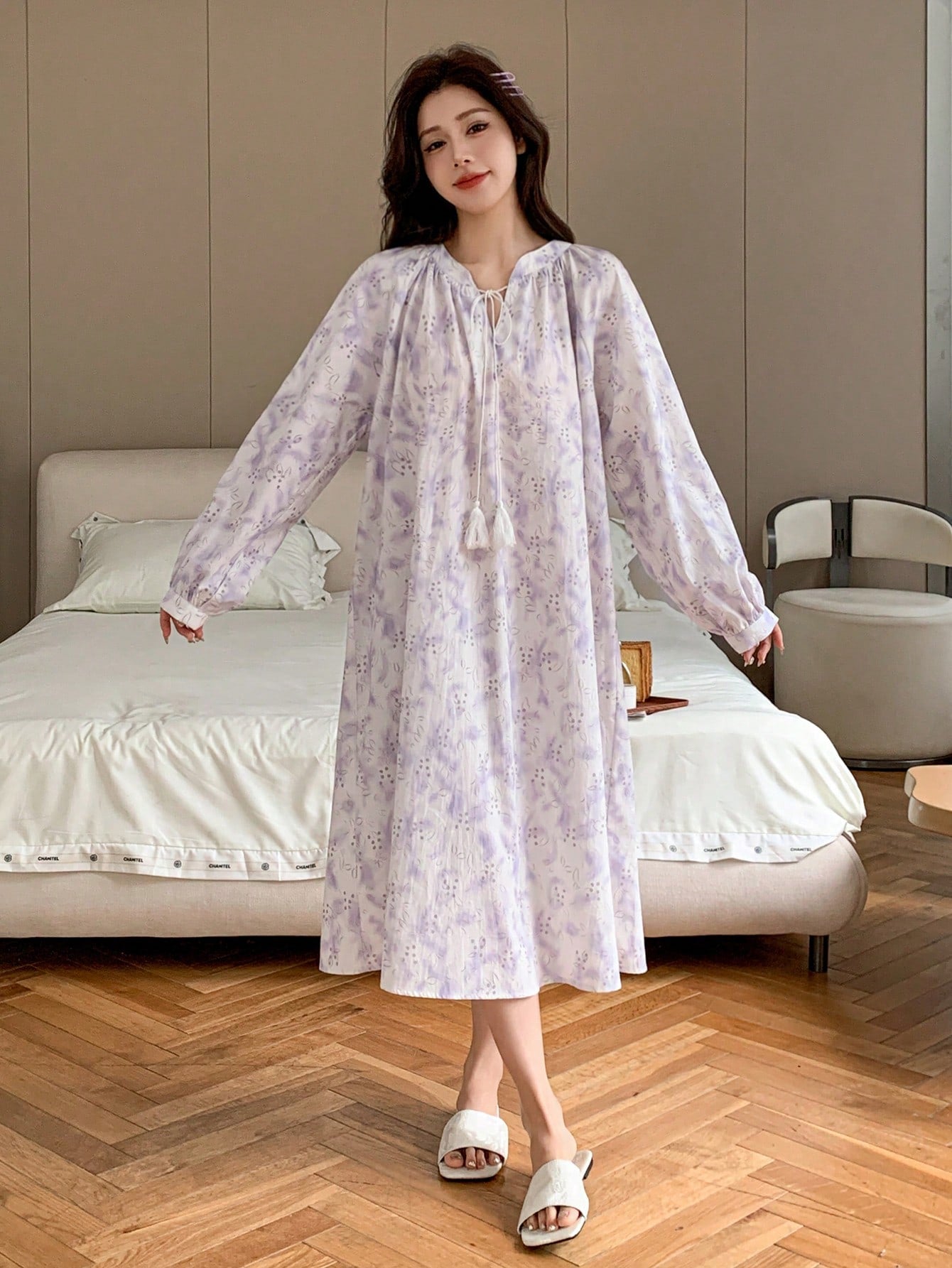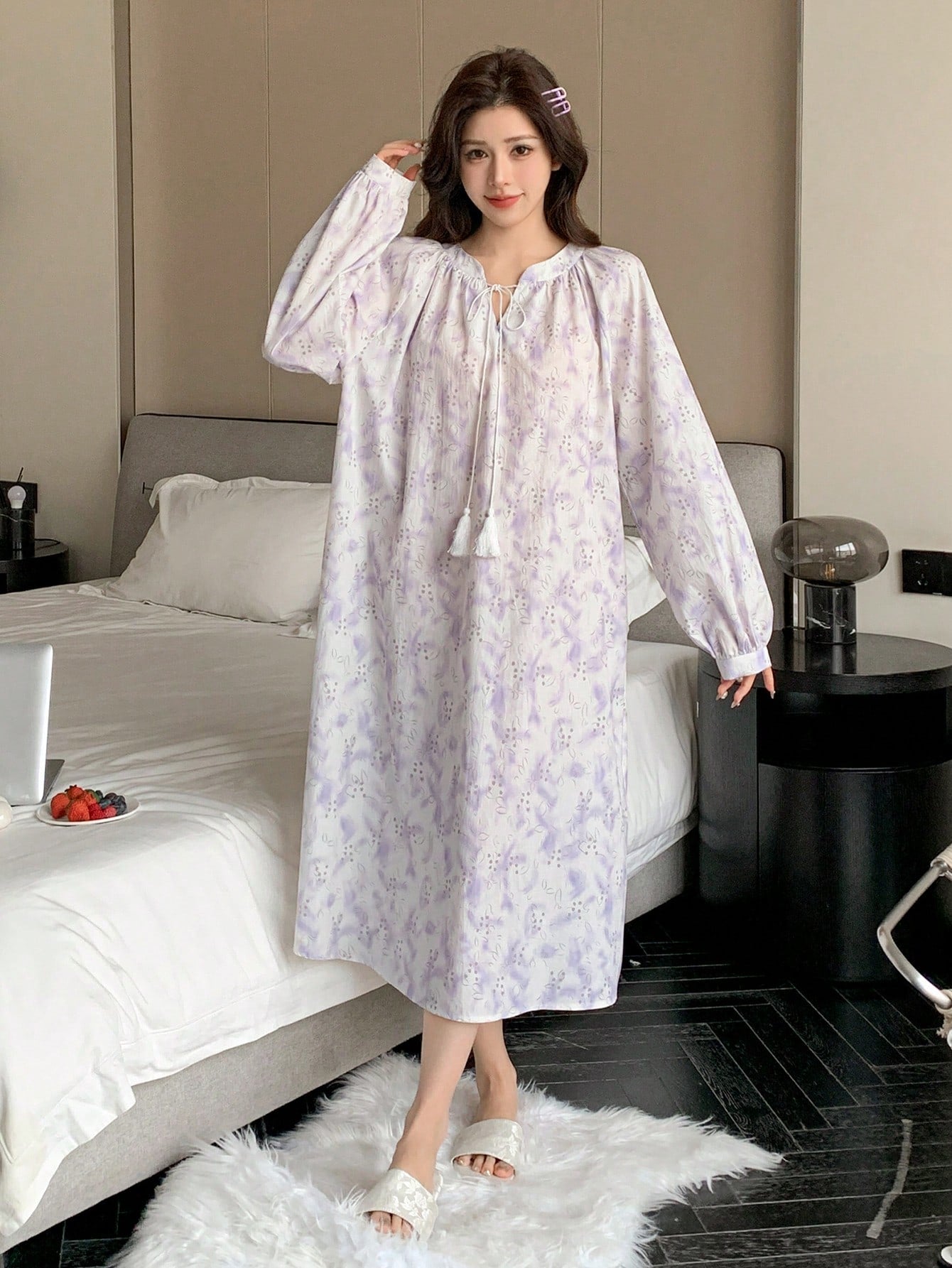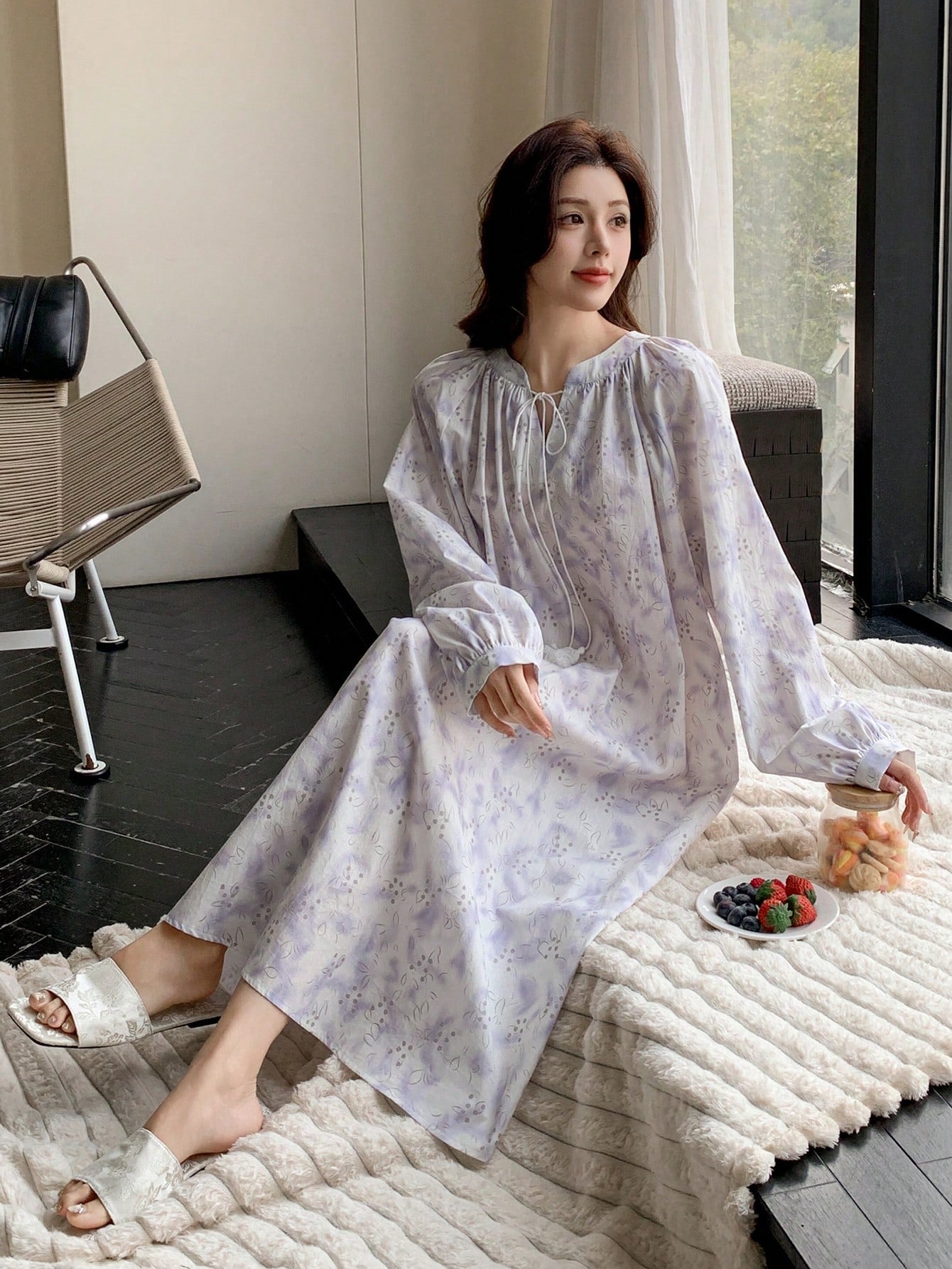 DAZY Women's Tie Dye Print Lantern Sleeve Loose Nightgown With Tie Pajama
