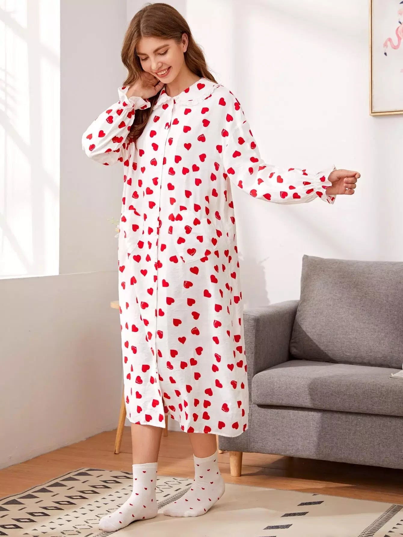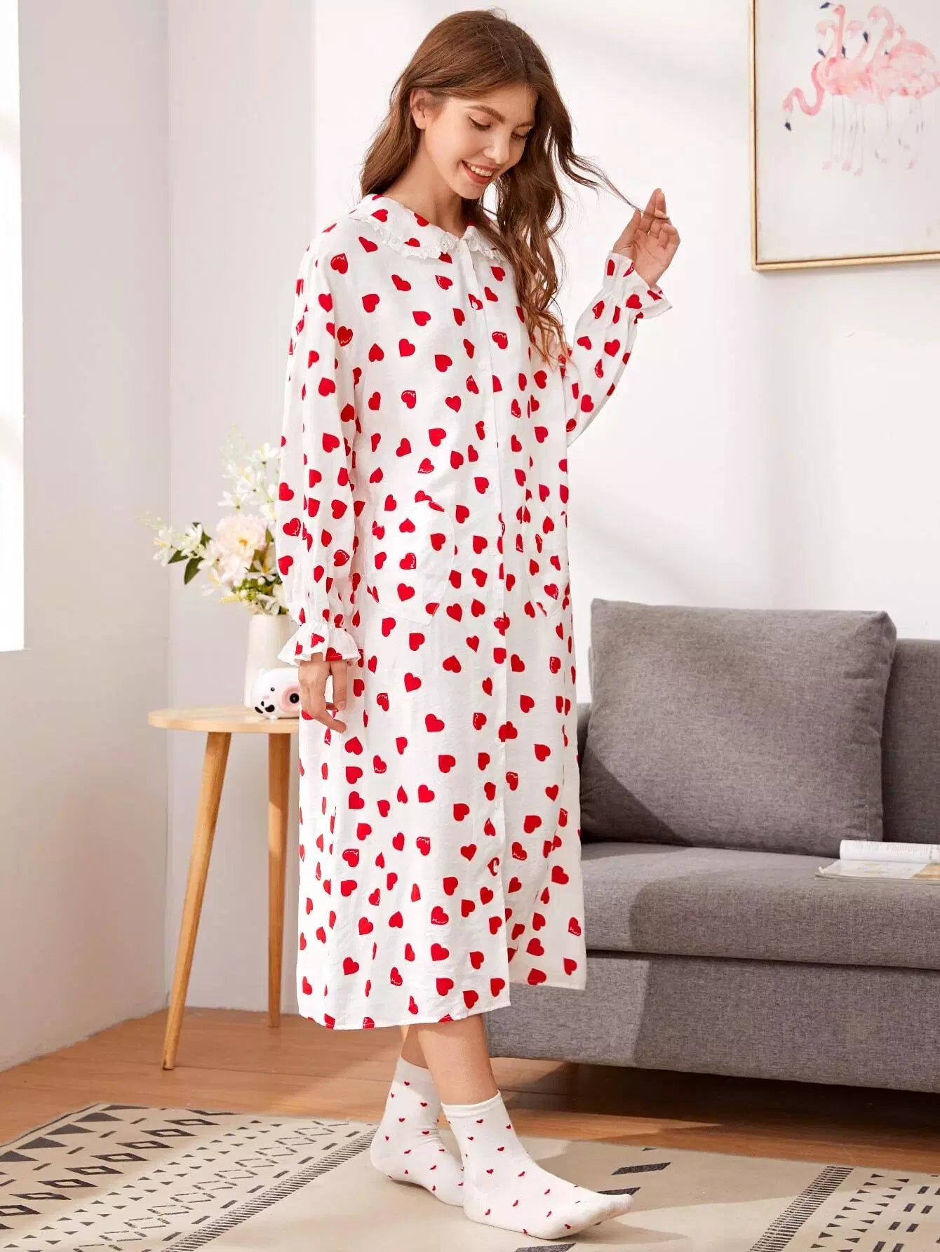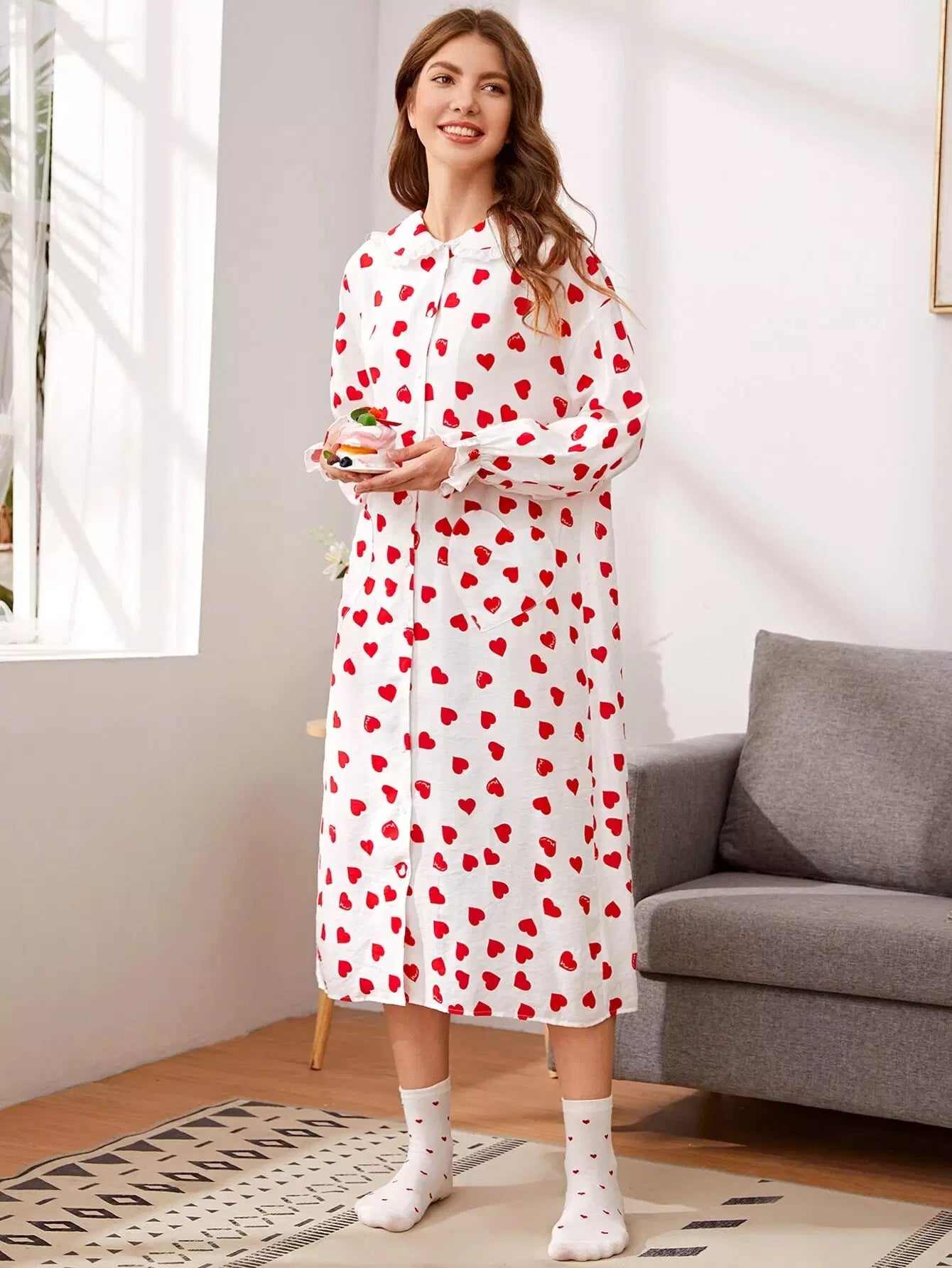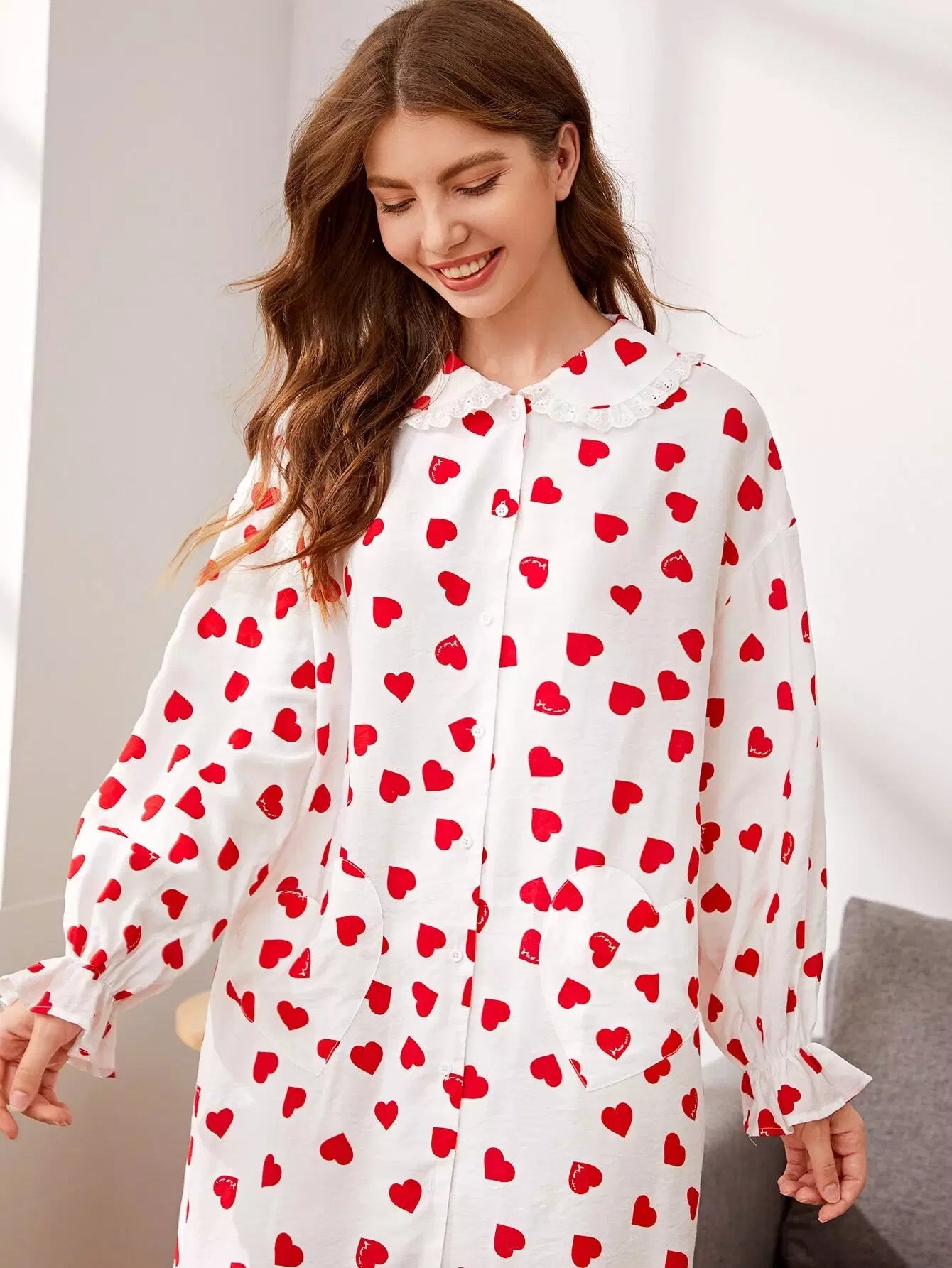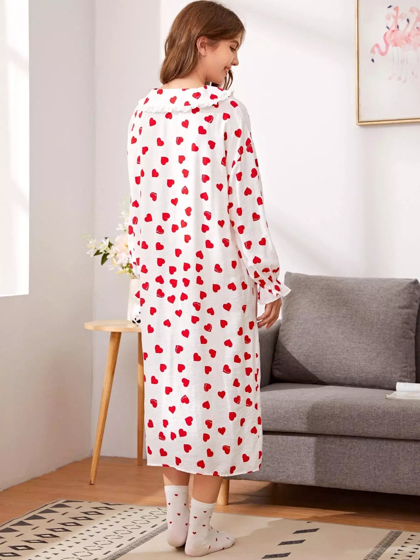 Eyelet Embroidered Frill Trim Heart Shirt Nightdress