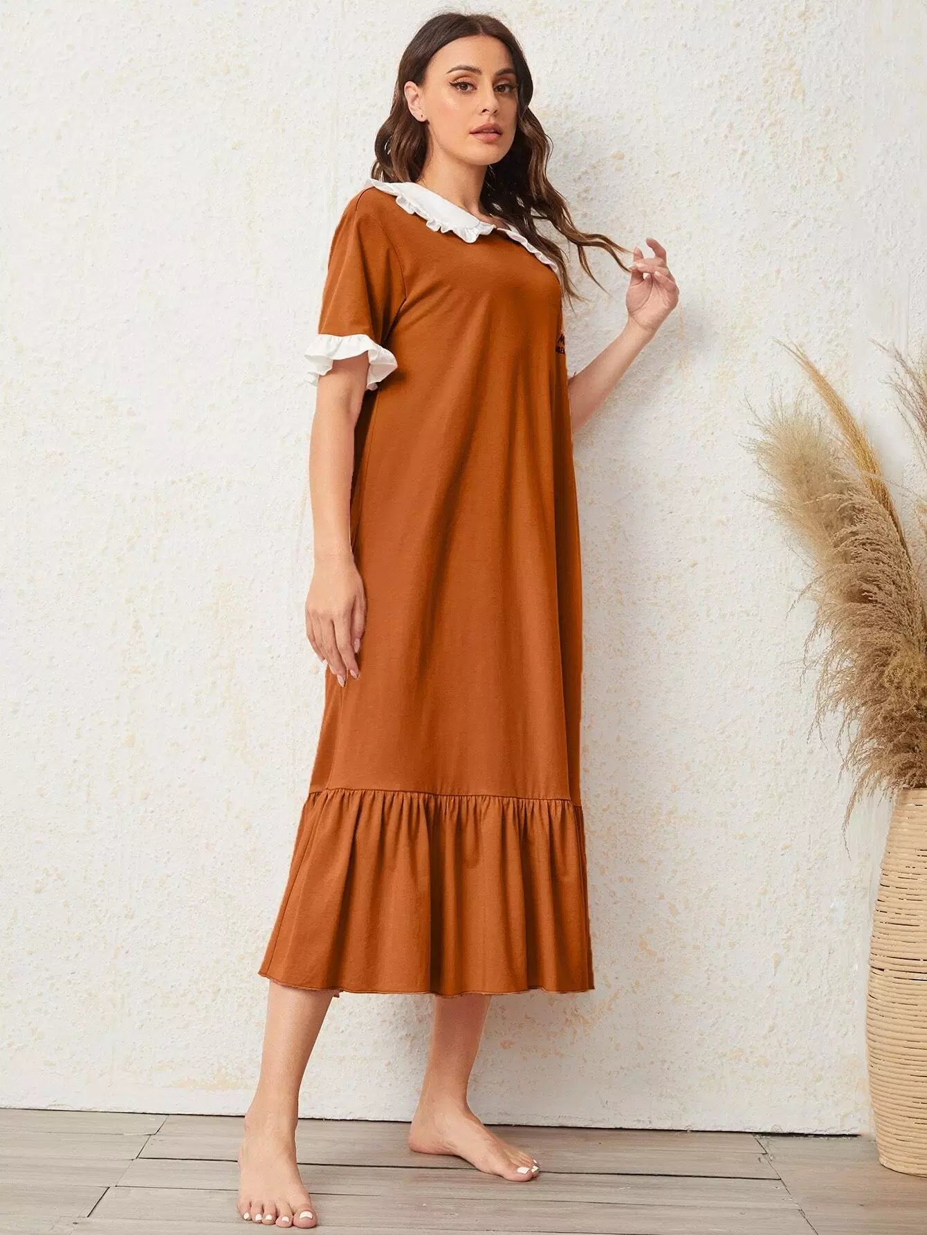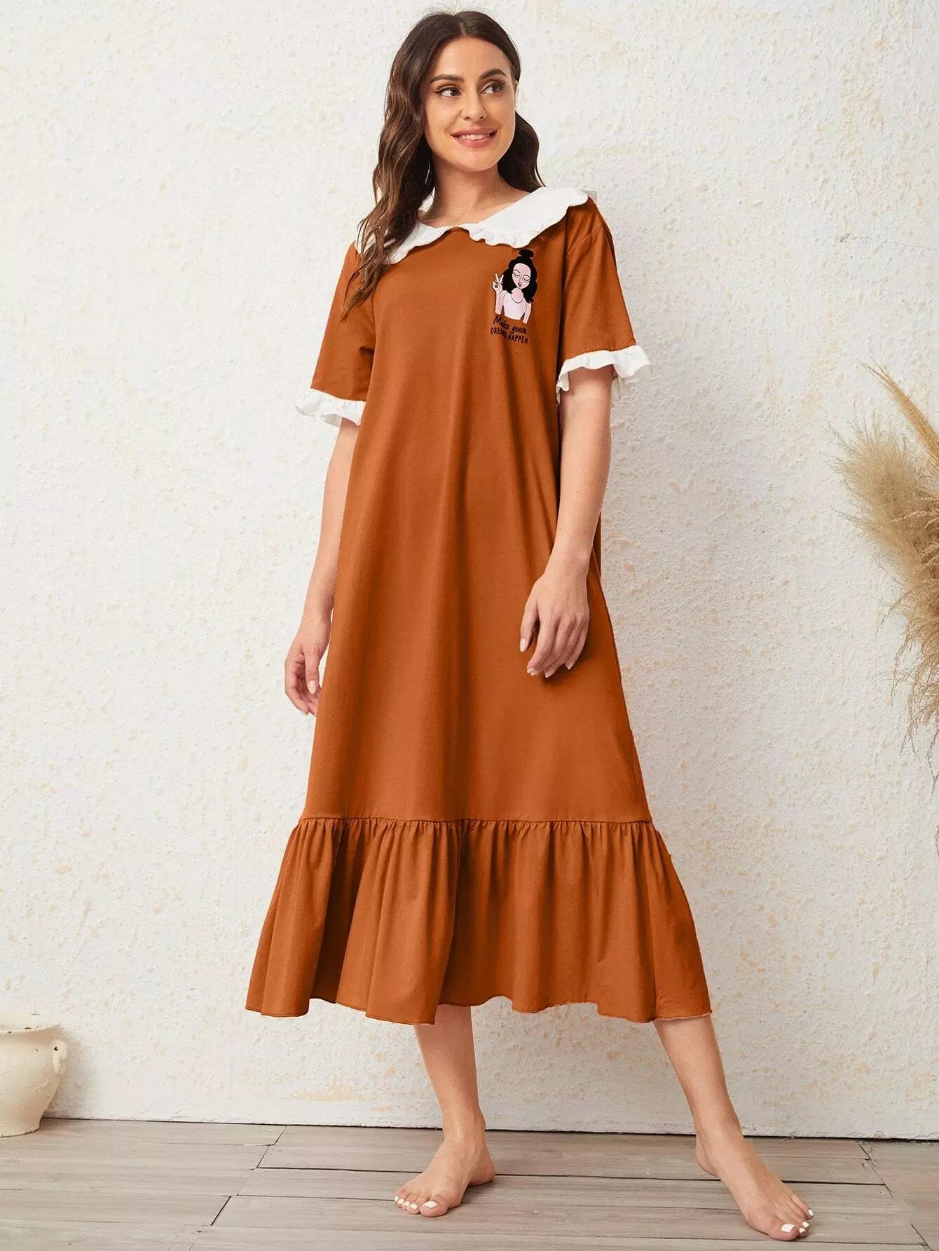 Figure Graphic Ruffle Trim Nightdress