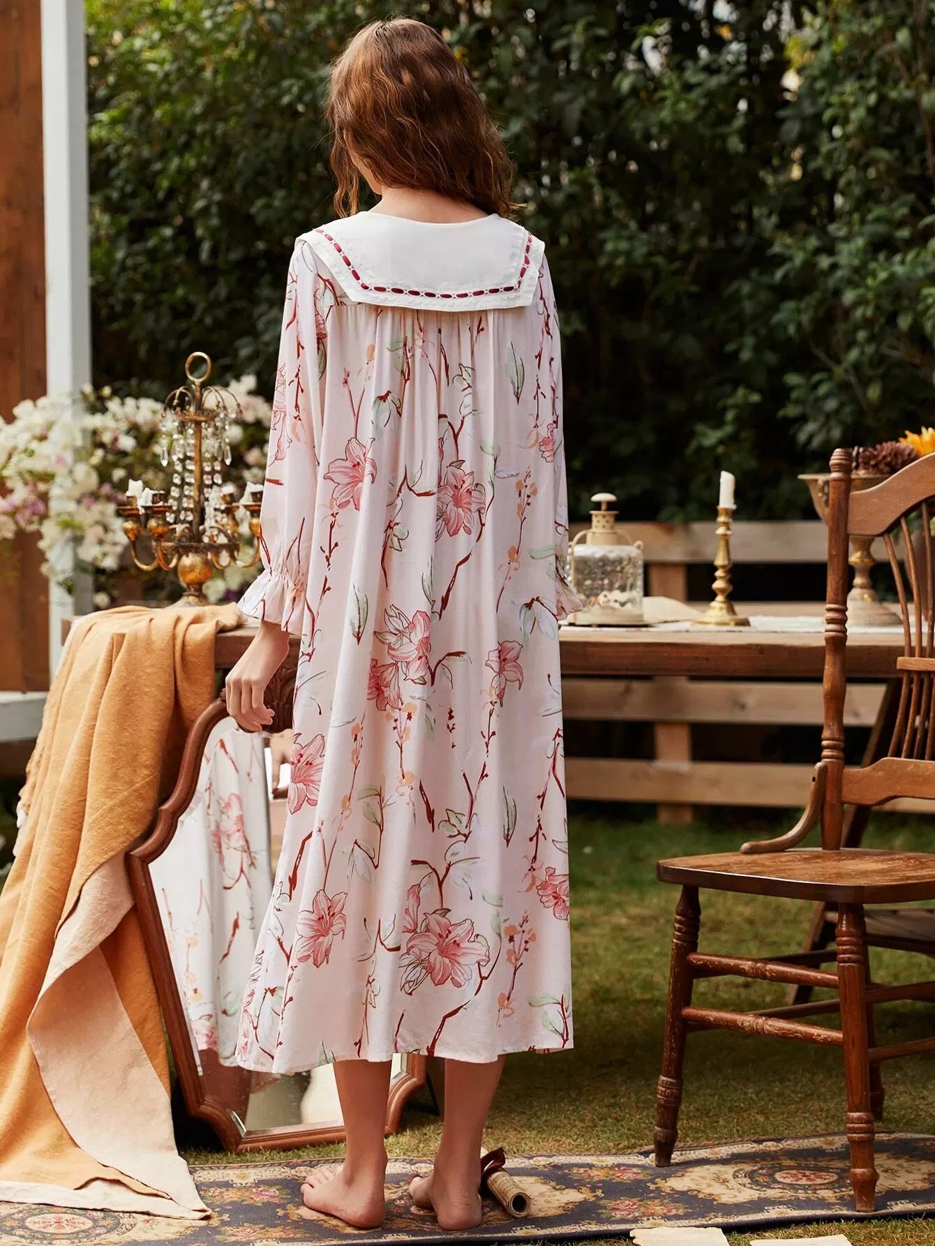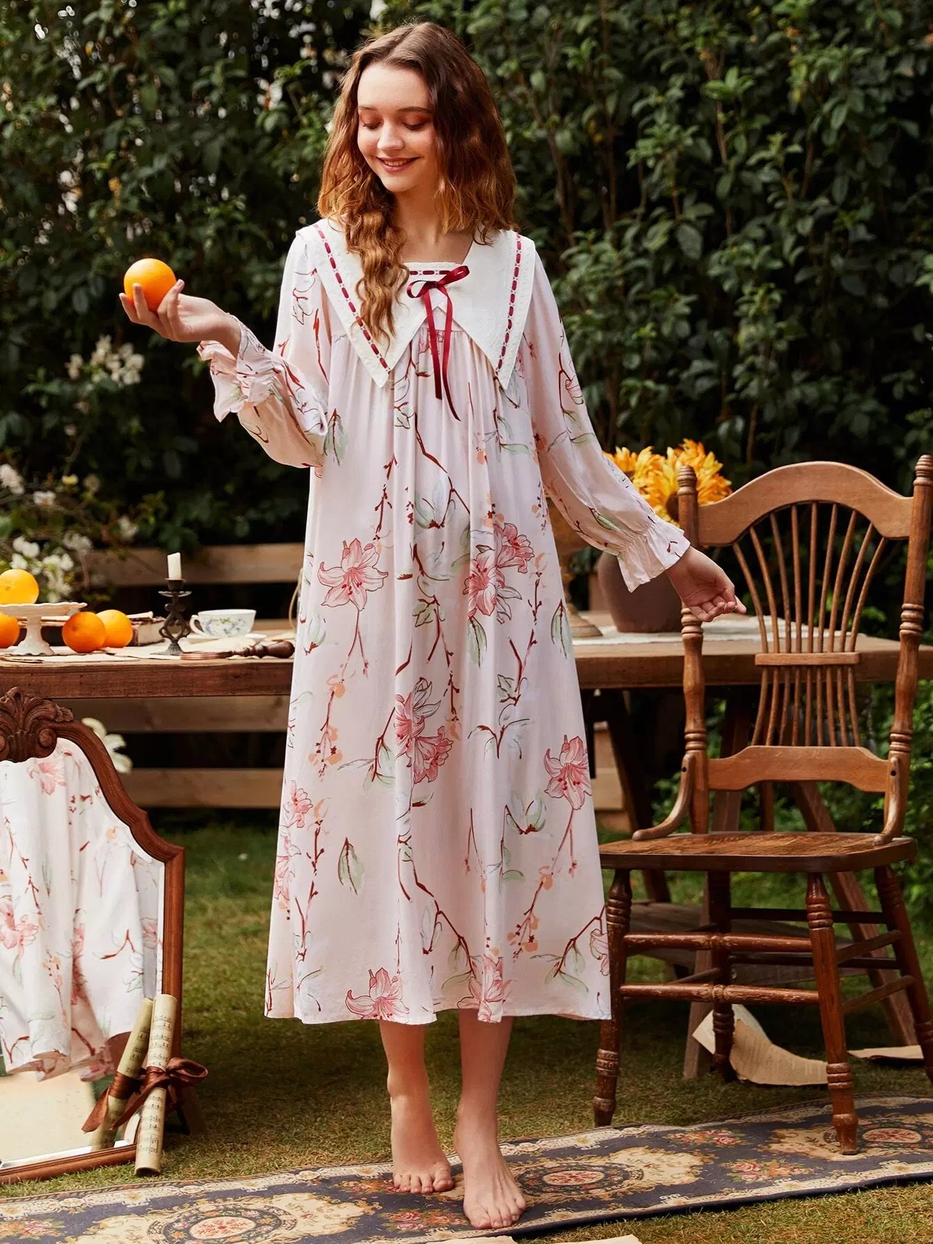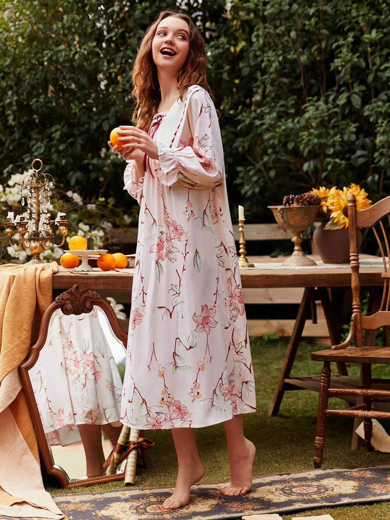 Women - Floral Print Bow Night Dress
