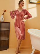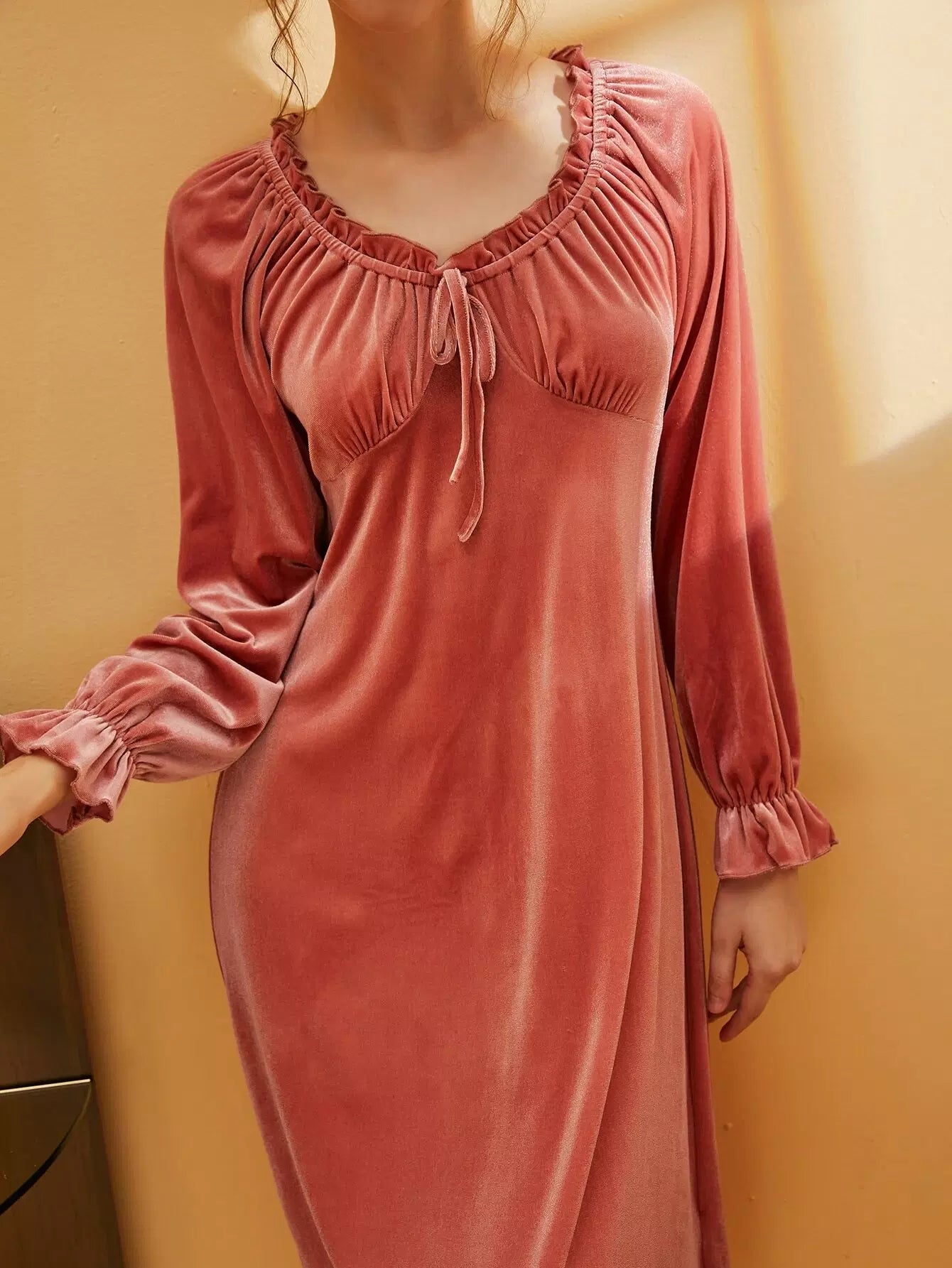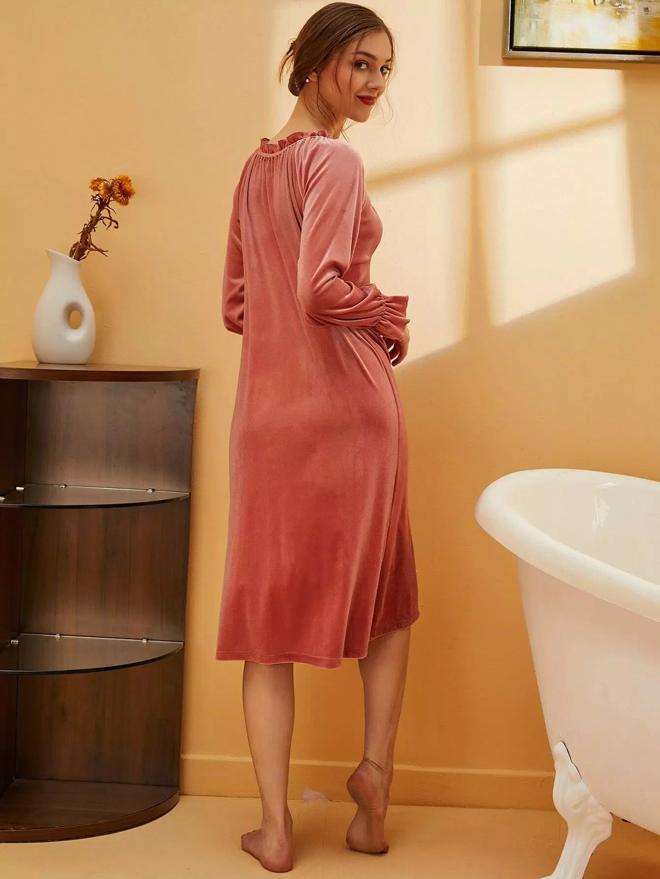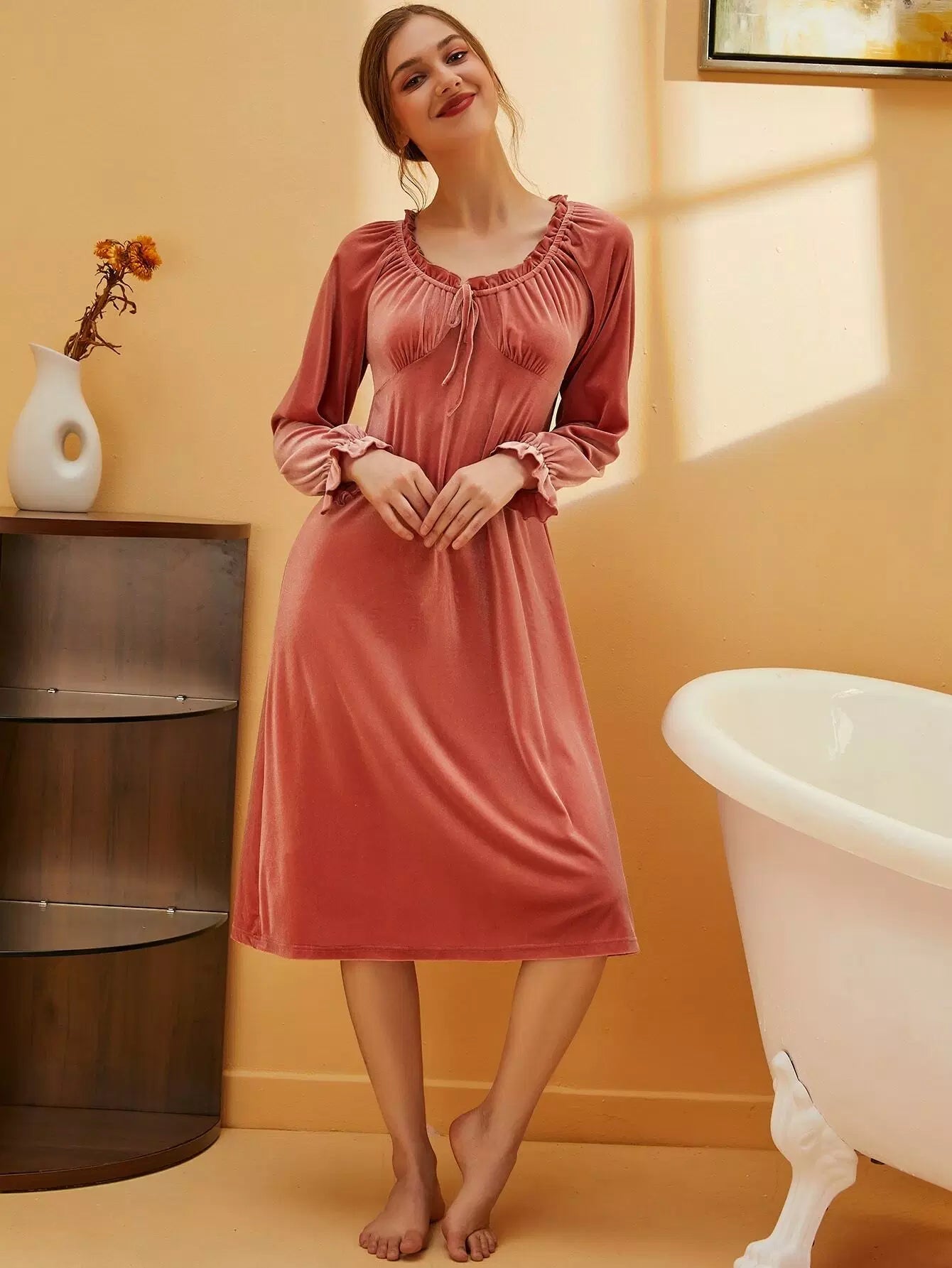Frill Trim Ruched Bust Flounce Sleeve Night Dress