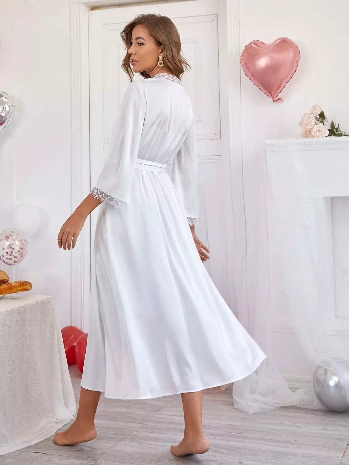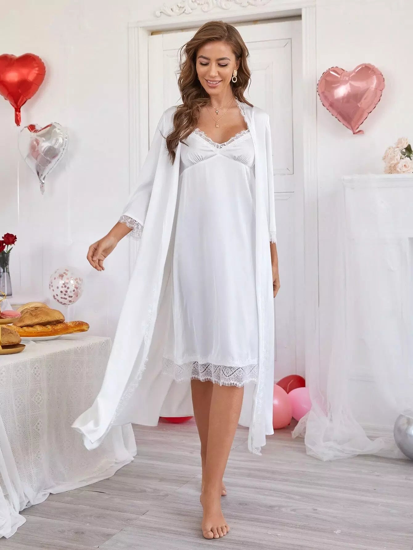 2 Pack Satin Contrast Lace Night Set Without Belt