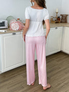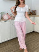 2pcs Women Lace Round Neck Striped Pajamas Set