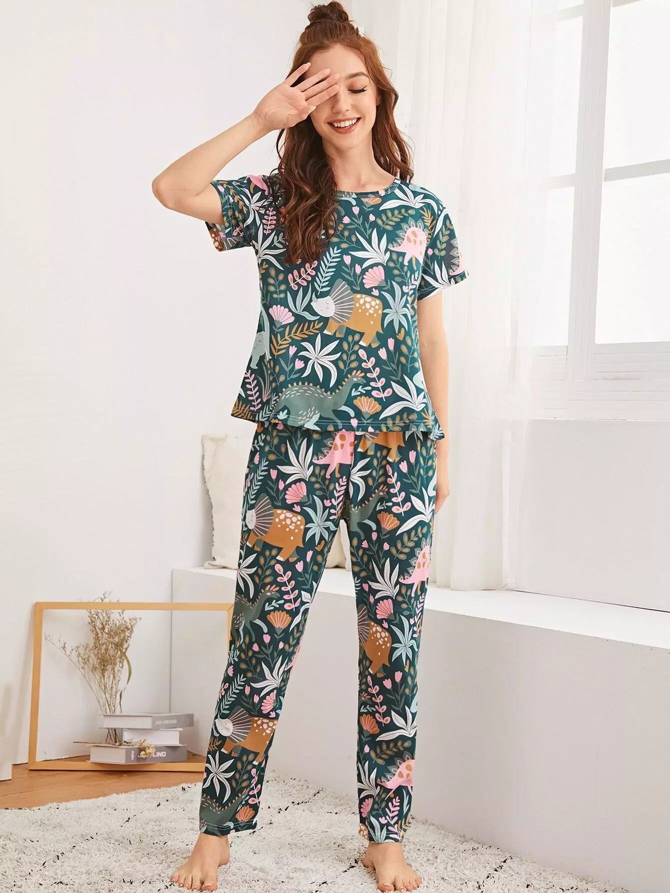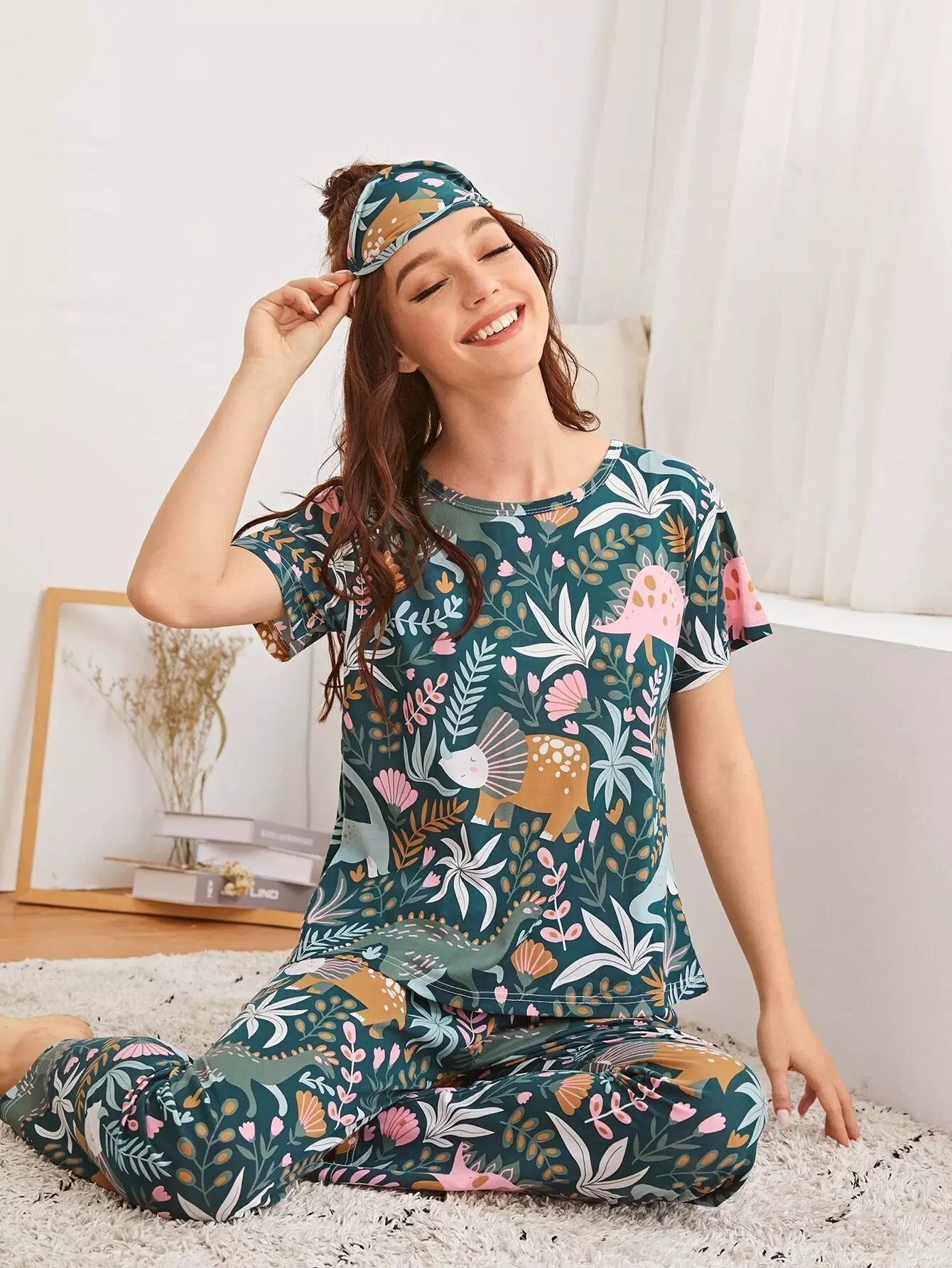 Cartoon Dinosaur Print PJ Set & Eye Cover