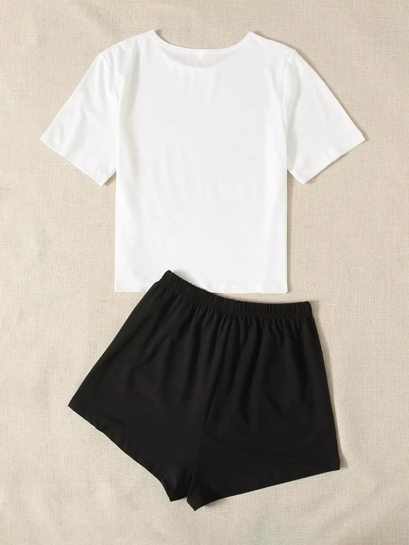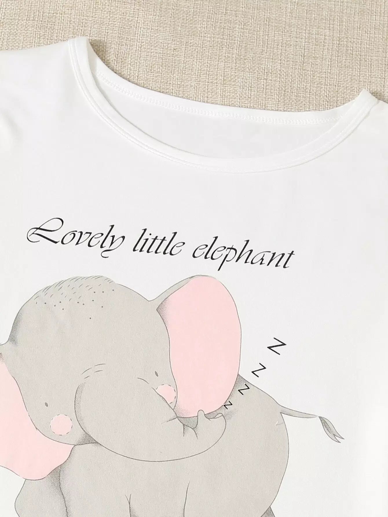 Cartoon Elephant And Slogan Graphic Pajama Set