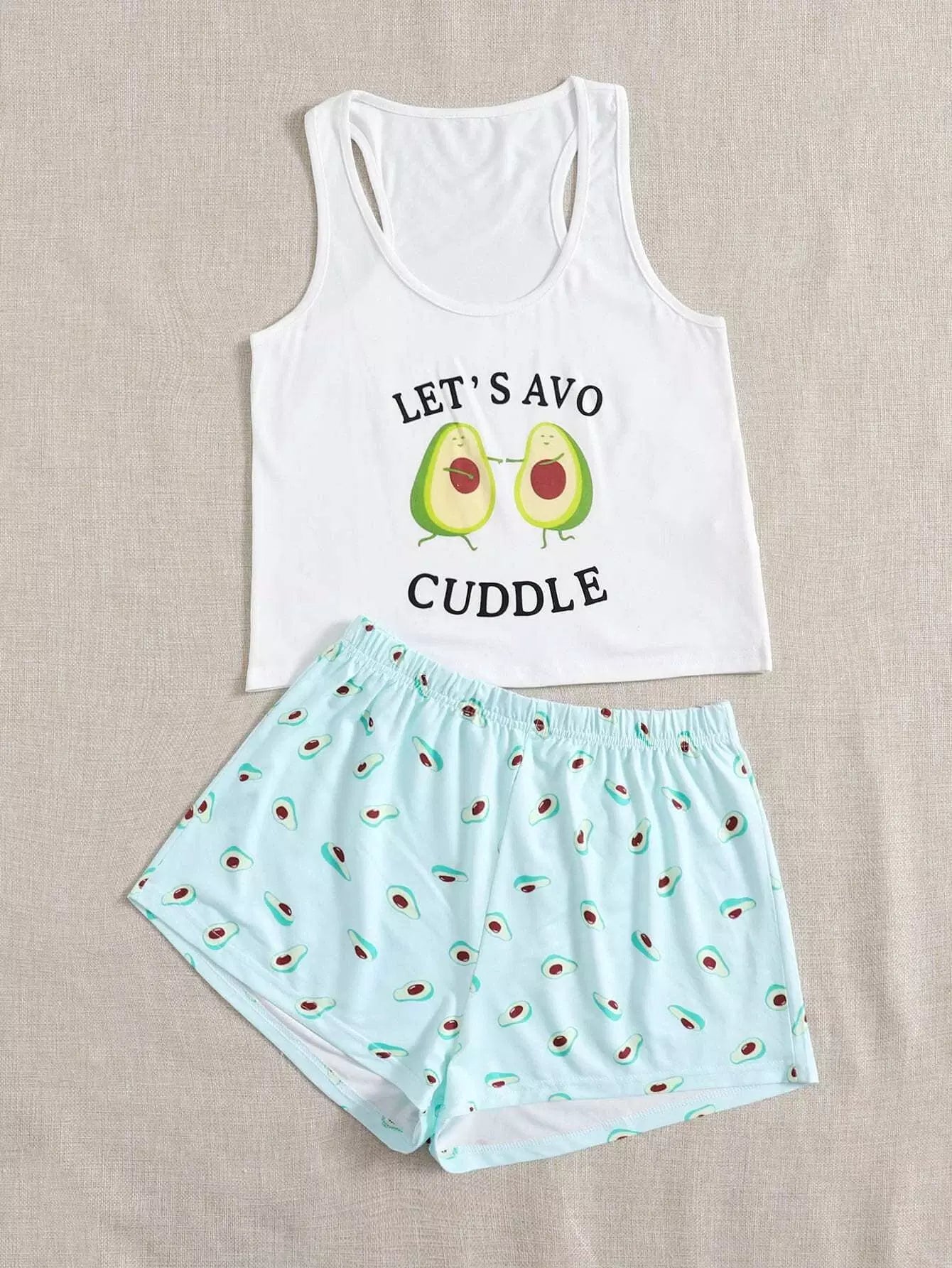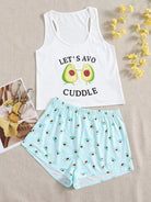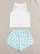 Cartoon & Slogan Graphic Tank Top And Shorts PJ Set