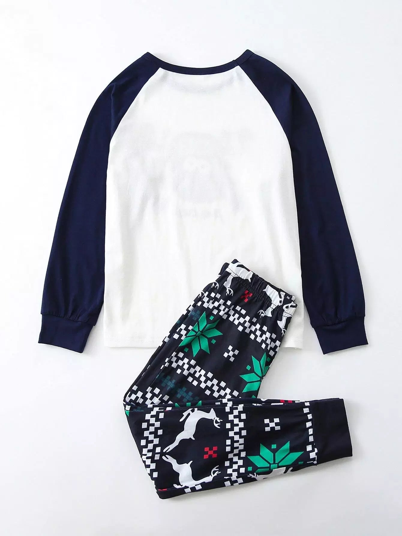 Christmas Print Raglan Sleeve 1pc Sleep Top & 1pc Sleep Pants