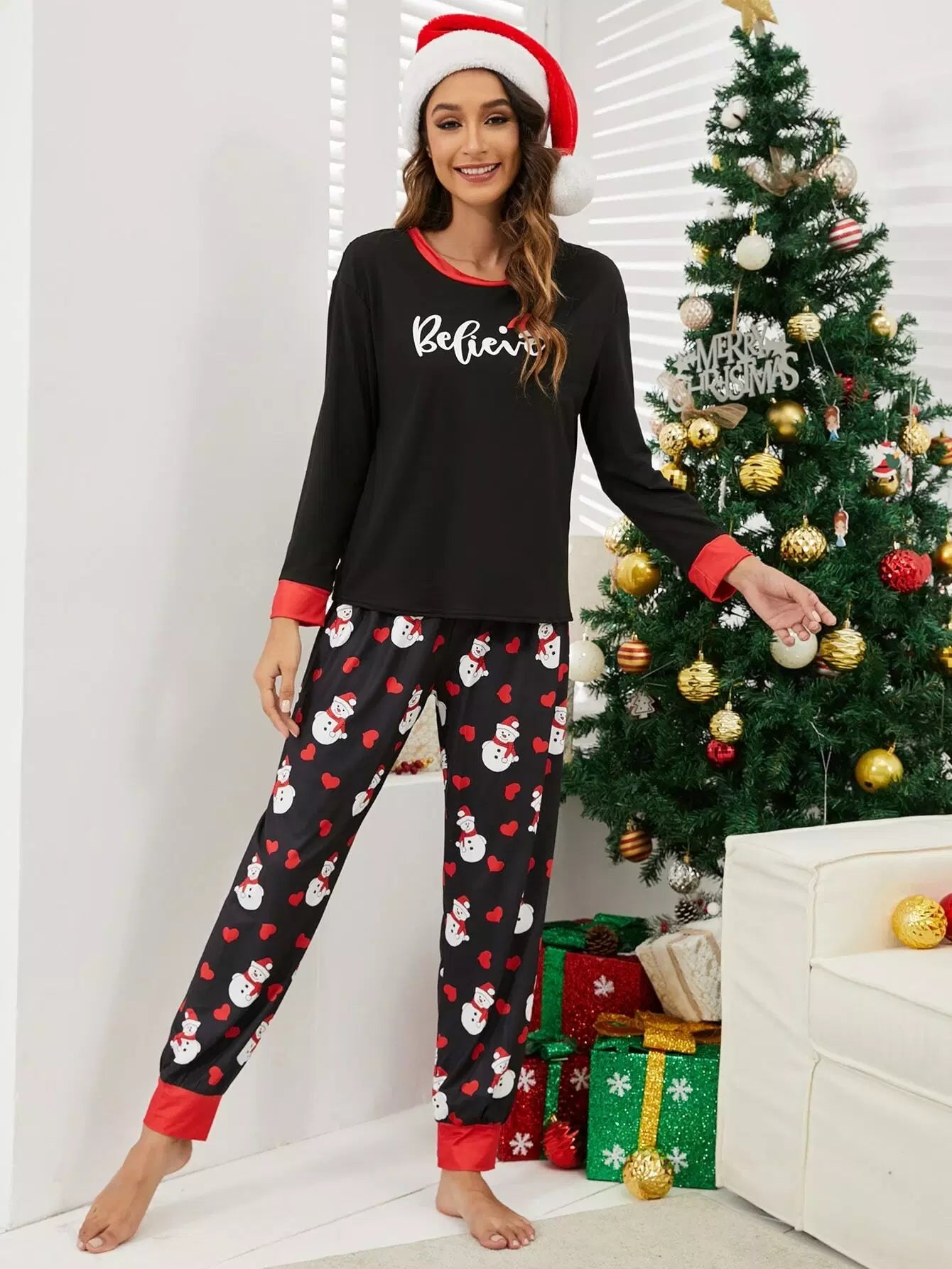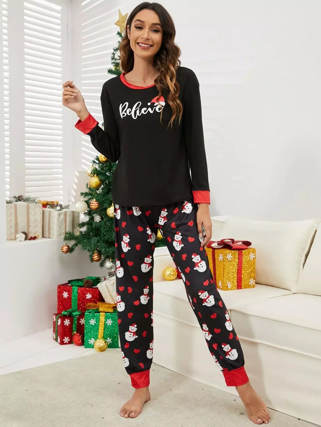 Women - Christmas Print Tee & Allover Print Pants PJ Set