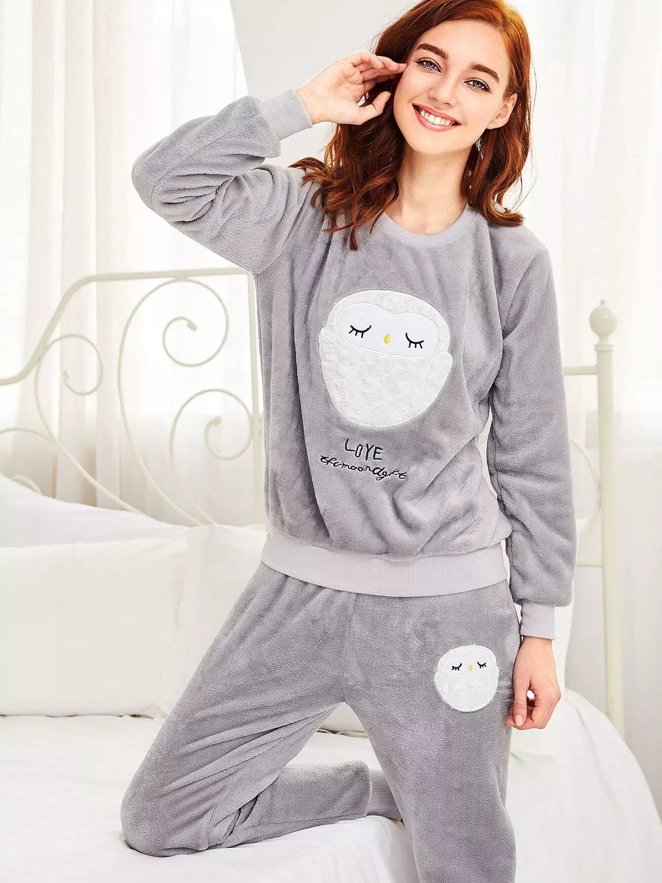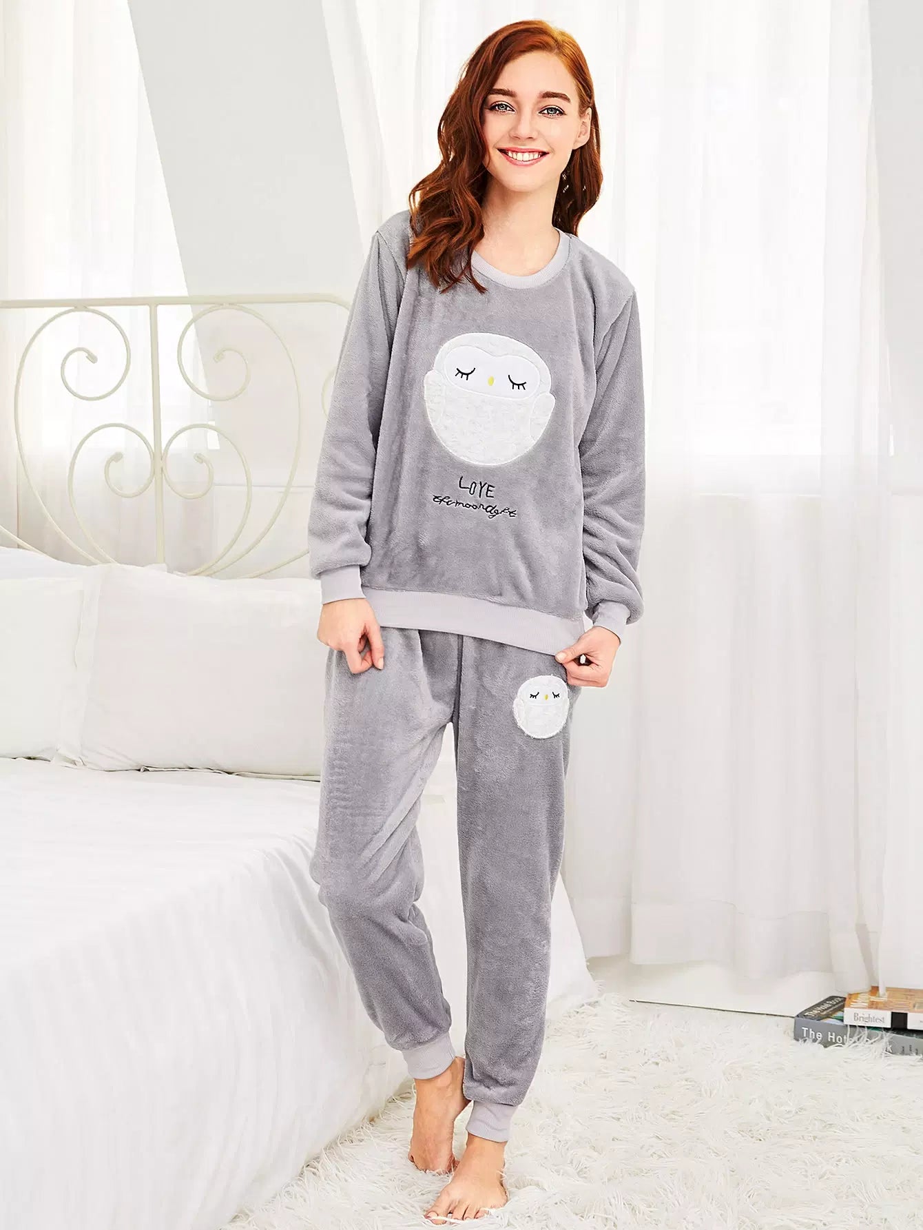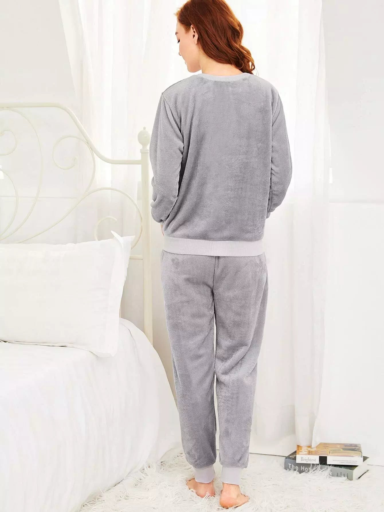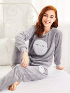 Women - Faux Fleece Embroidered Pullover & Pants Pj Set