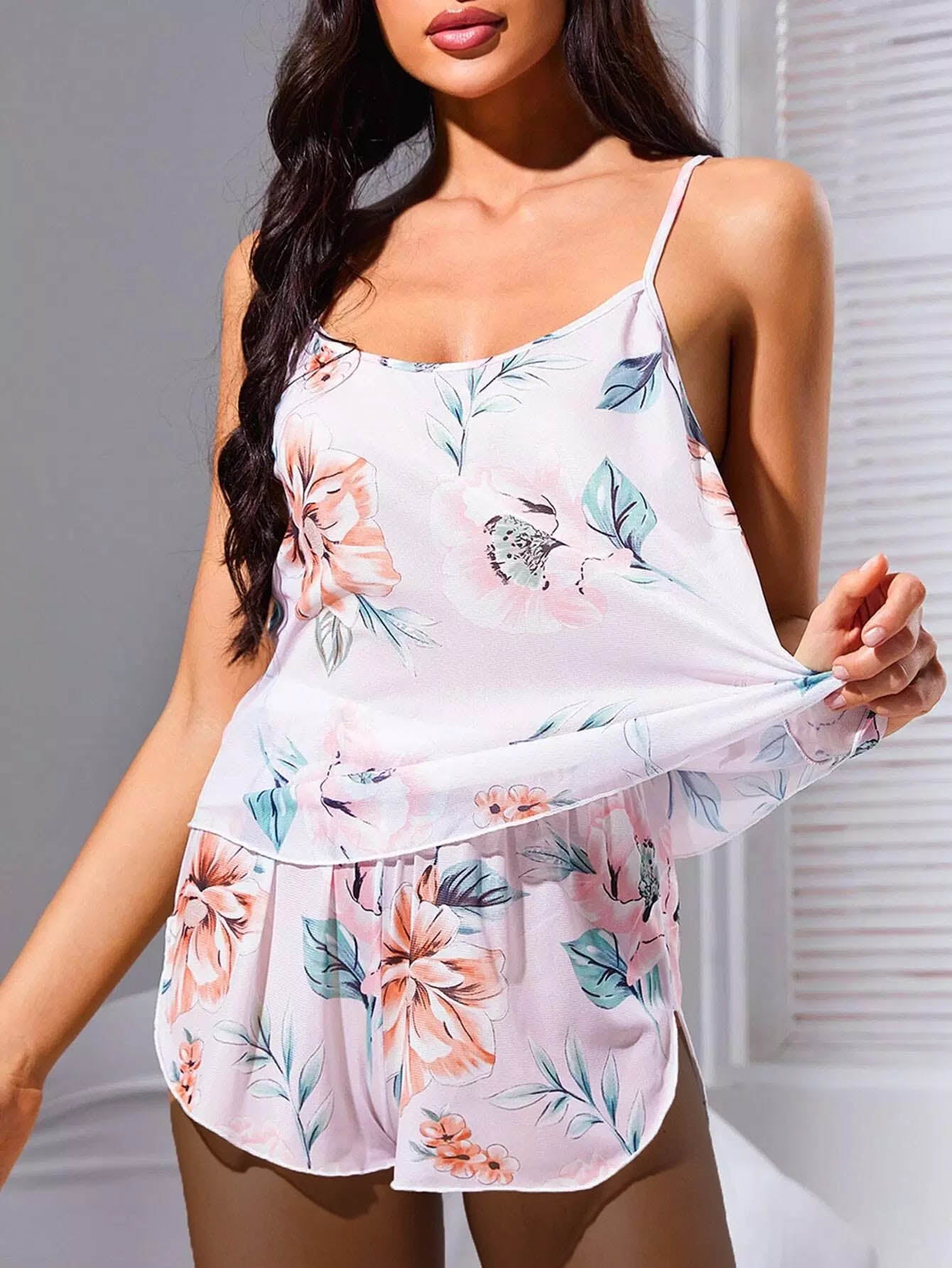 Floral Print Cami Top And Shorts PJ Set