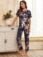 Floral Print Tie Front Pajama Set
