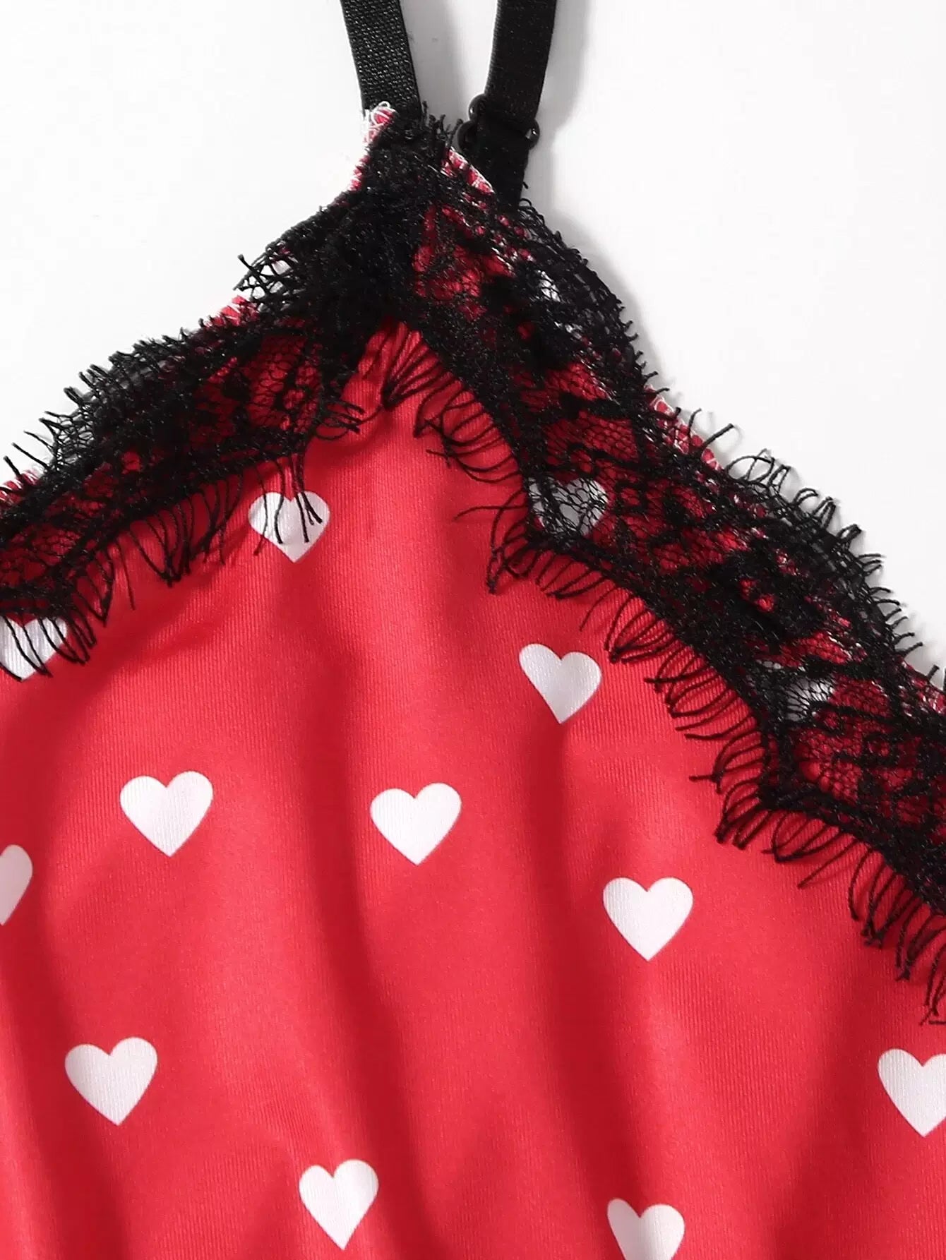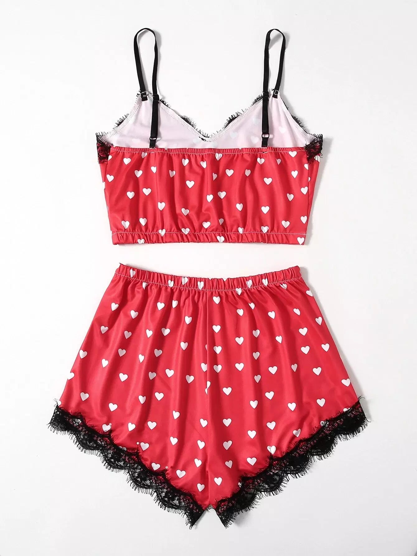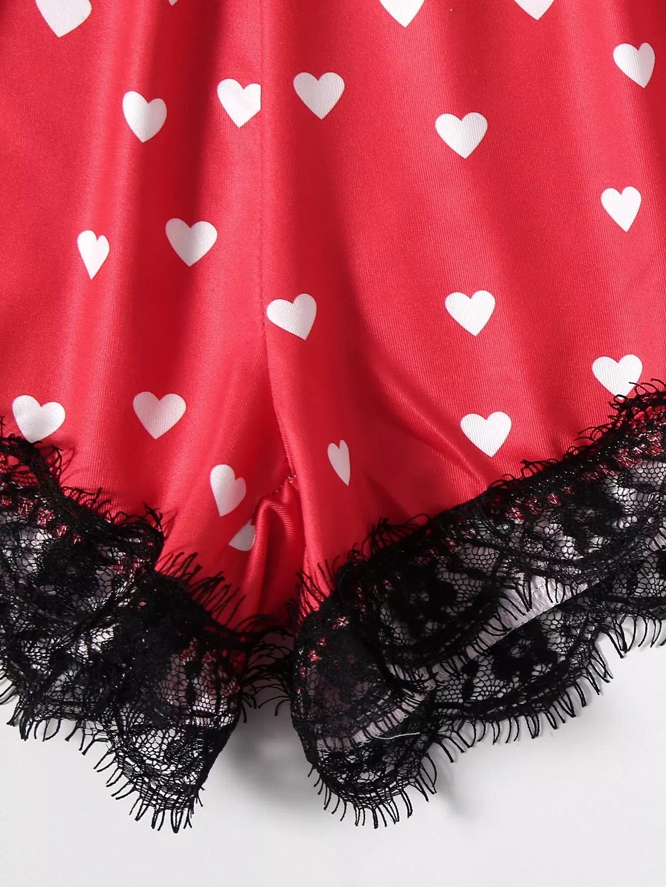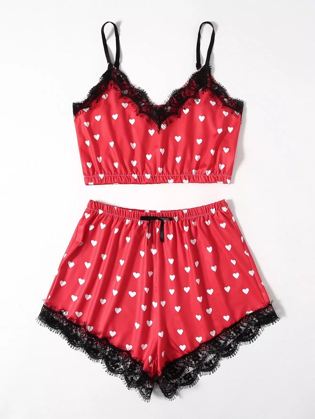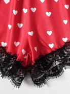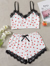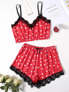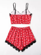 Heart Print Contrast Lace Pajama Set
