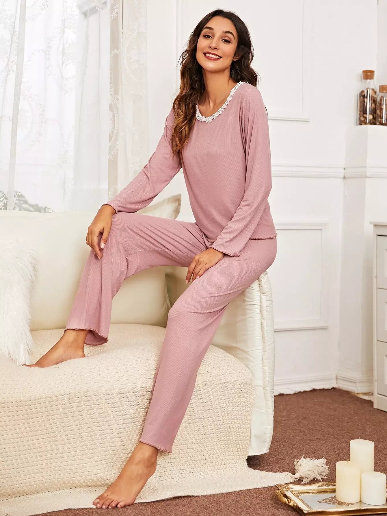 Lace Trim Pajama Set