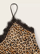 Women - Leopard Print Lace Trim Satin Cami PJ Set