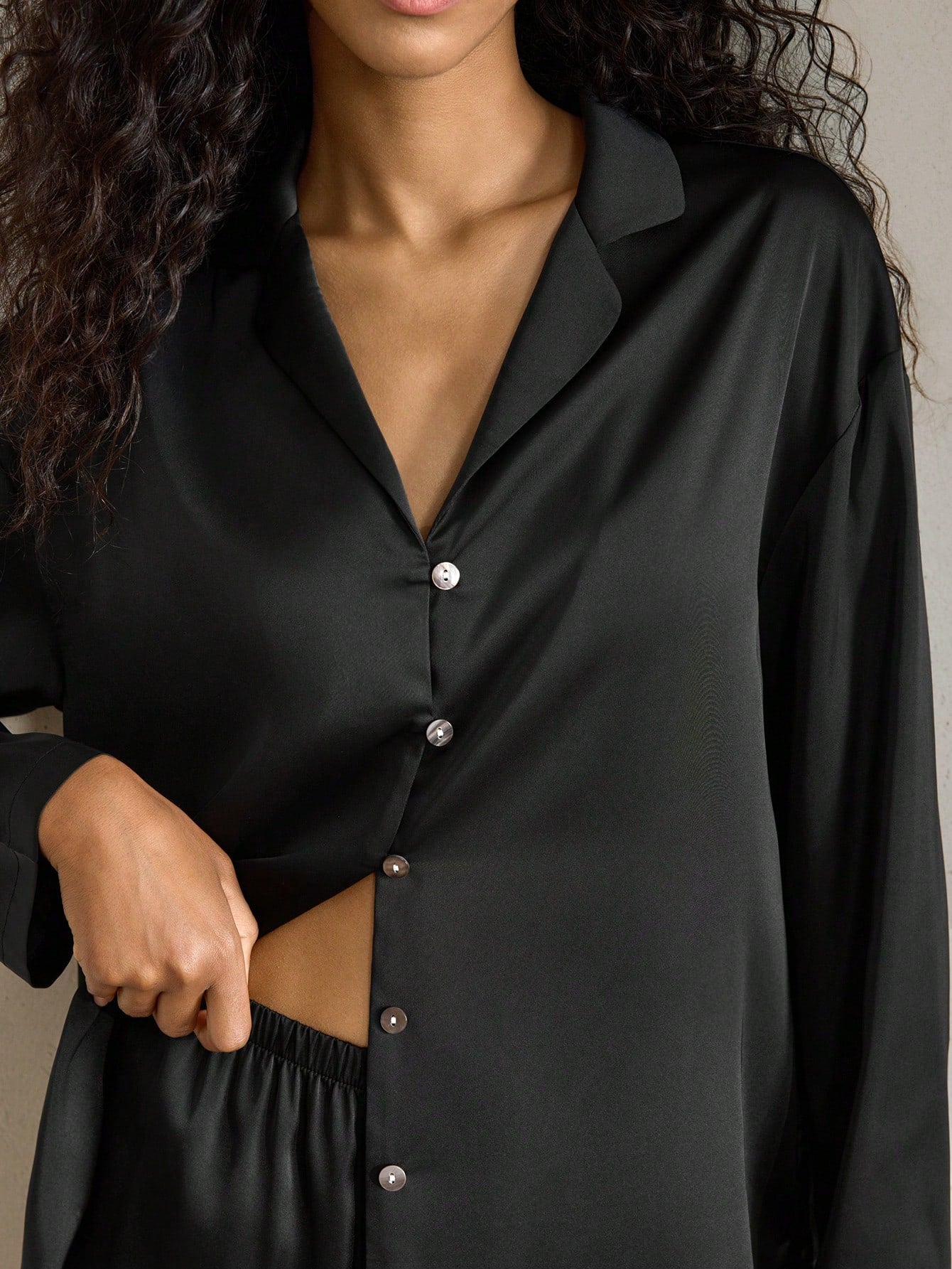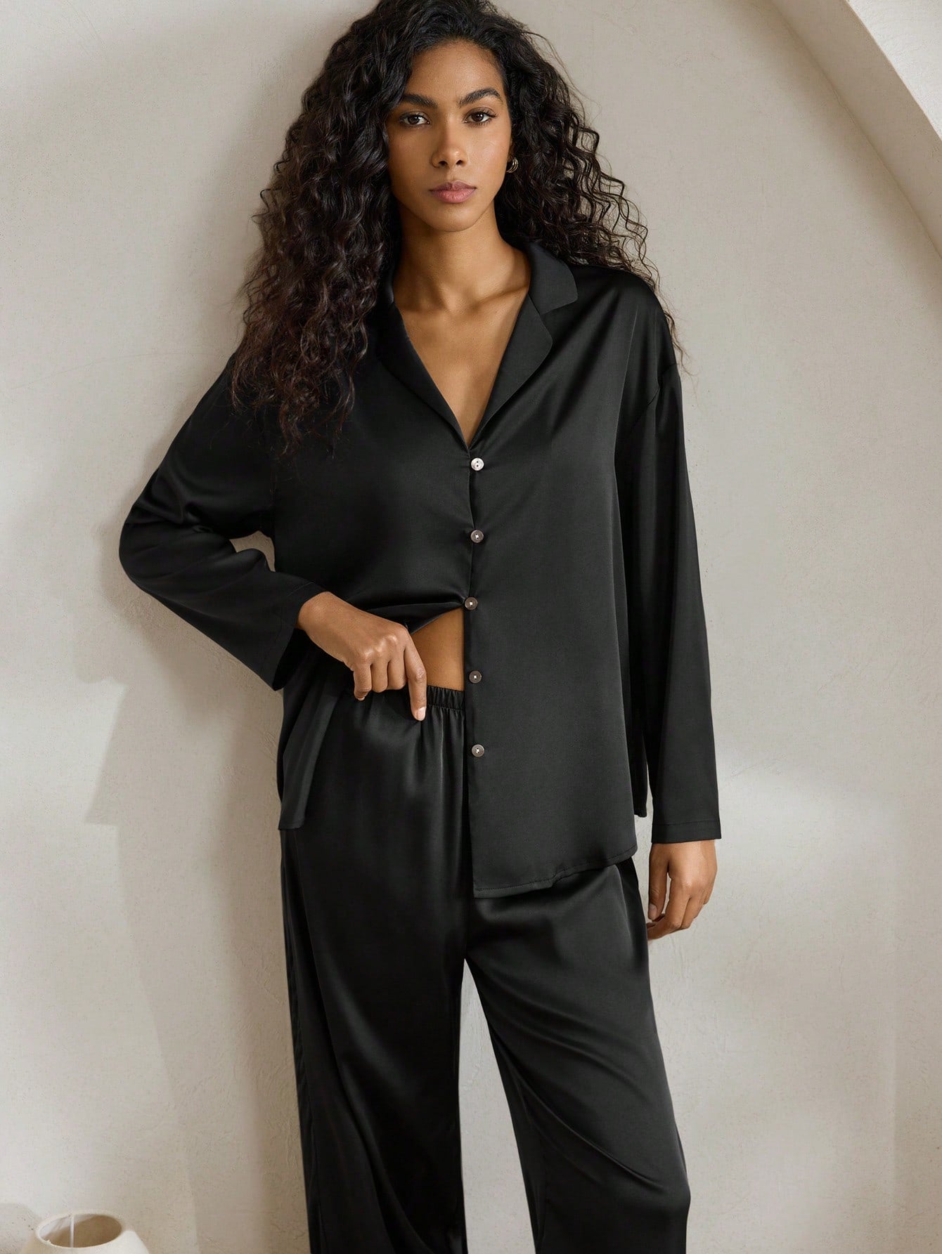 Ocili Leisure Women's Silky Satin Loose Fit Long Sleeve Top & Long Pants Pajama Set Holiday Season