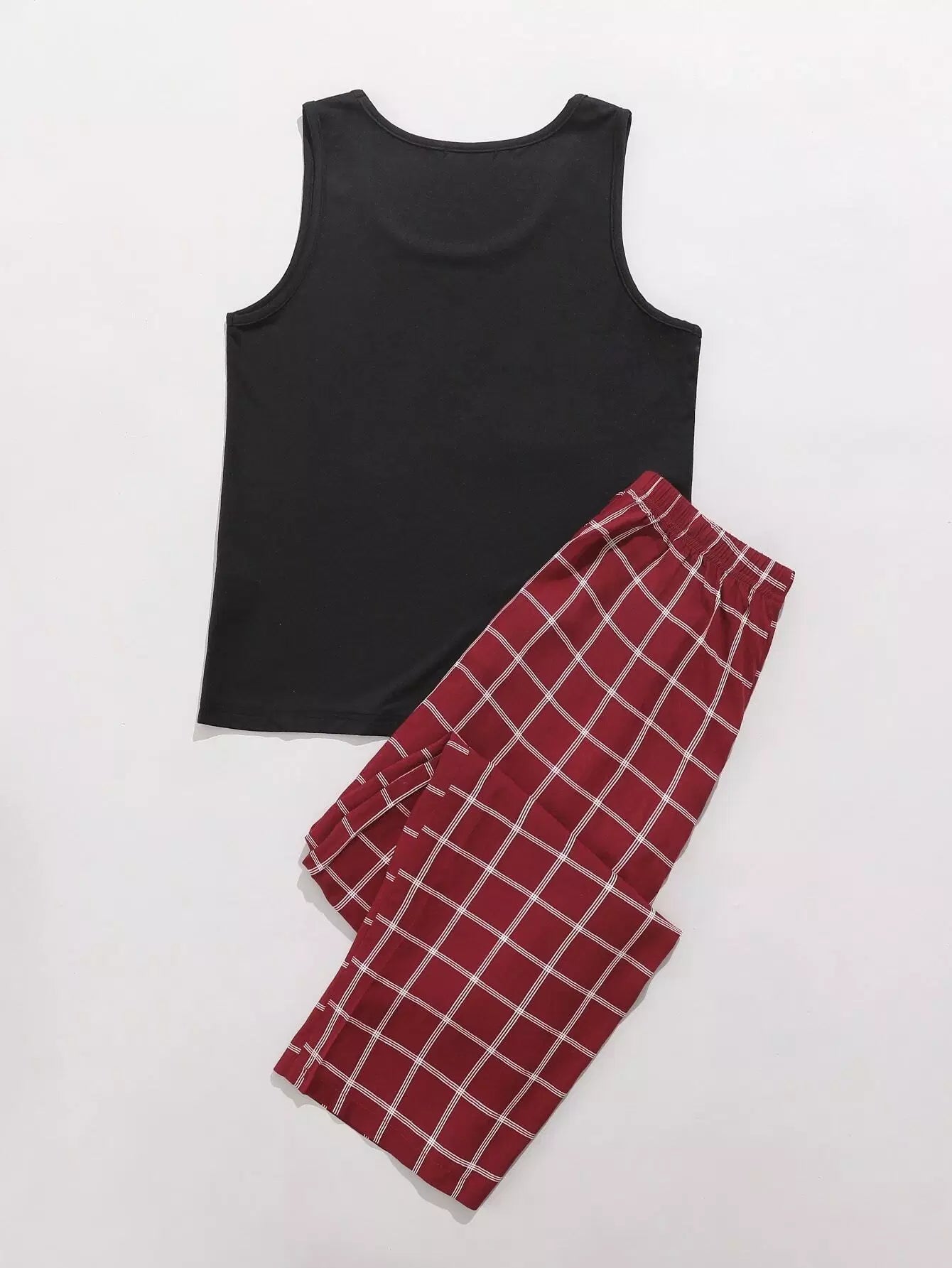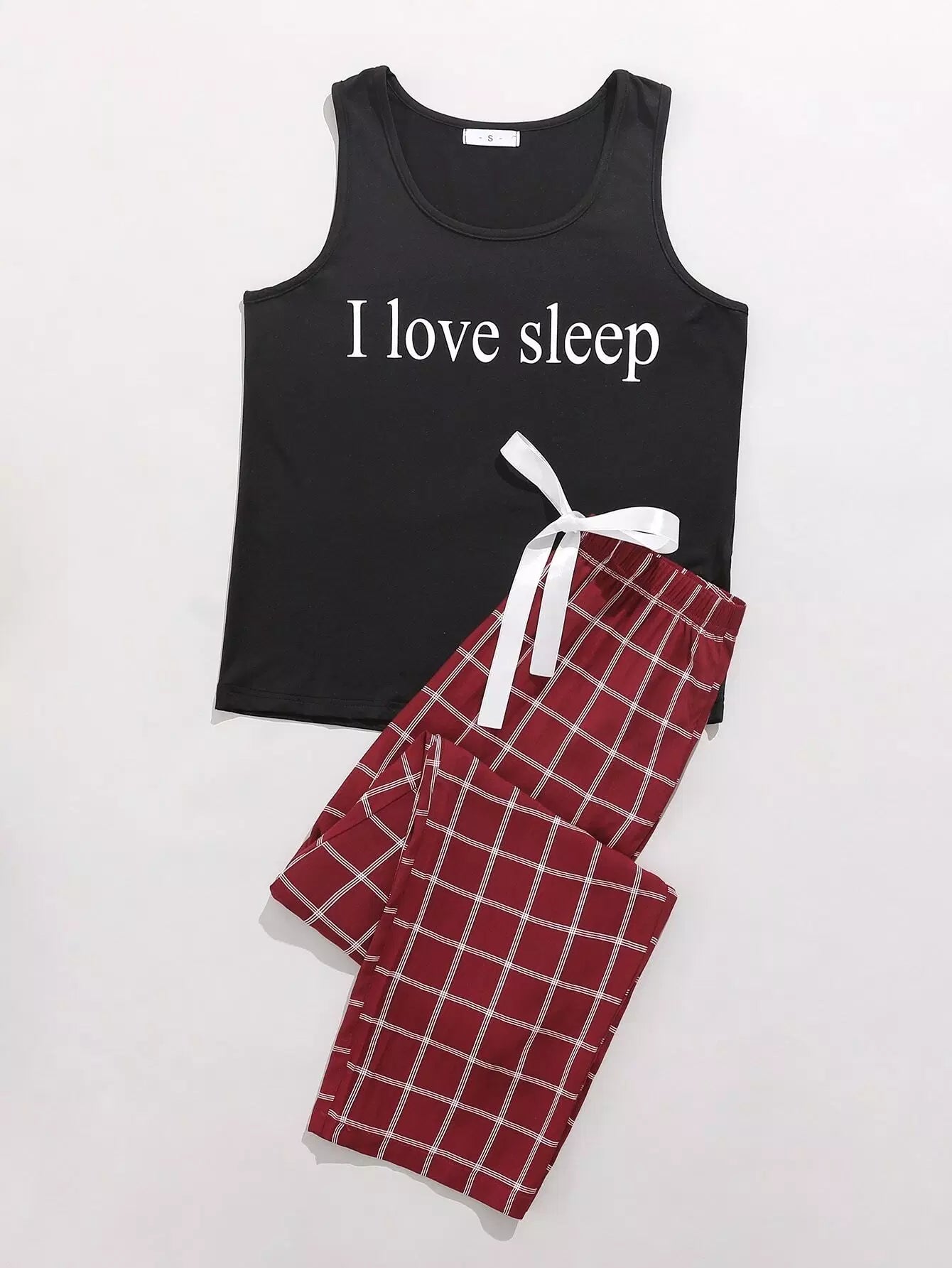 Slogan And Plaid Print PJ Set