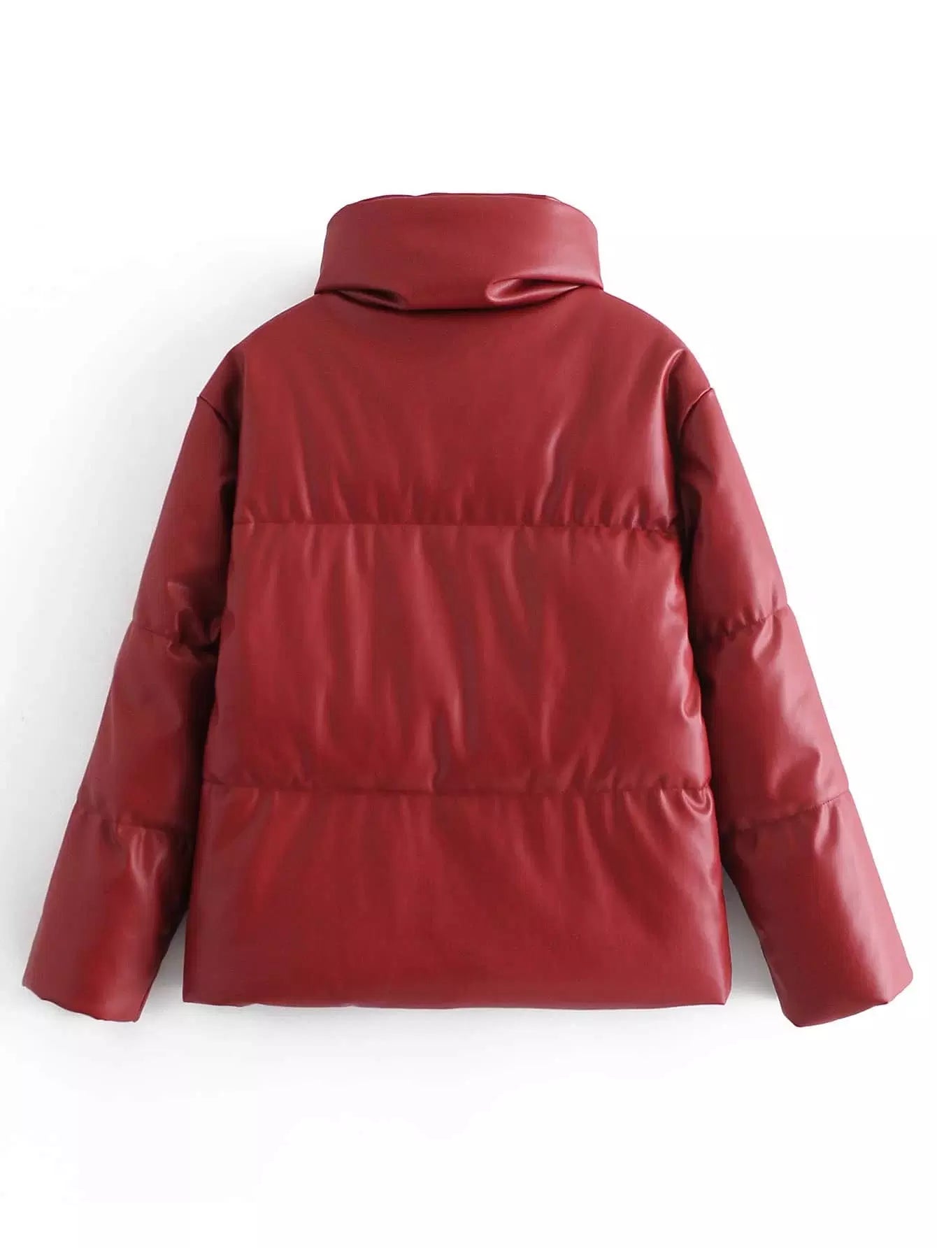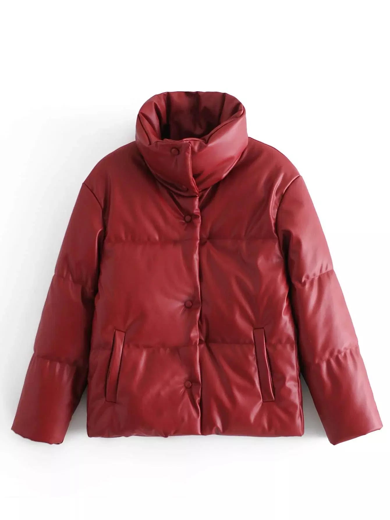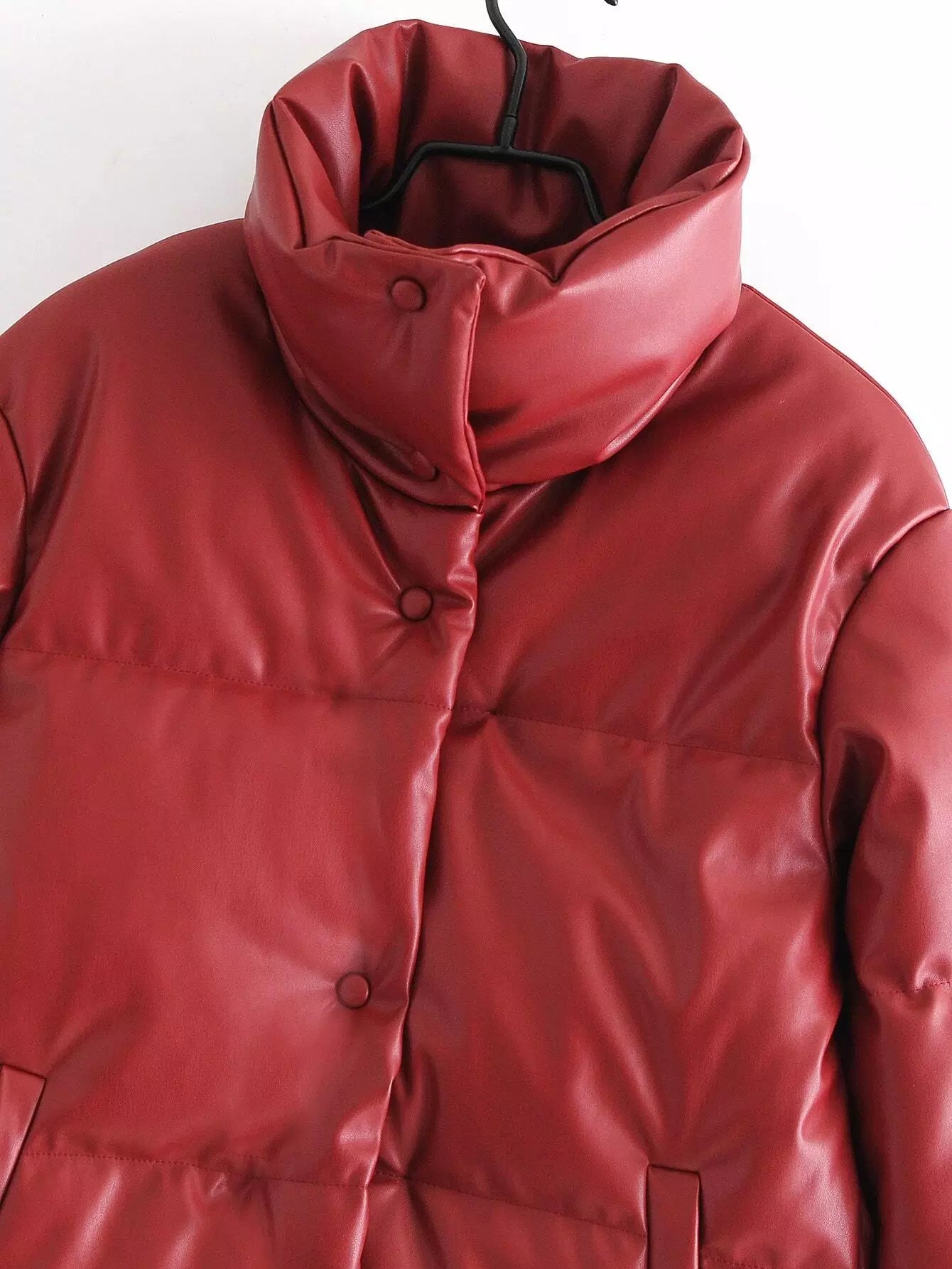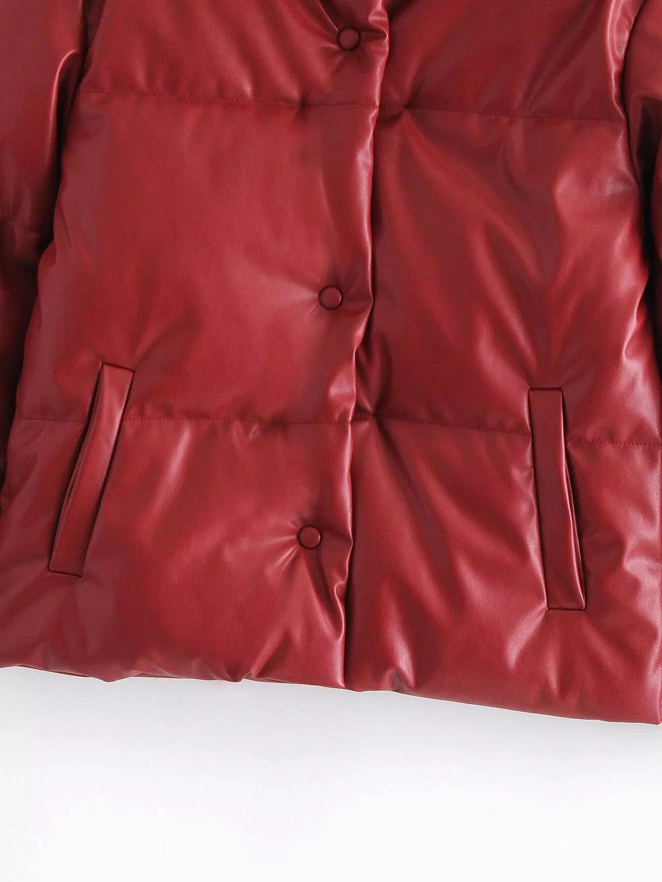 Button Up PU Leather Puffer Coat