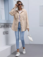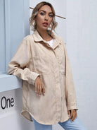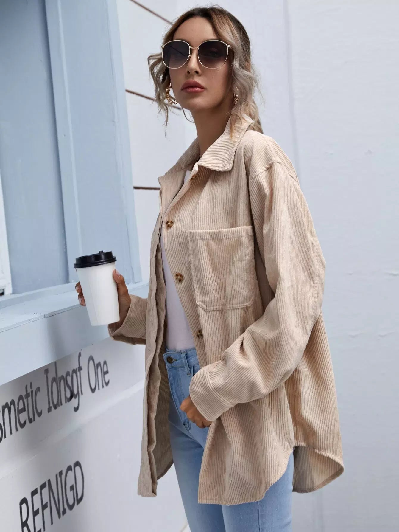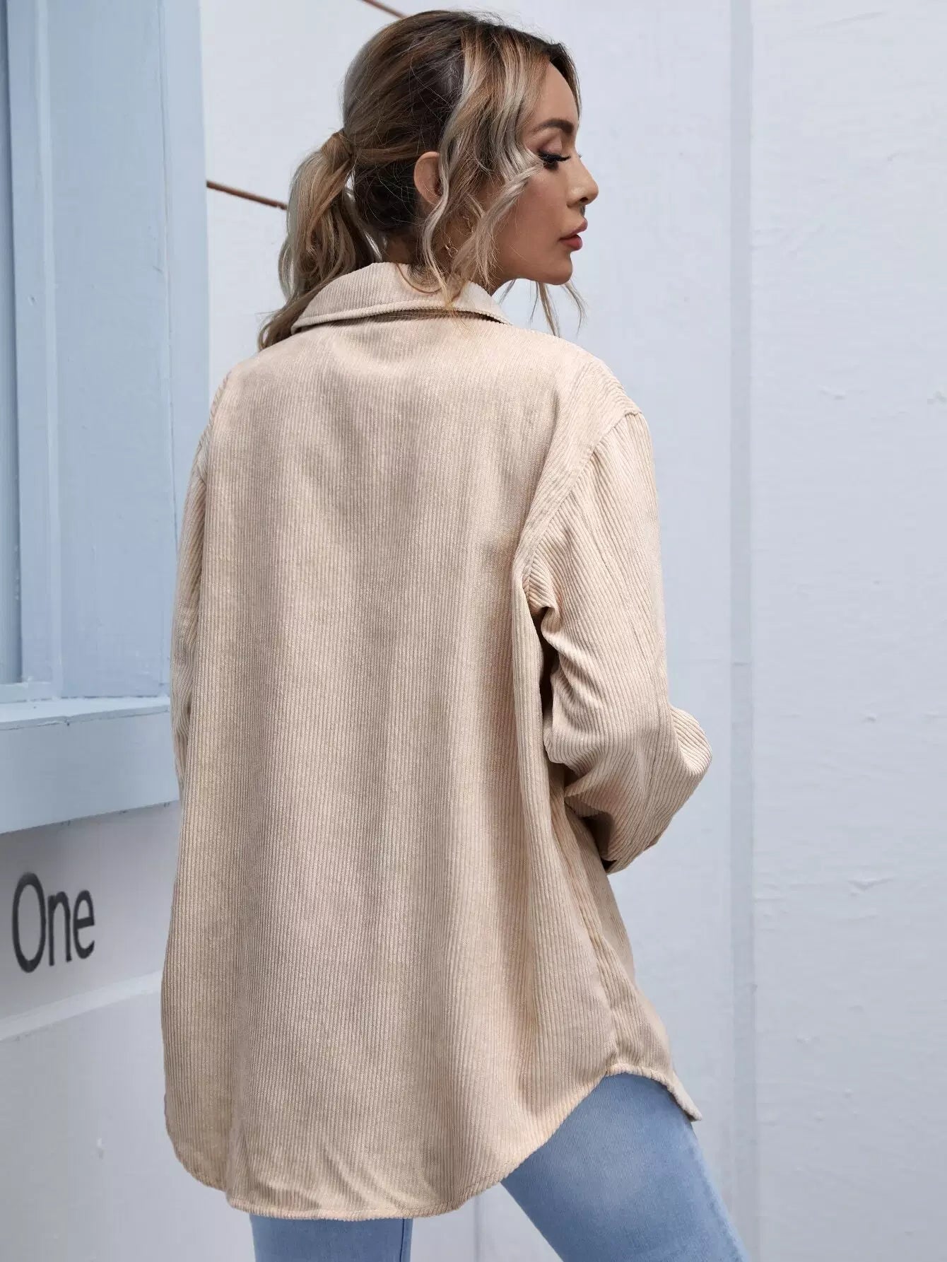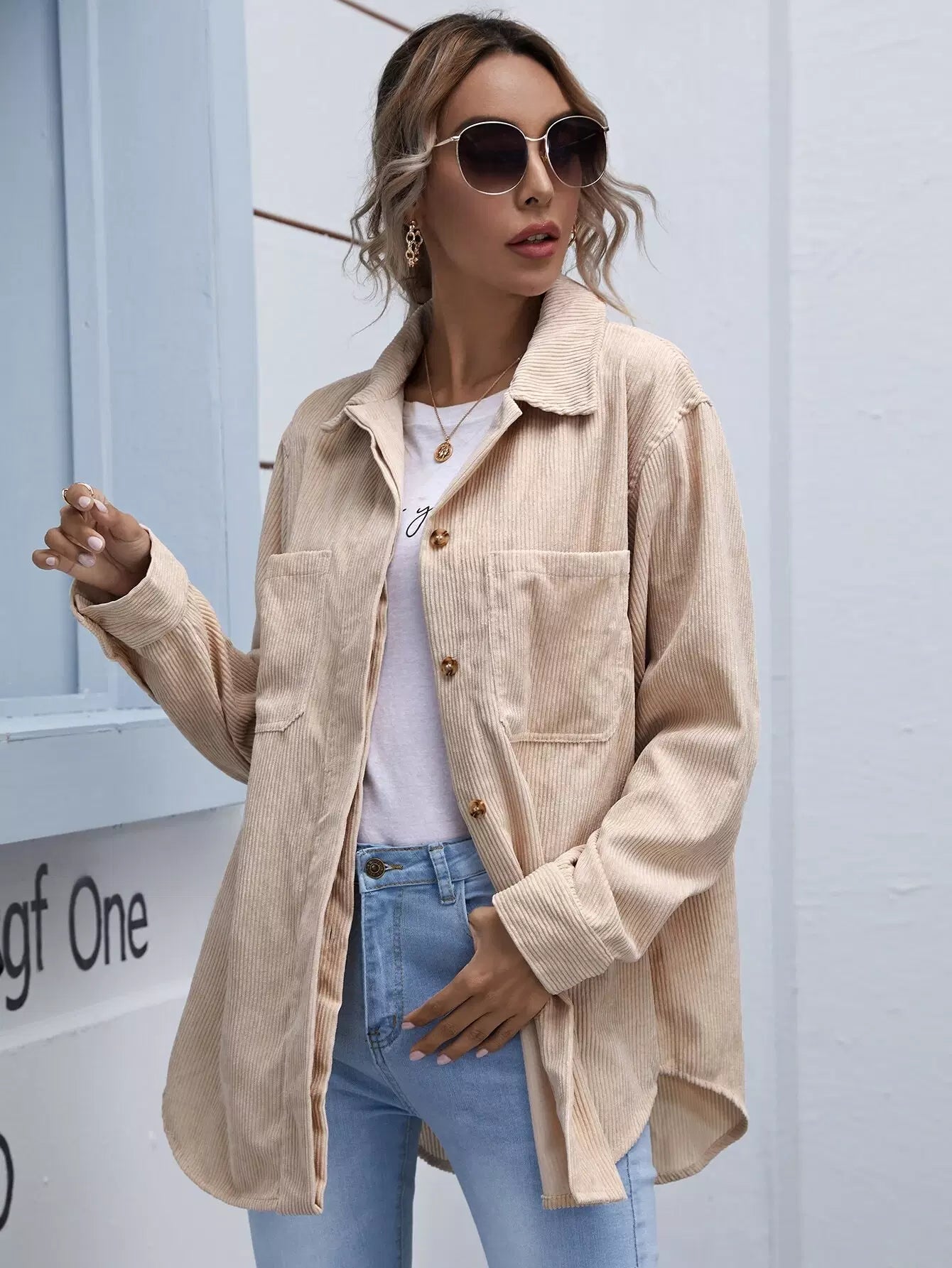 Women - Corduroy Button-Front Curved Hem Overshirt