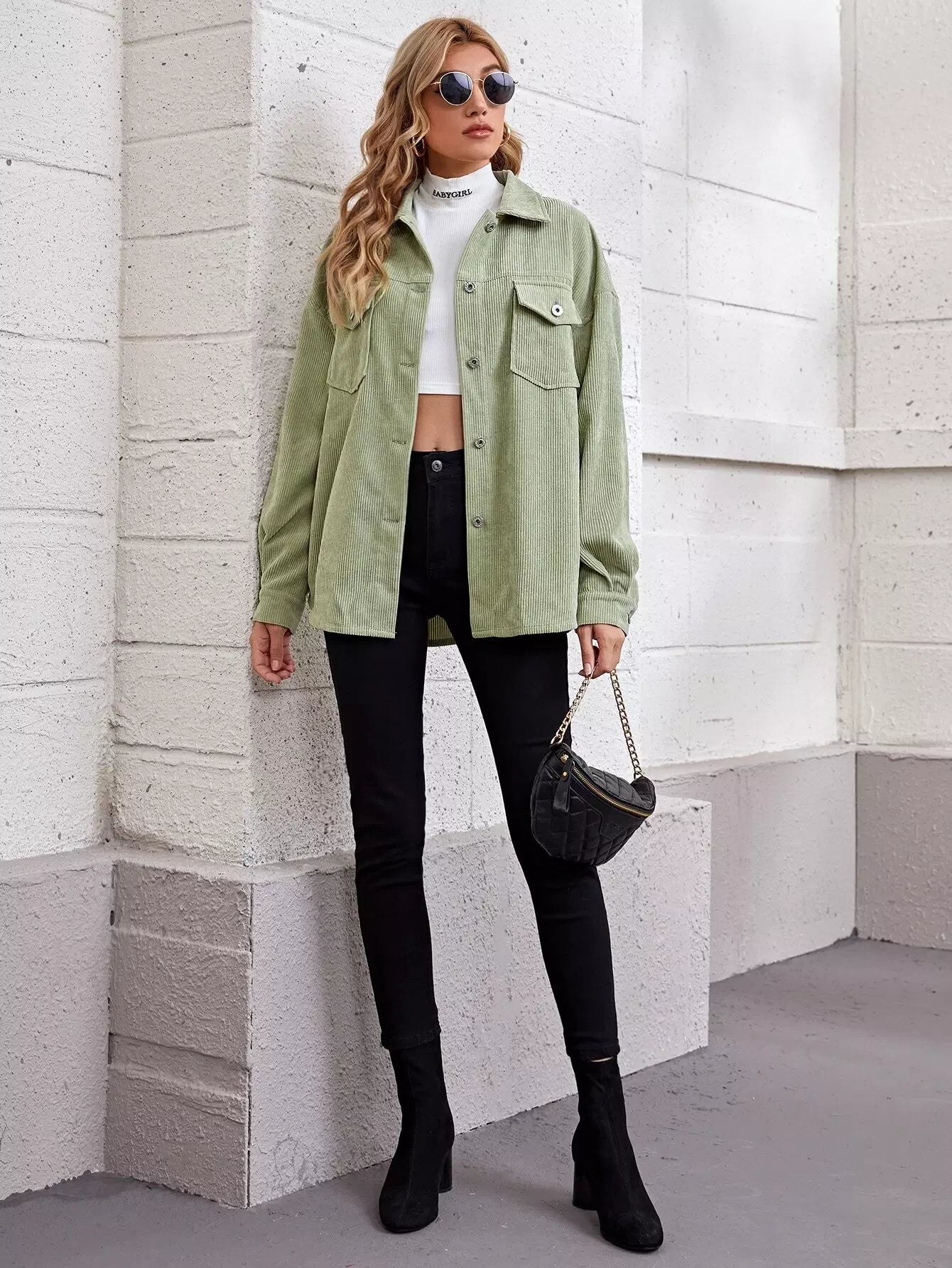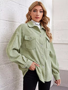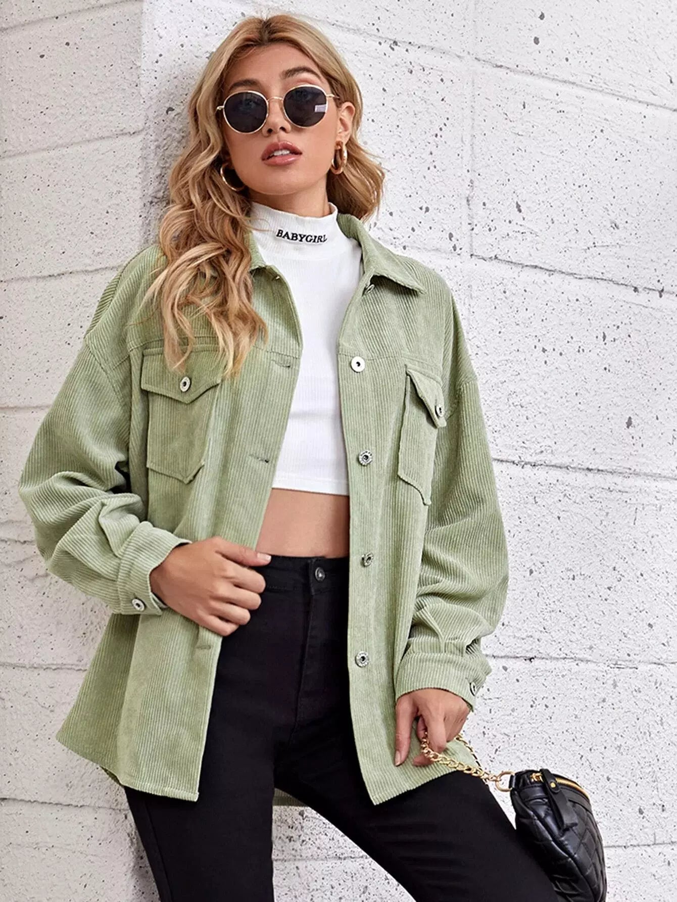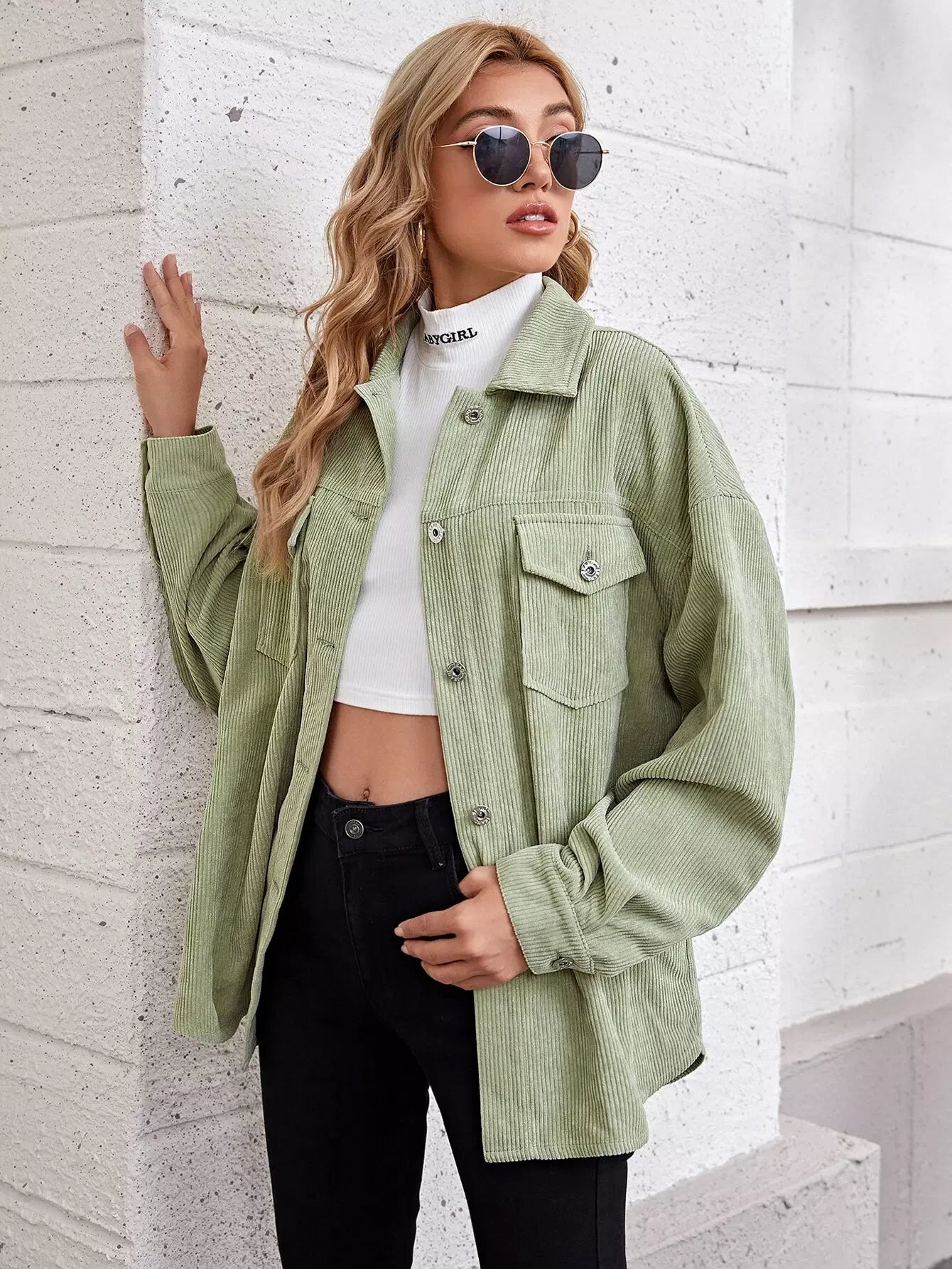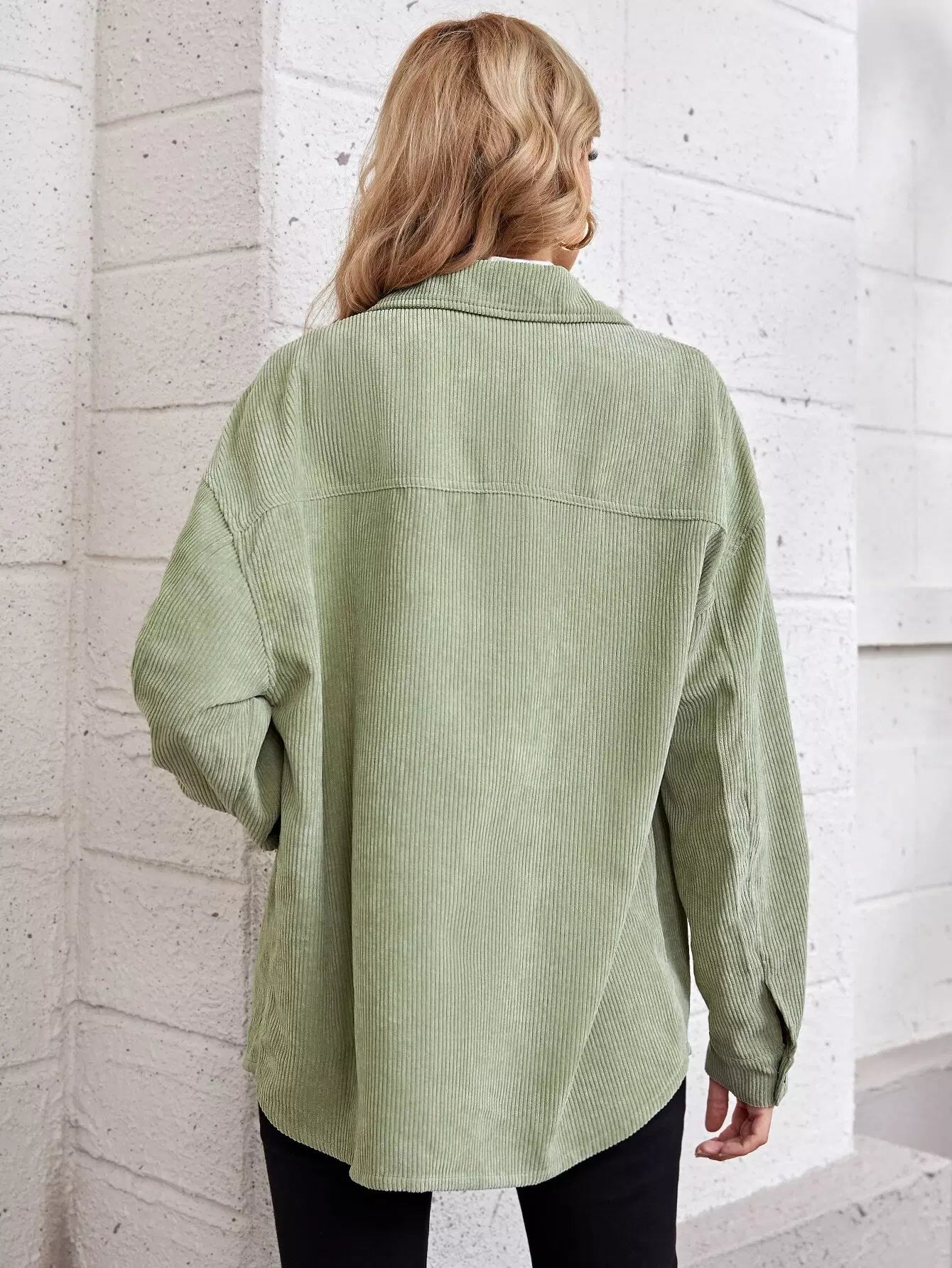 Women - Flap Pocket Drop Shoulder Curved Hem Cord Coat