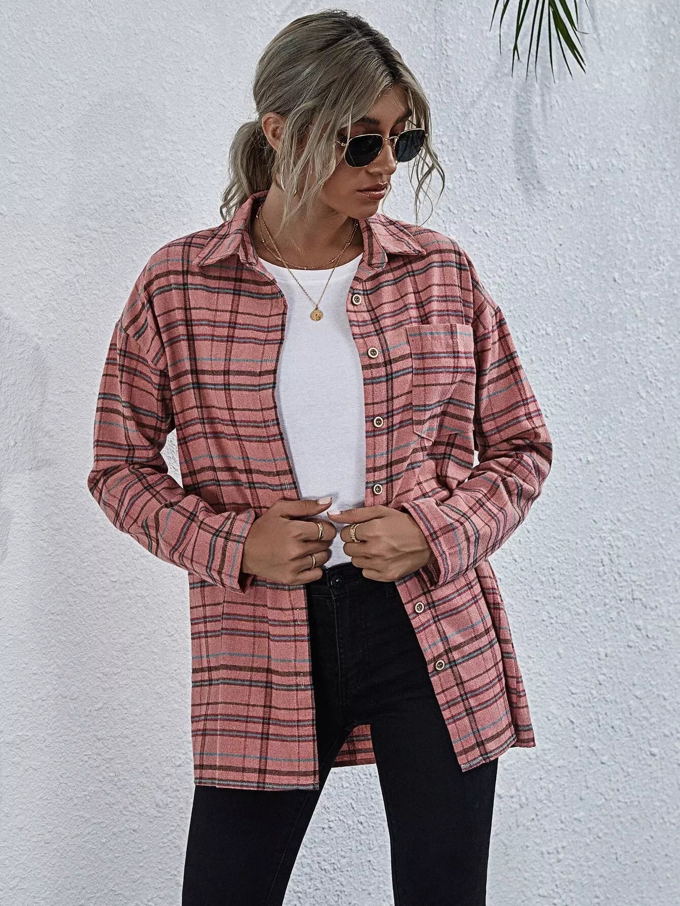 Plaid Drop Shoulder Pocket Overshirt