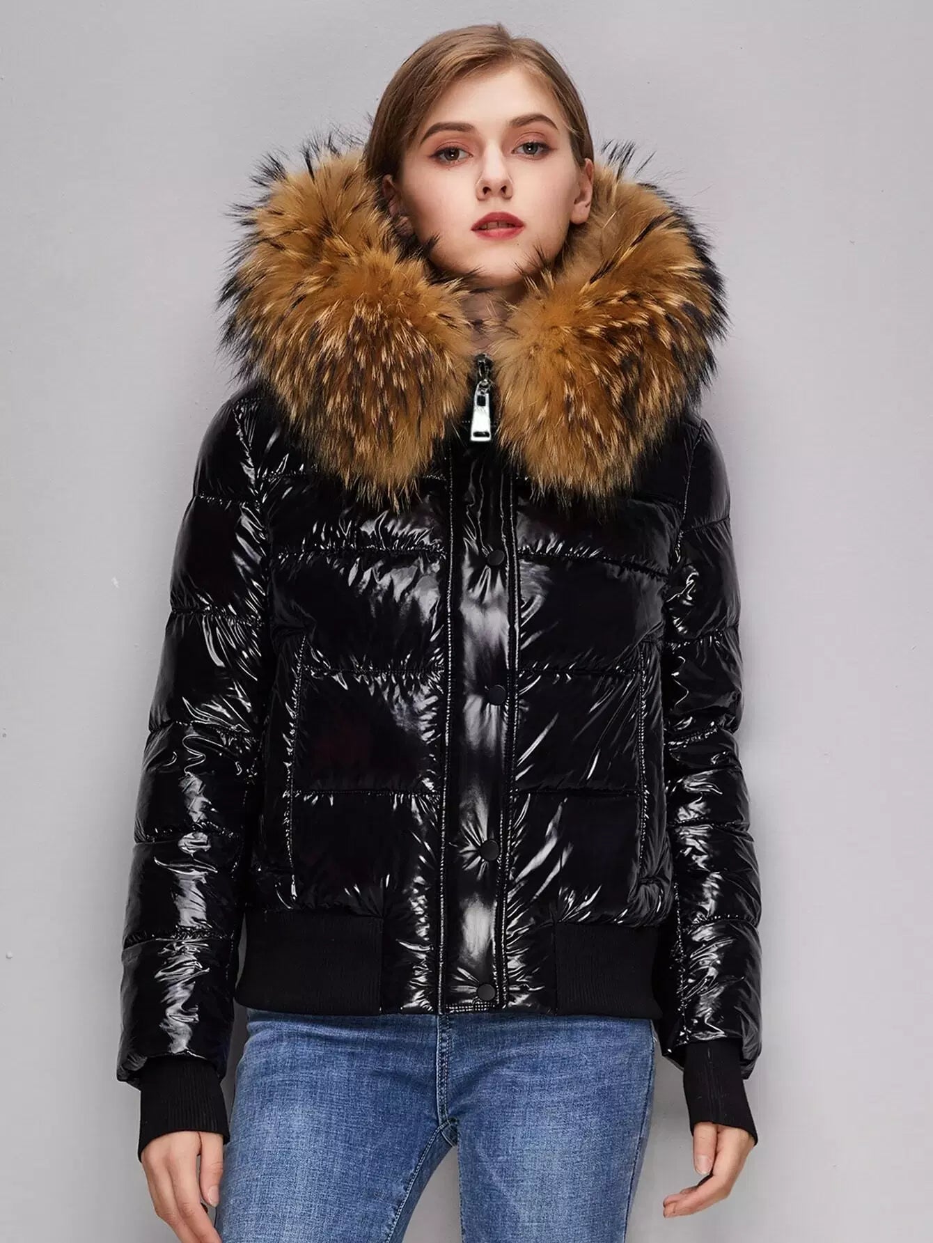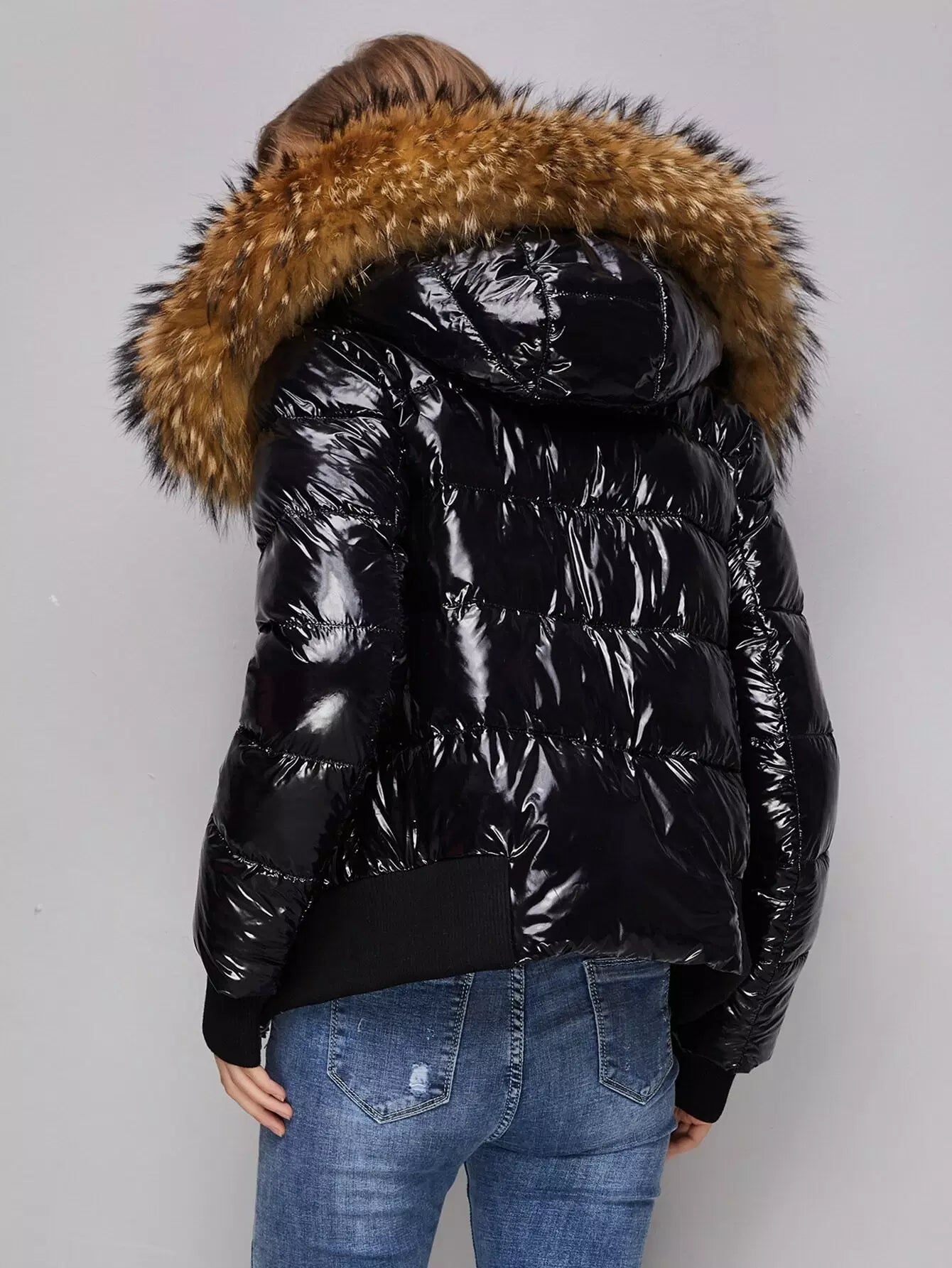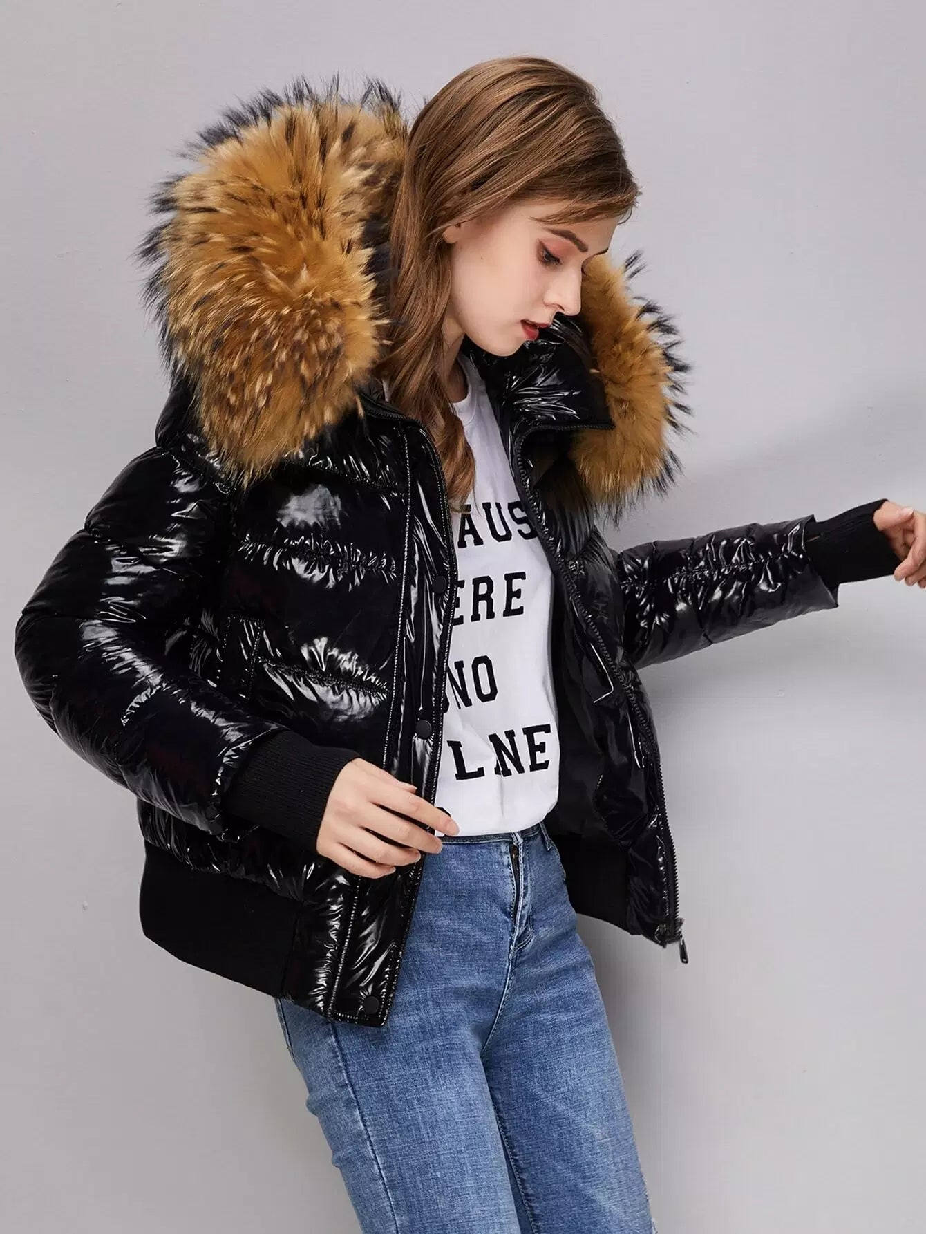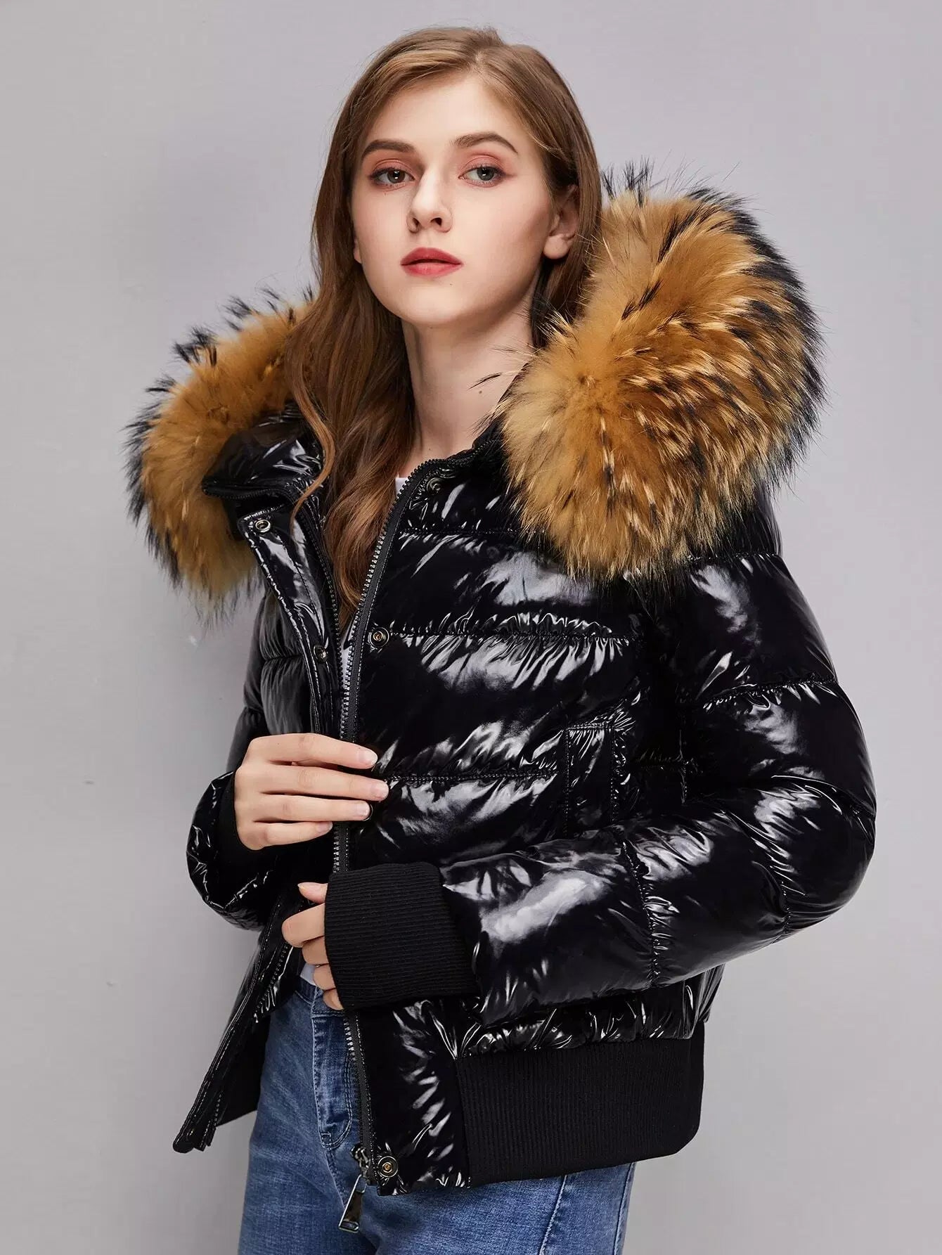 Wide Hem Slant Pocket Zipper Placket Puffer Jacket