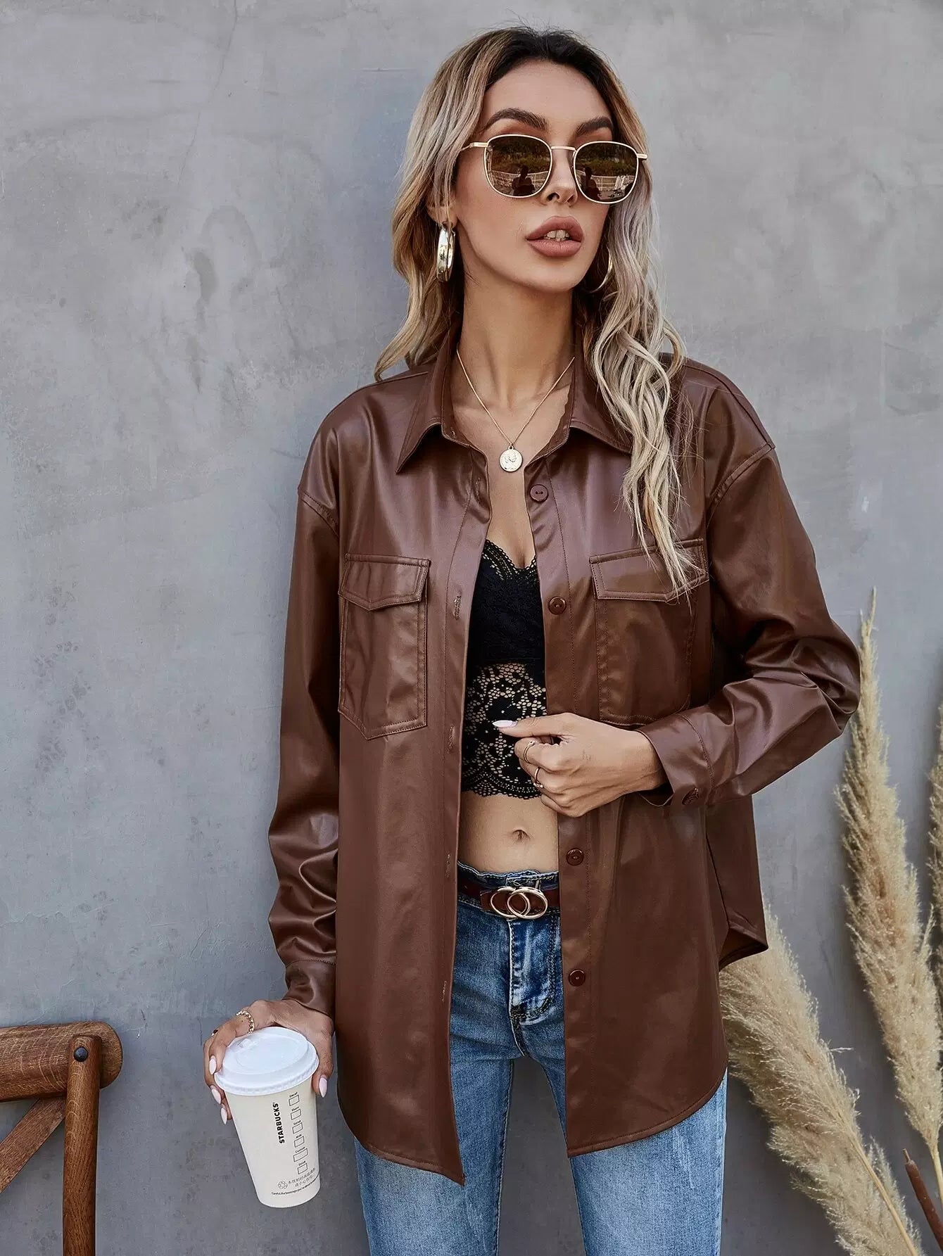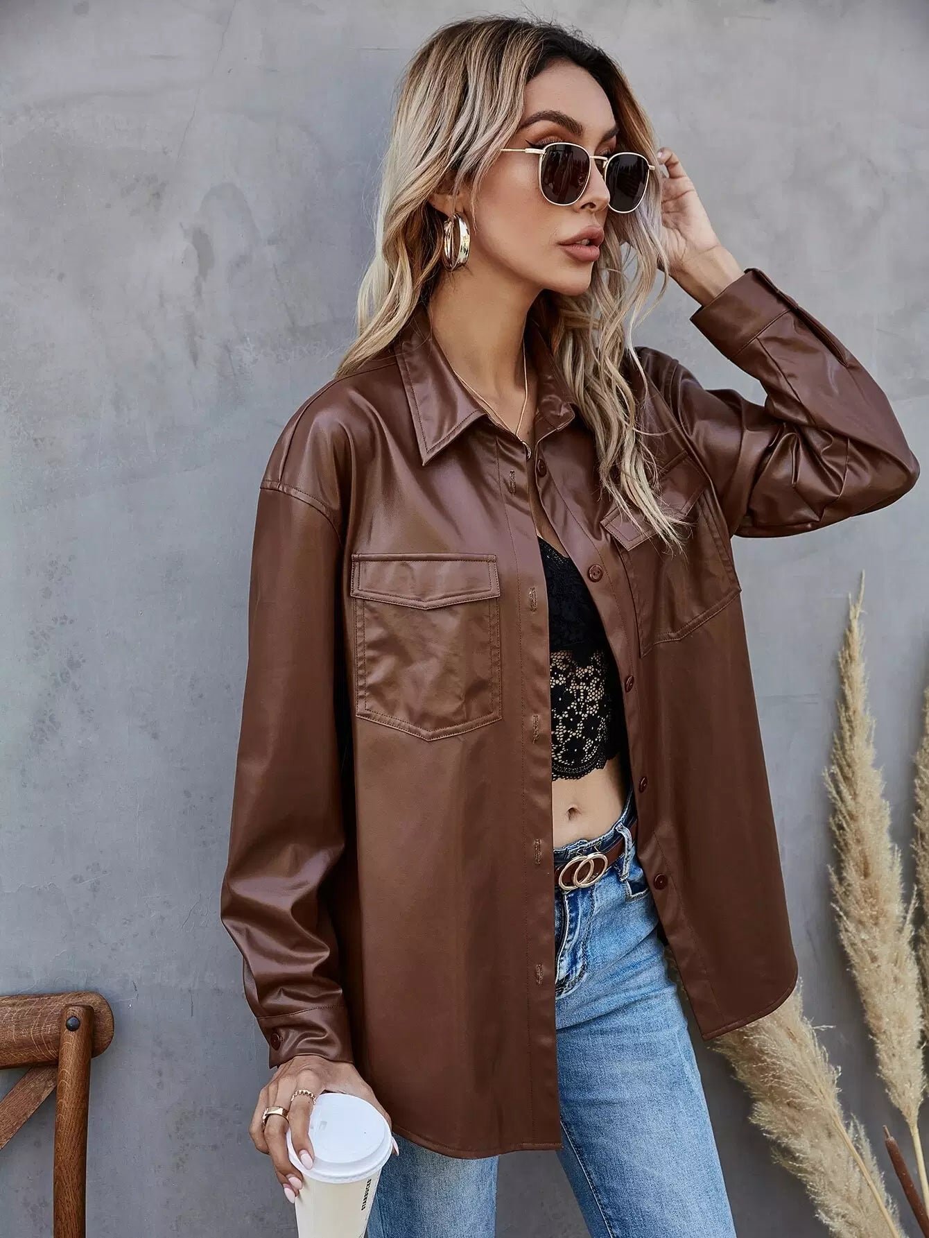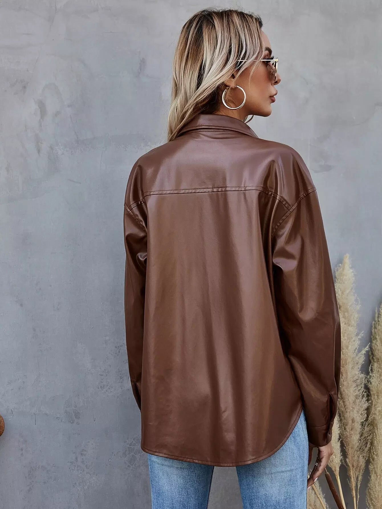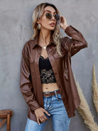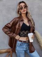 Button Up PU Leather Coat