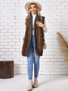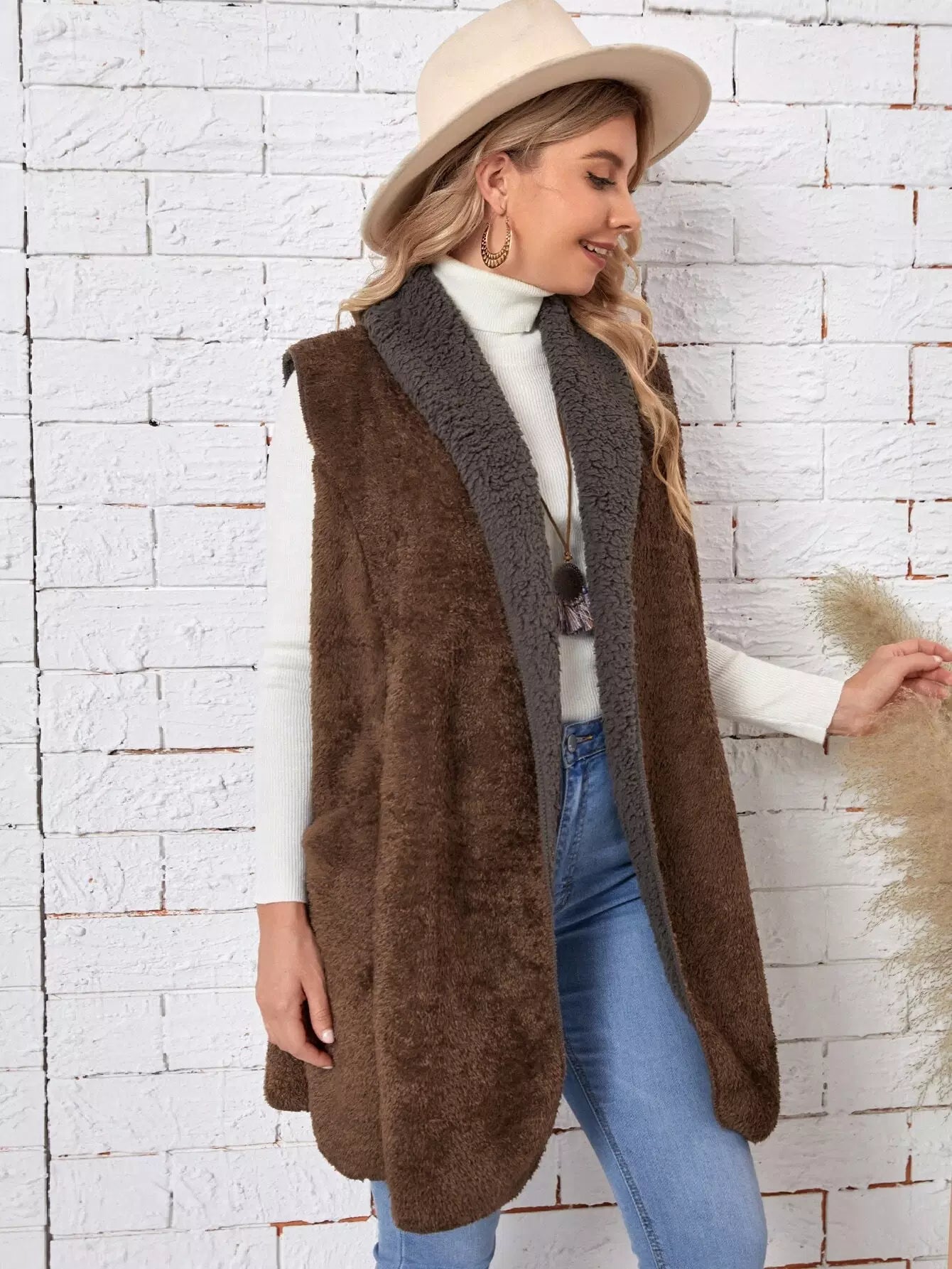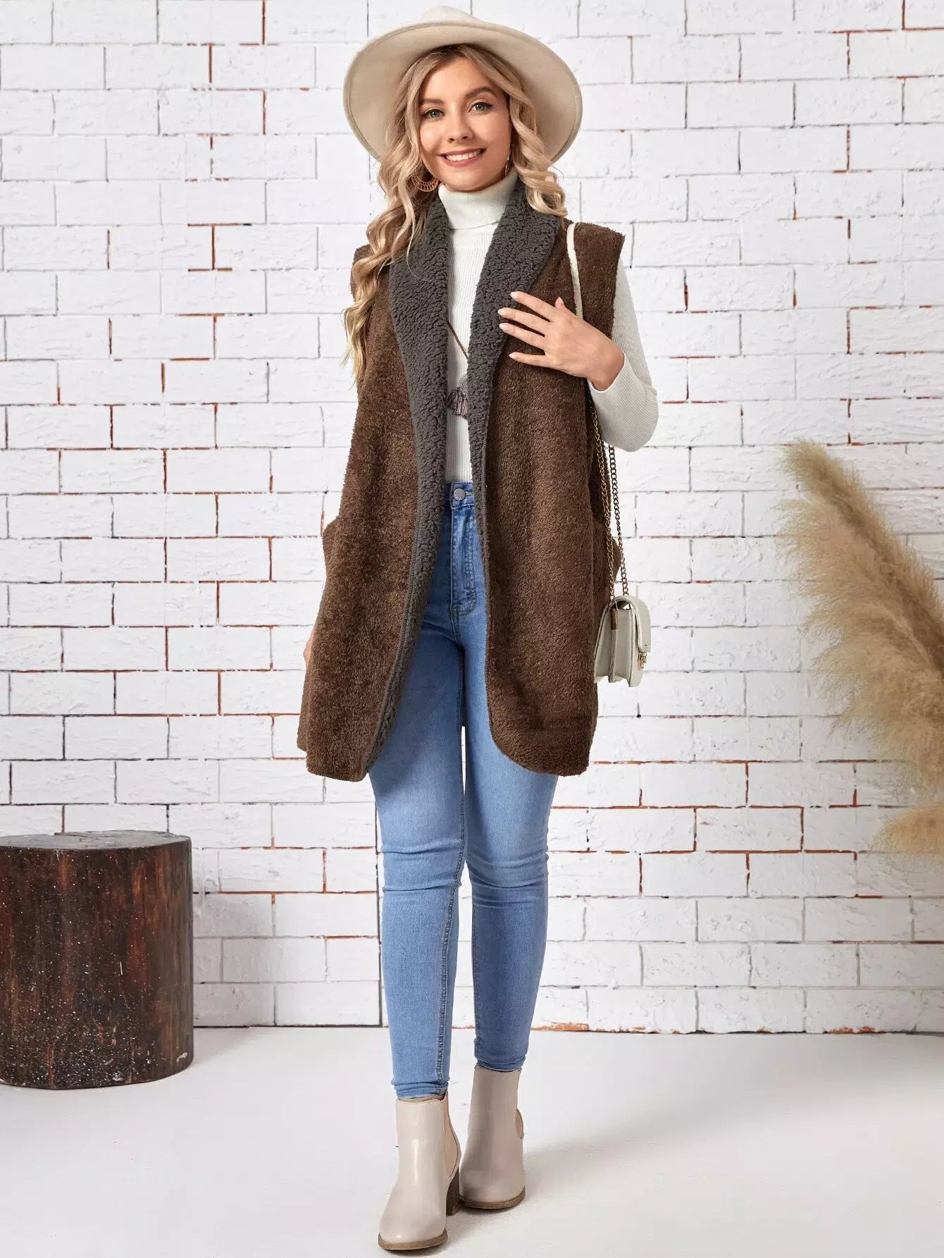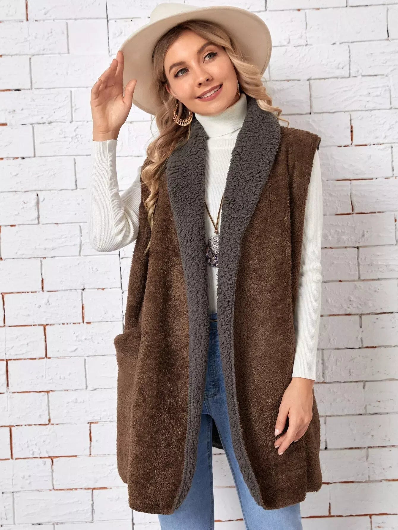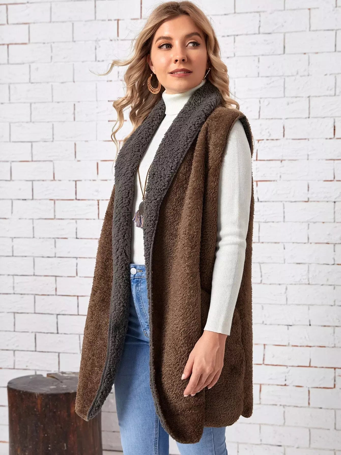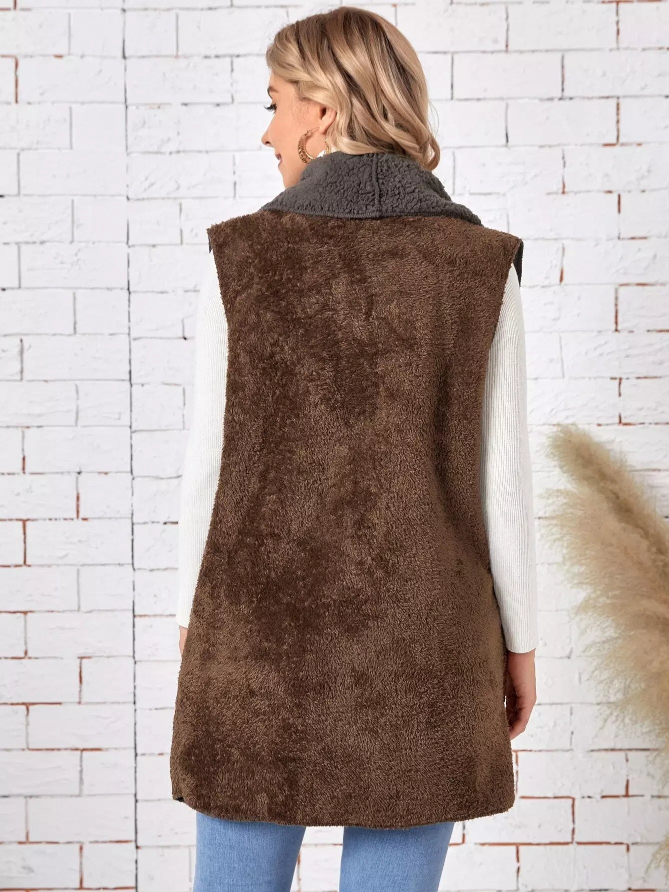 Contrast Panel Shawl Collar Teddy Vest Coat