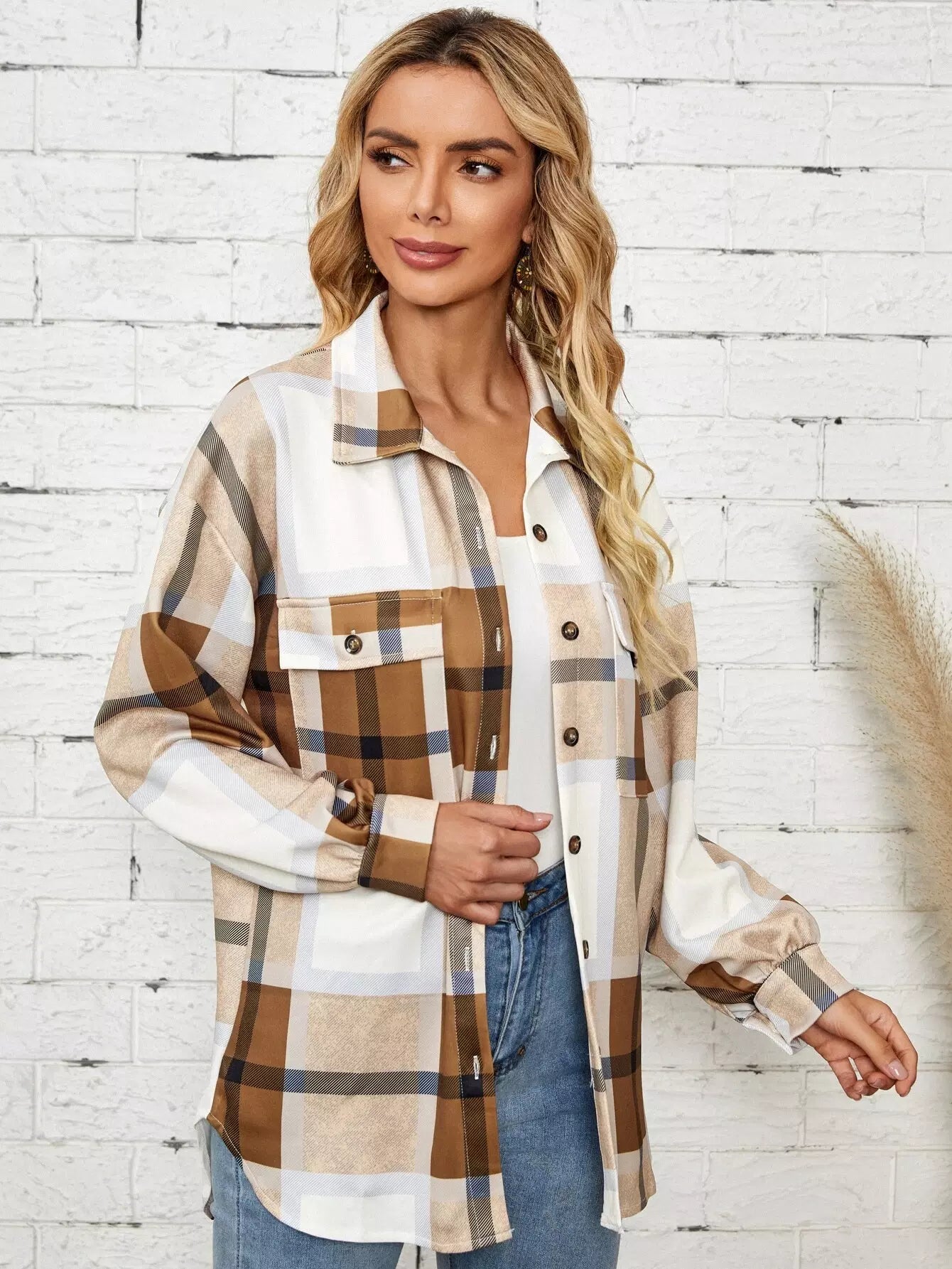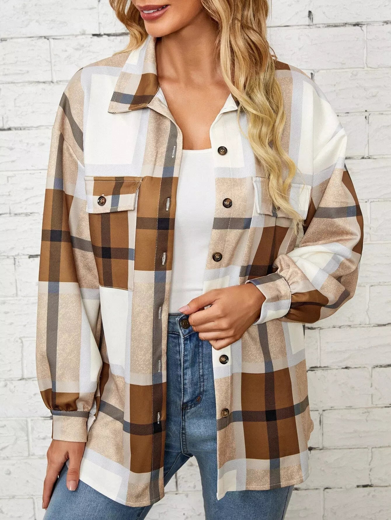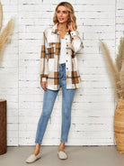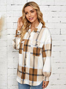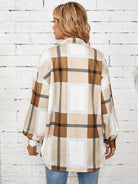 Drop Shoulder Flap Pocket Plaid Coat