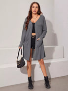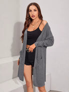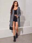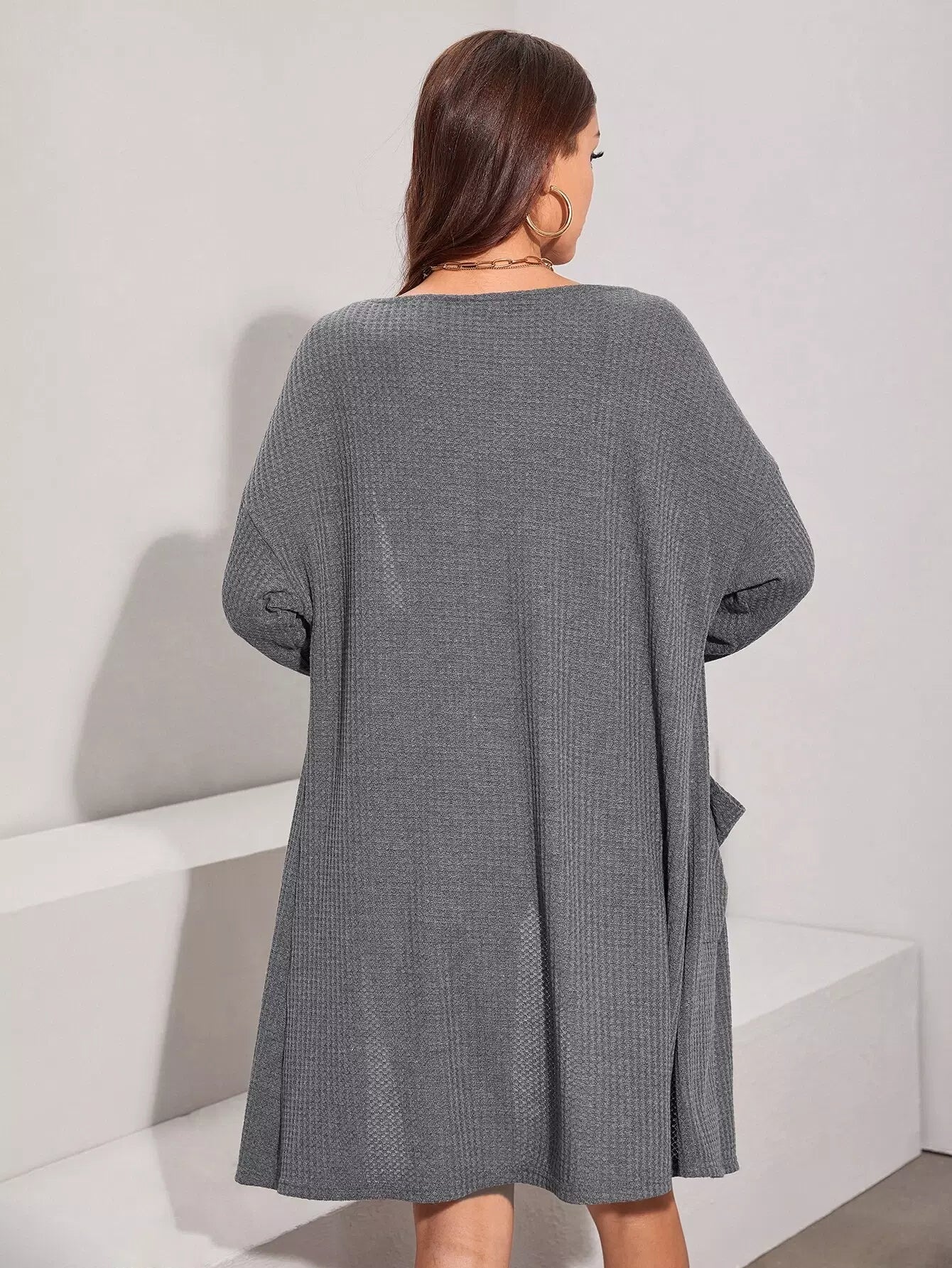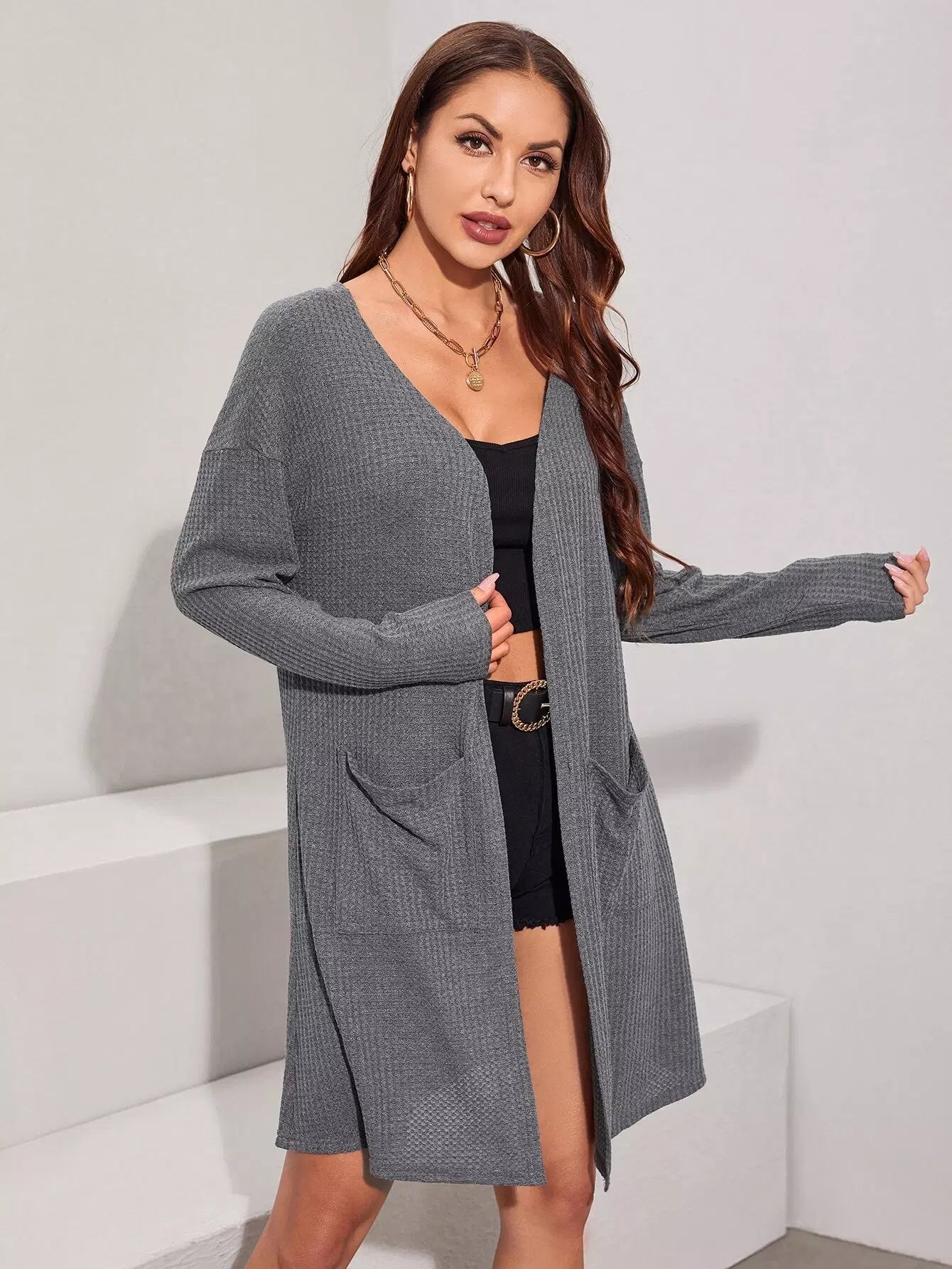 Drop Shoulder Patch Pocket Waffle Knit Coat
