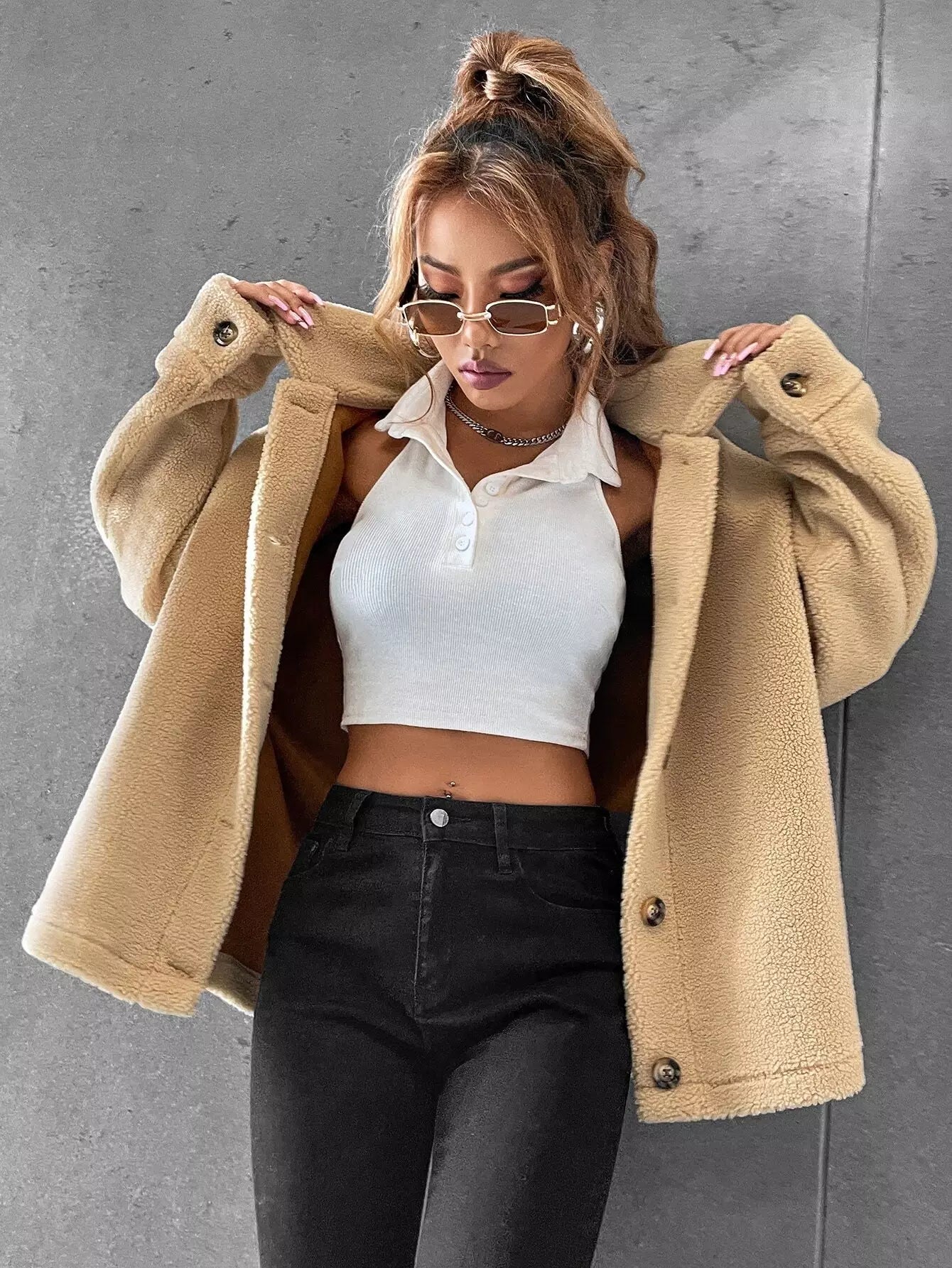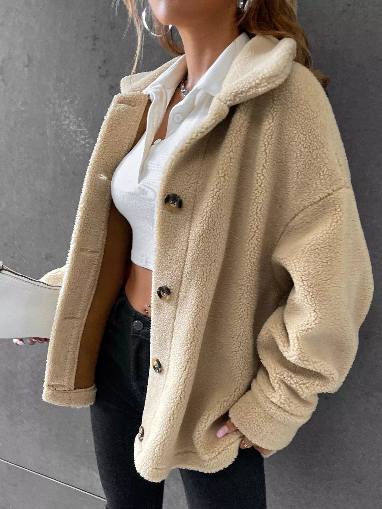 Drop Shoulder Teddy Coat