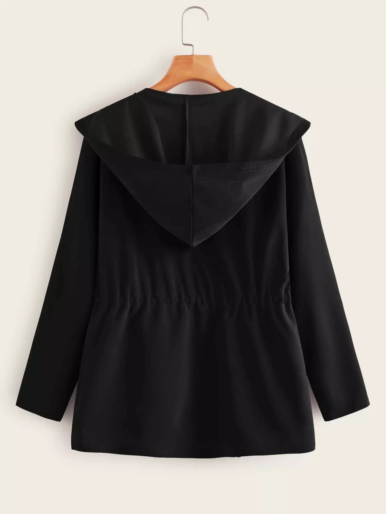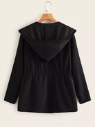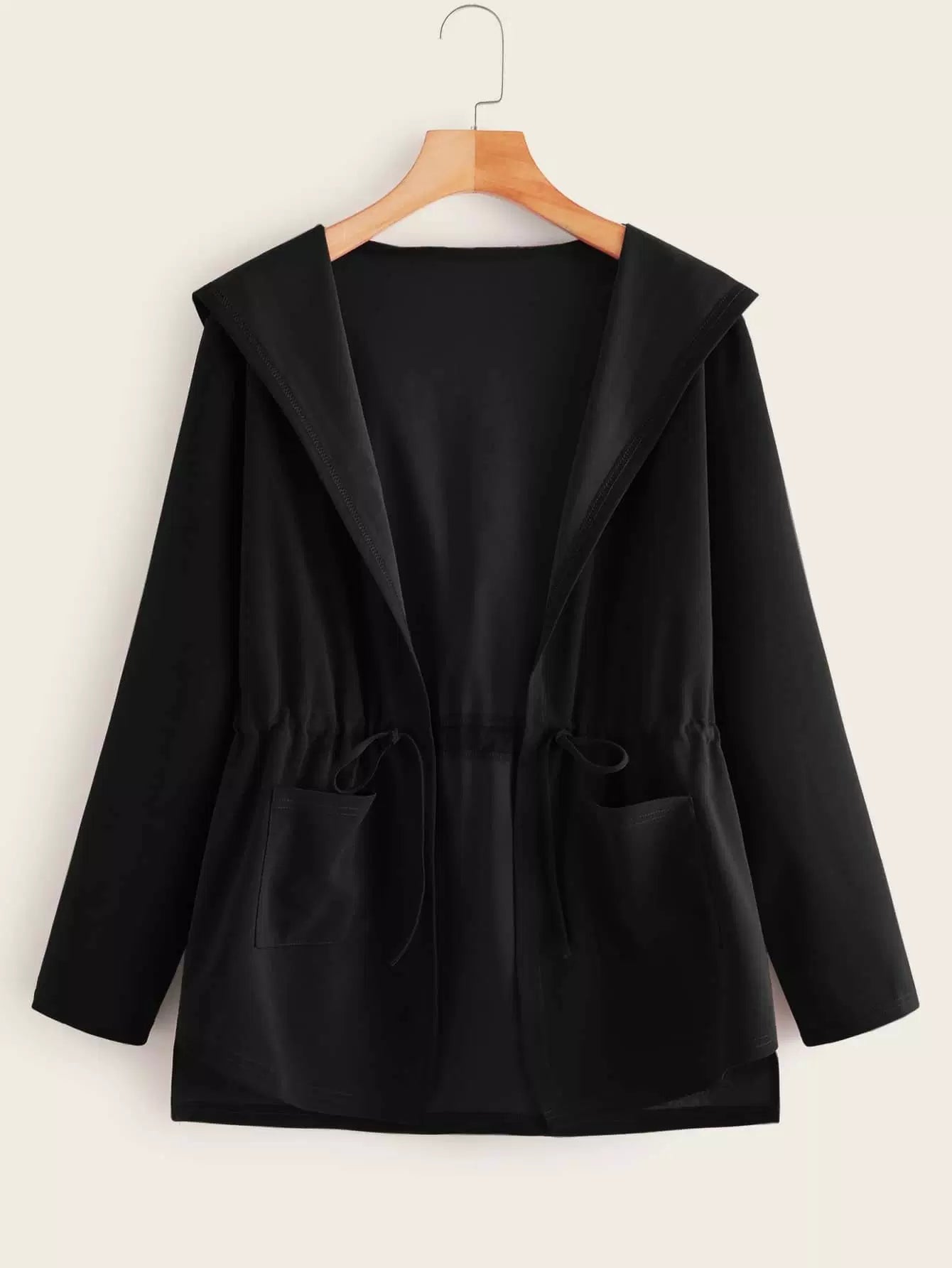 Women - Dual Pocket Drawstring Waist Hooded Coat
