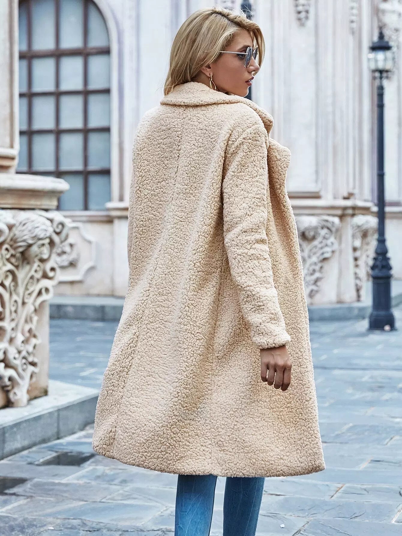 Women - Faux Shearling Open-Front Longline Teddy Coat