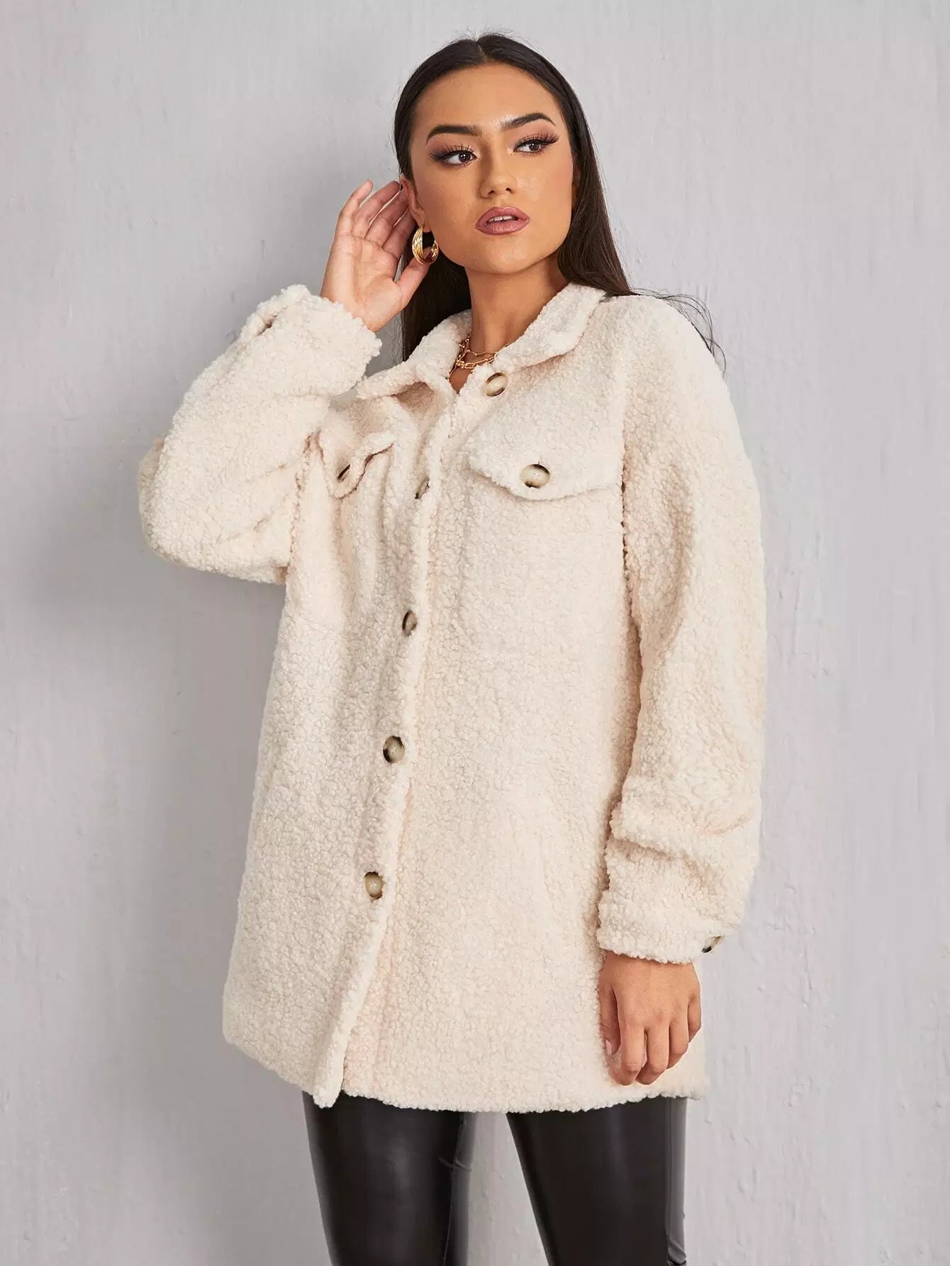 Flap Pocket Drop Shoulder Coat