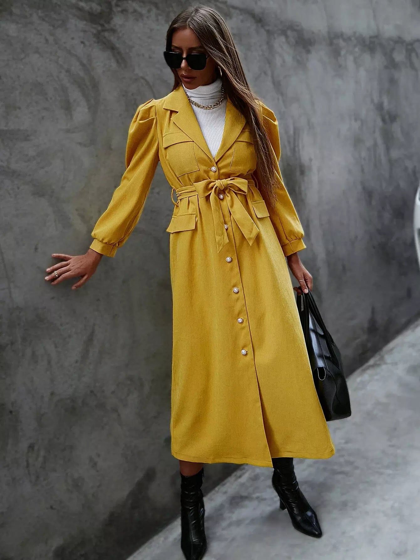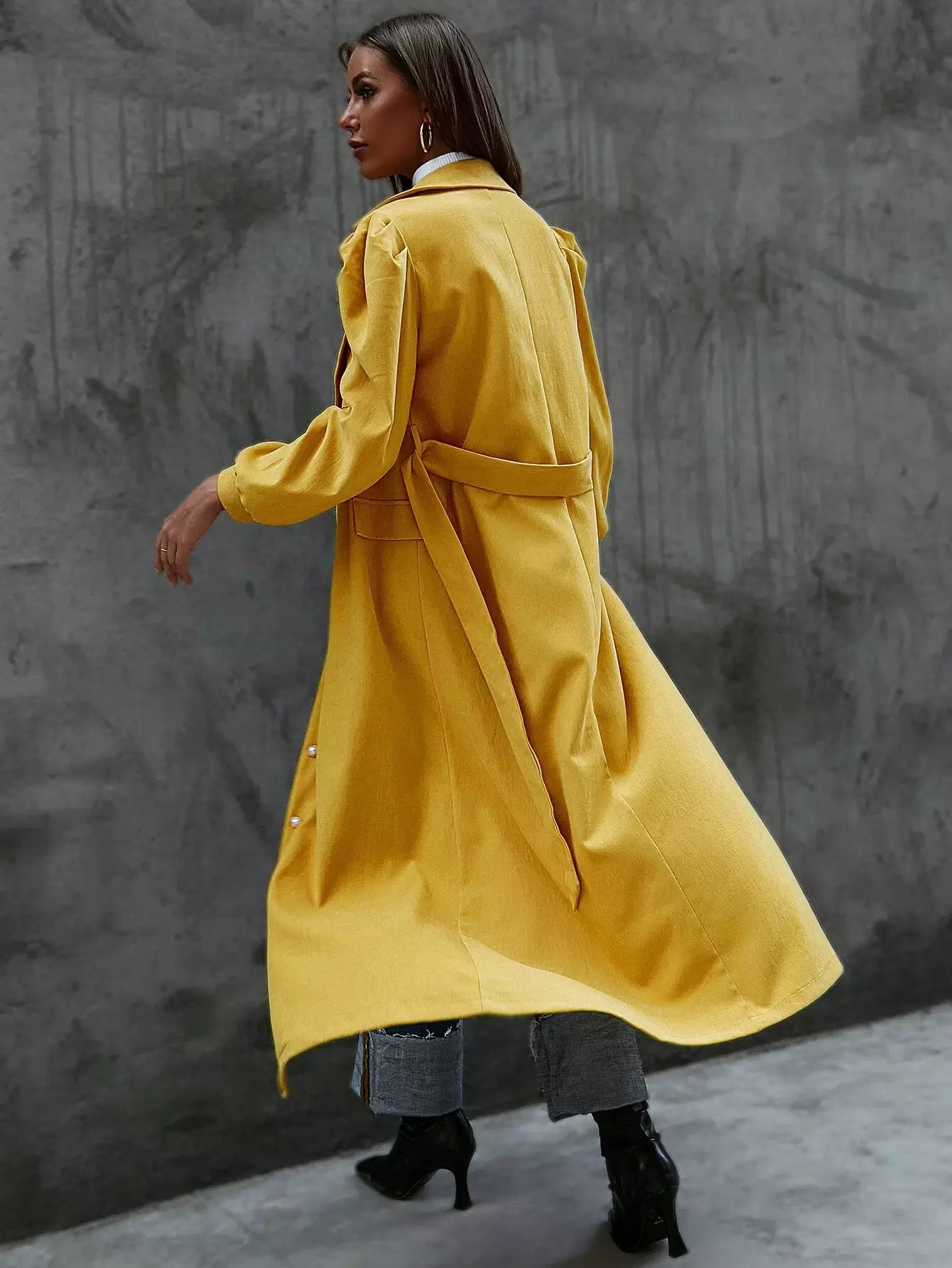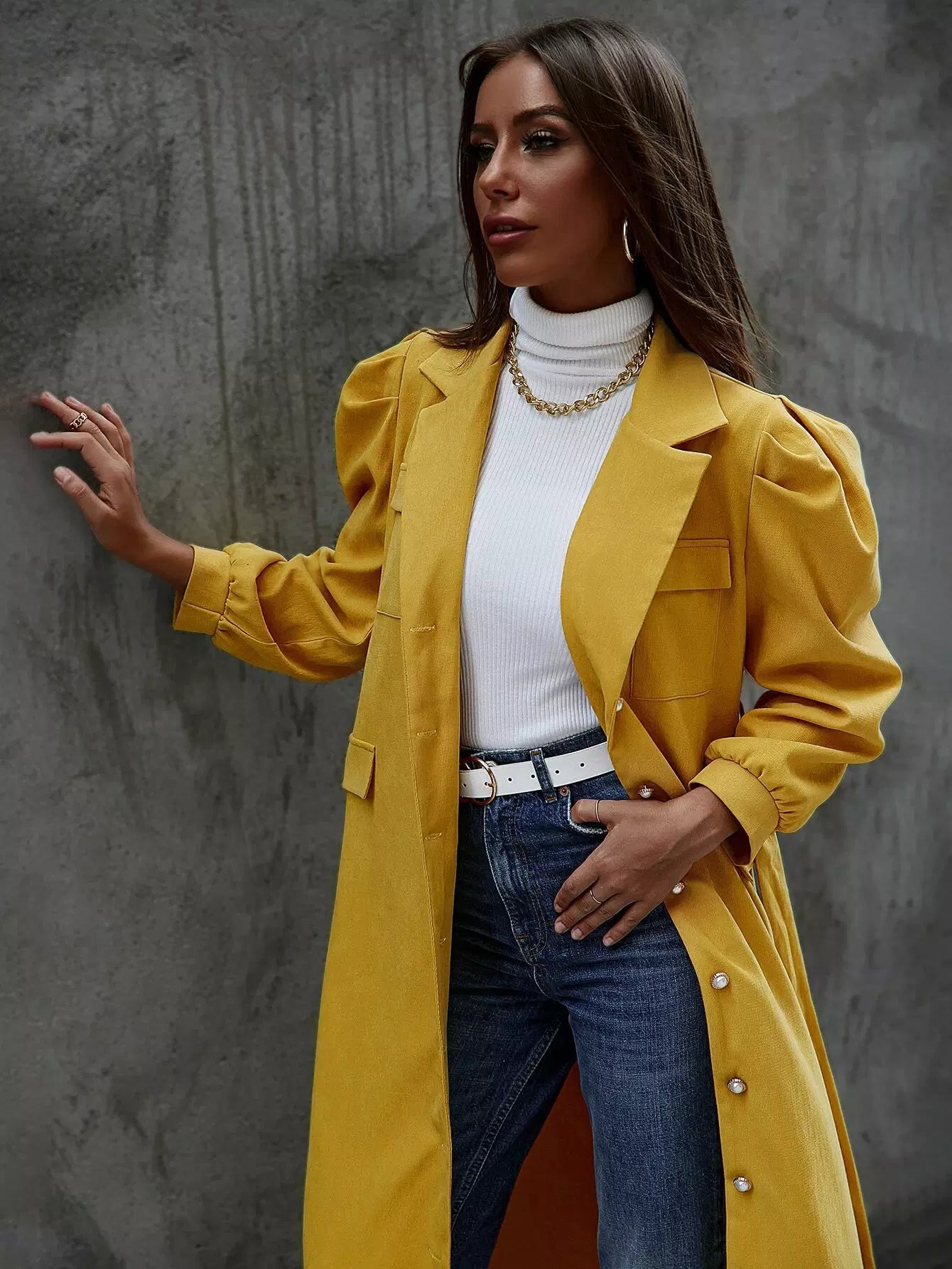 Flap Pocket Puff Sleeve Lapel Neck Coat Without Belt