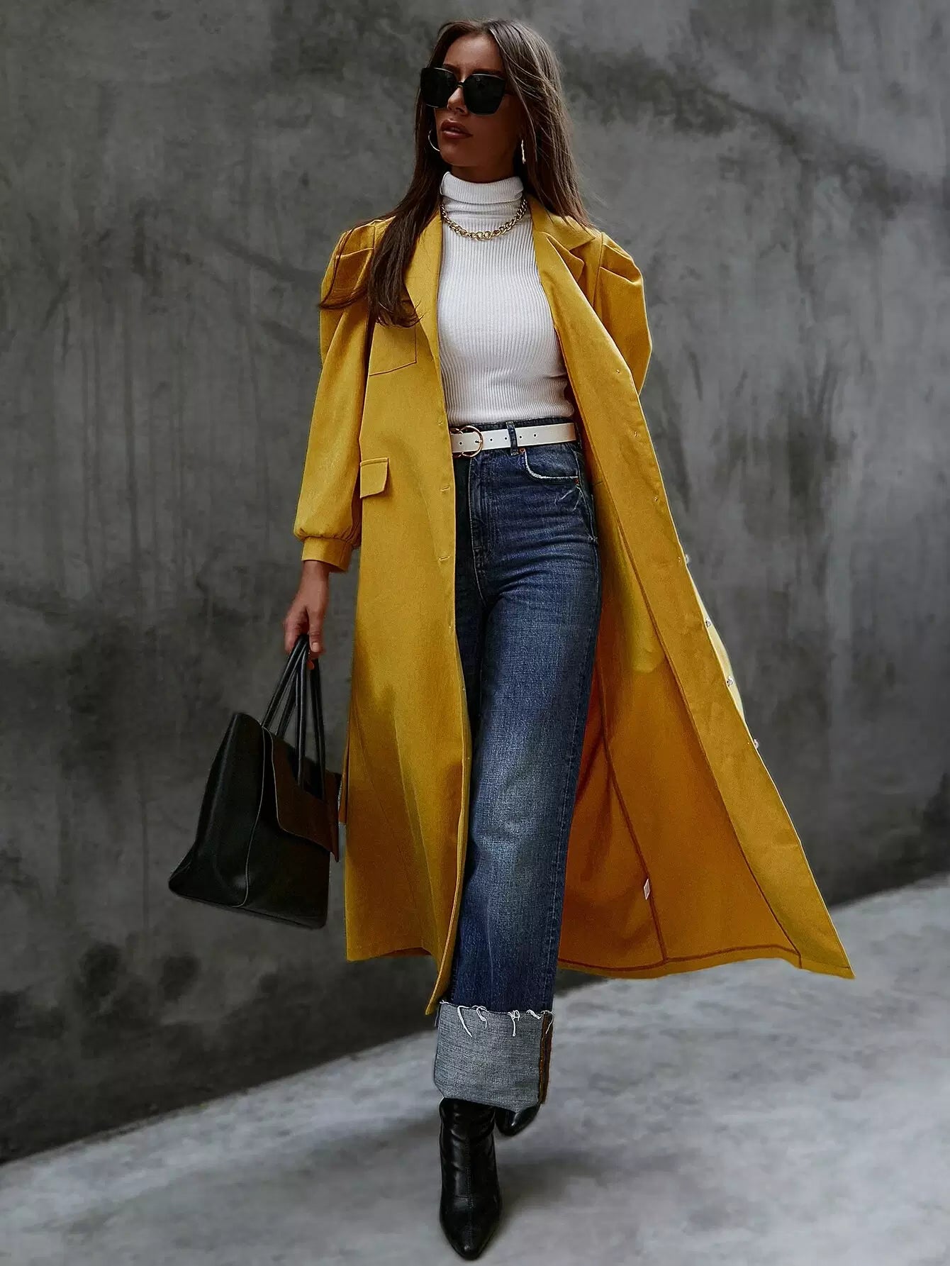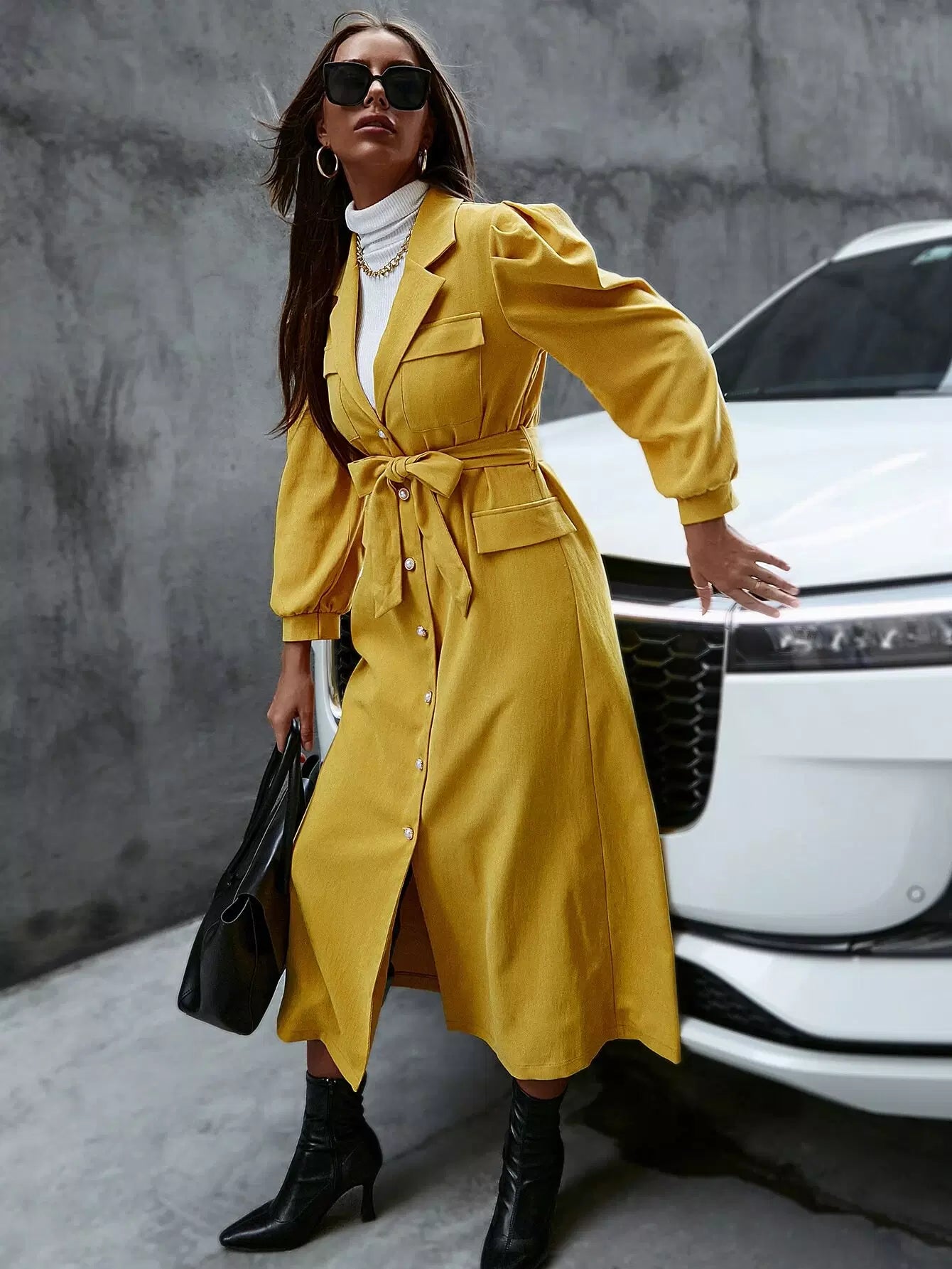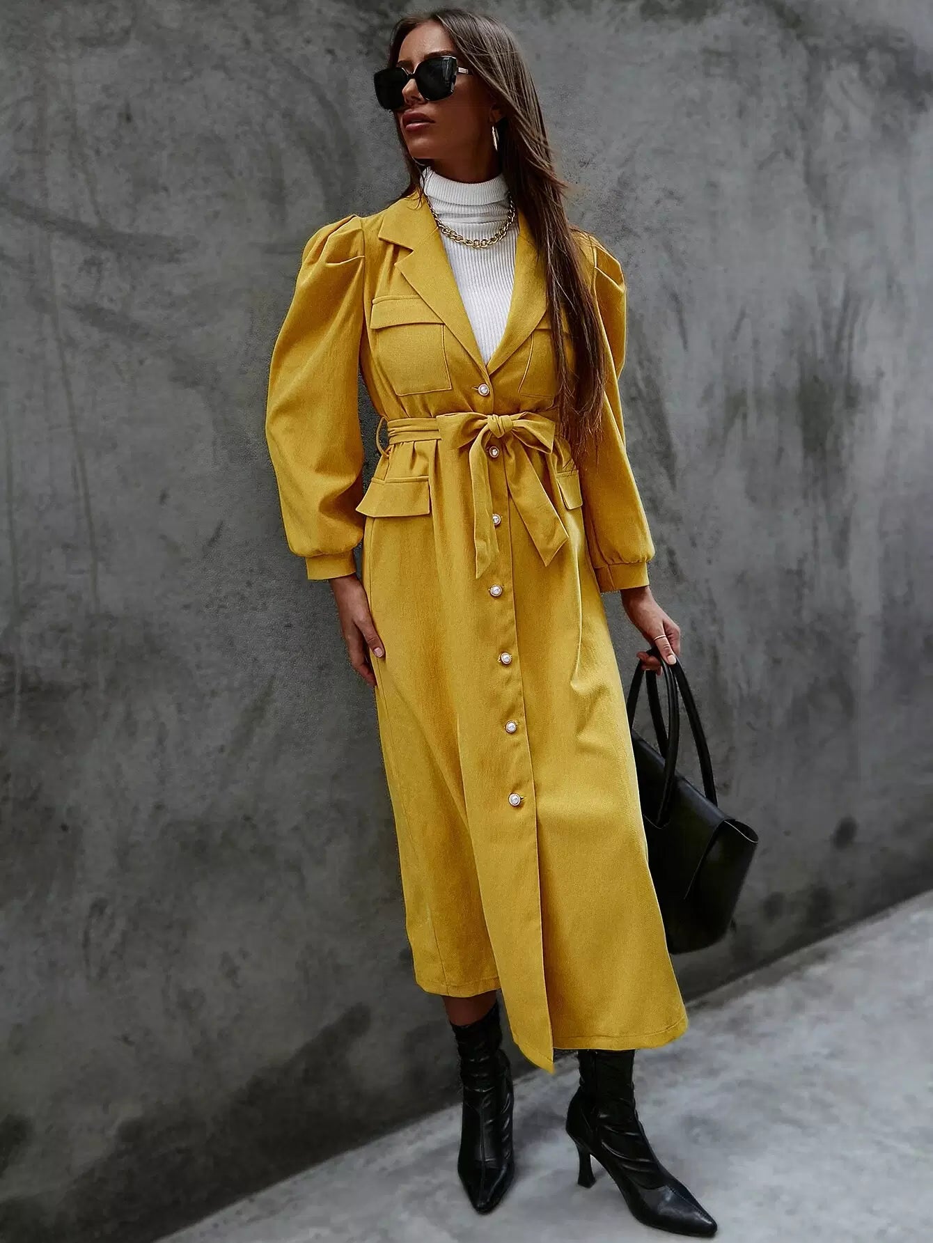 Flap Pocket Puff Sleeve Lapel Neck Coat Without Belt