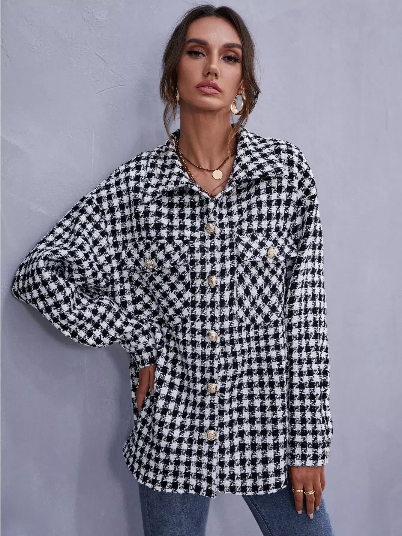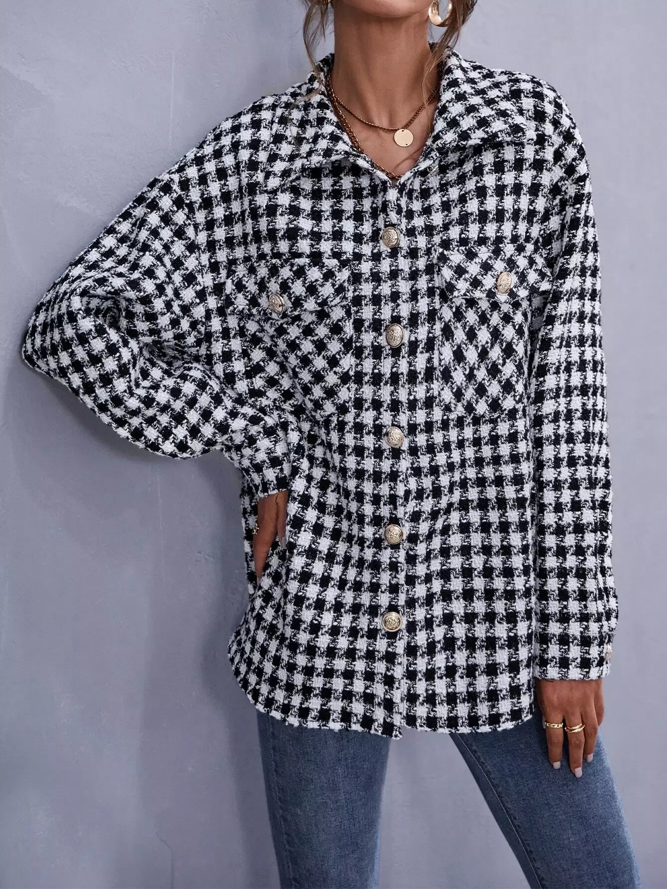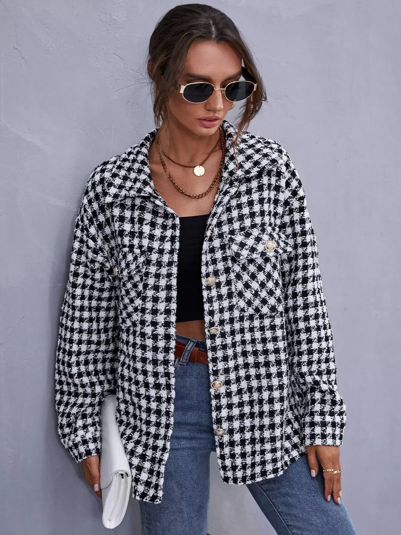 Houndstooth Flap Pocket Drop Shoulder Coat