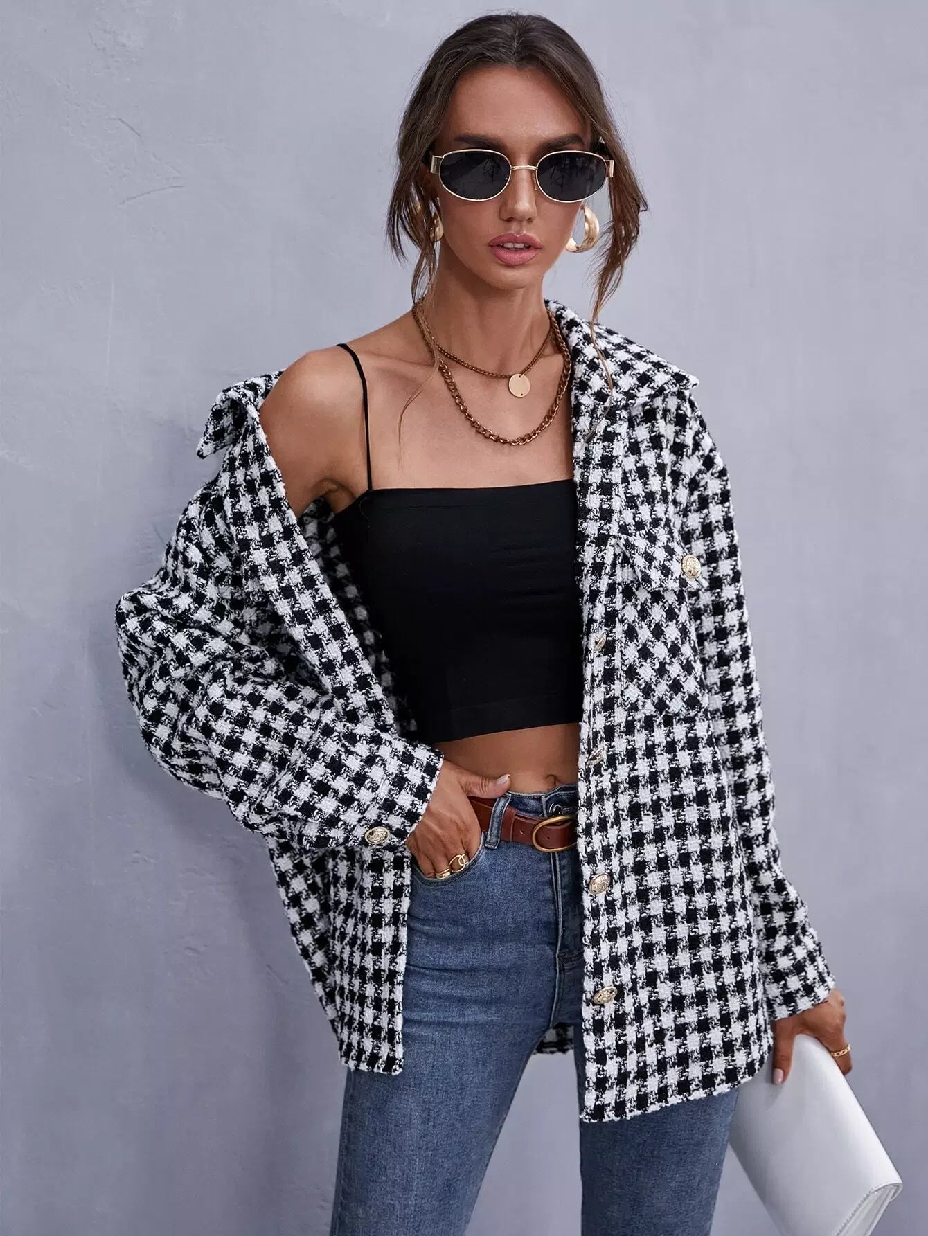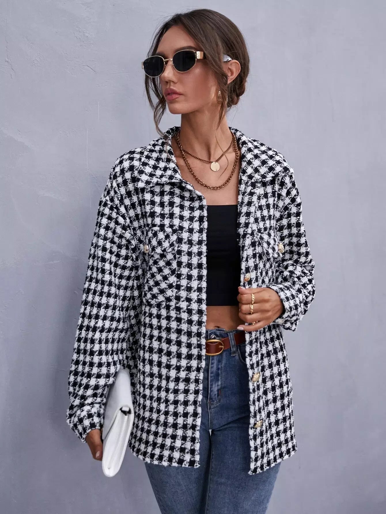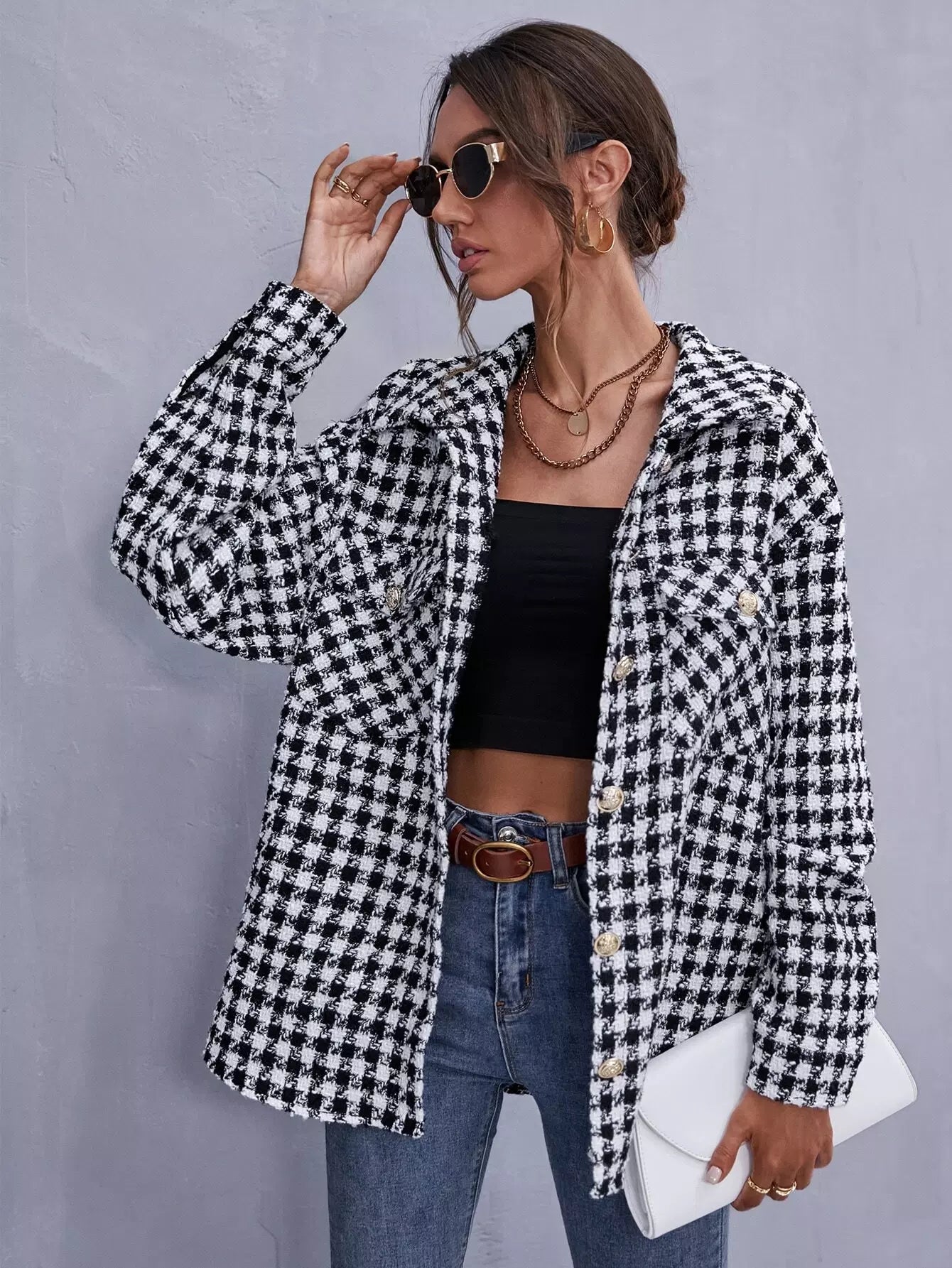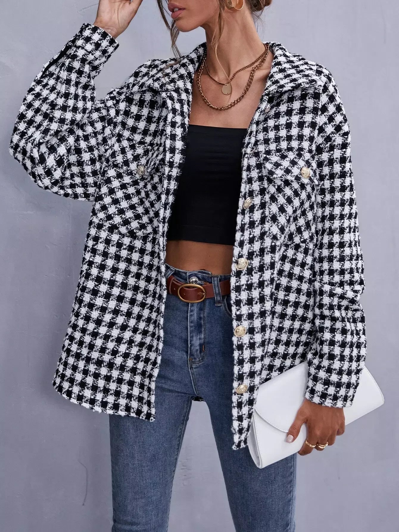 Houndstooth Flap Pocket Drop Shoulder Coat