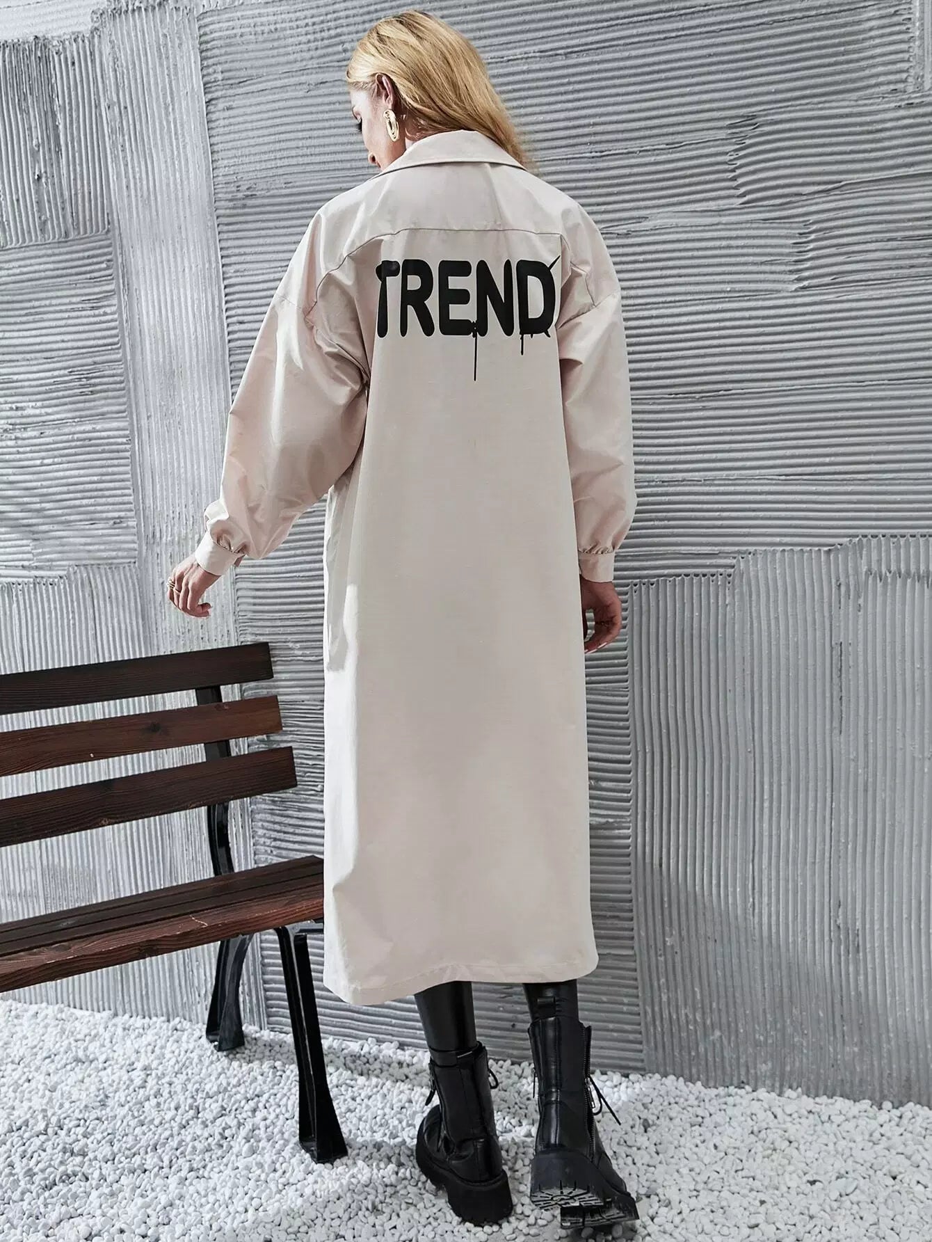 Letter Graphic Drop Shoulder Dual Pocket Coat