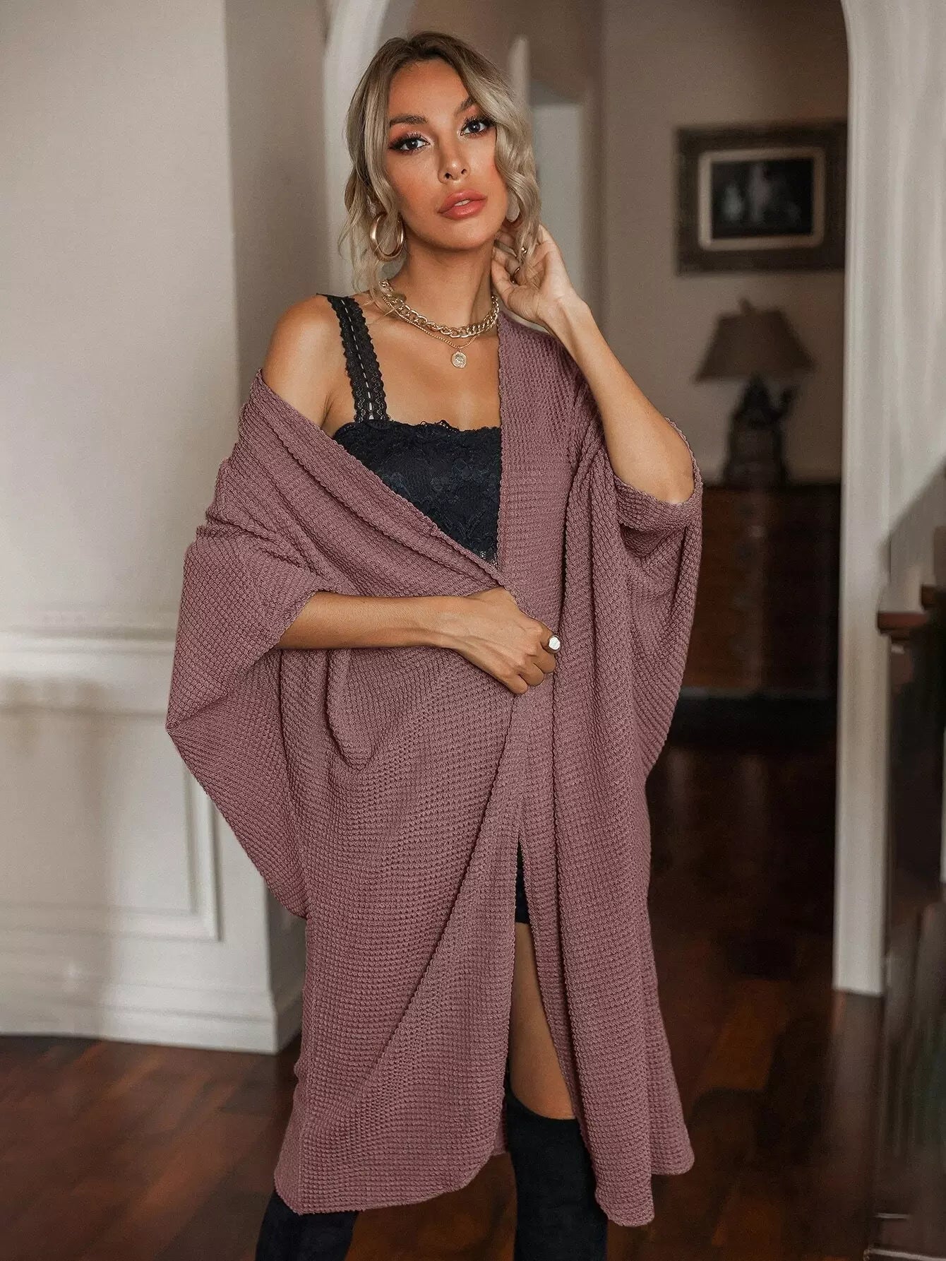Open Front Batwing Sleeve Coat